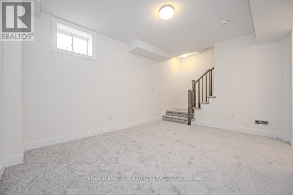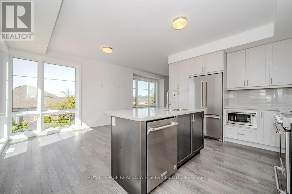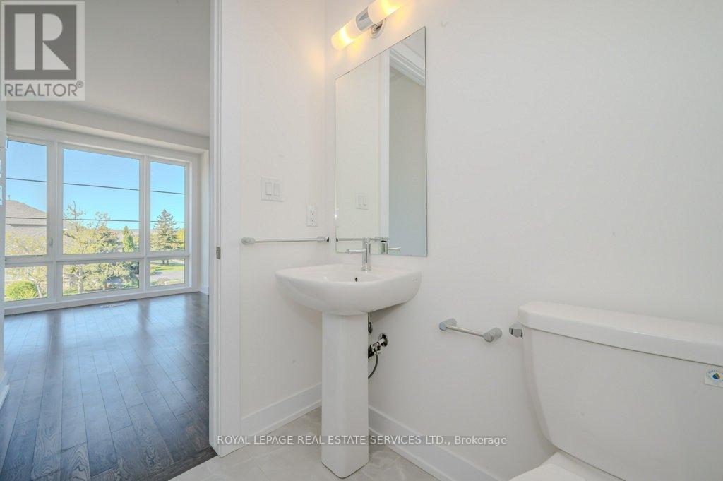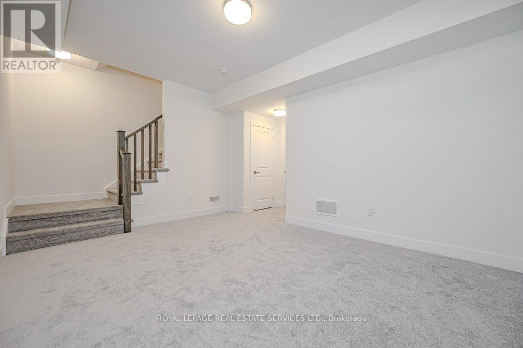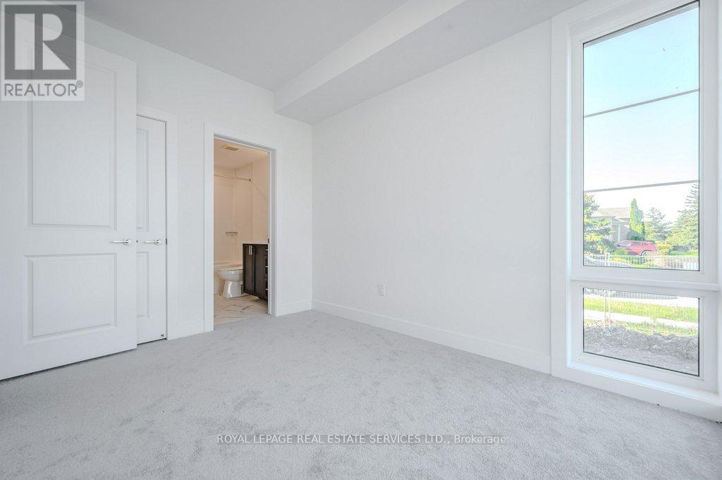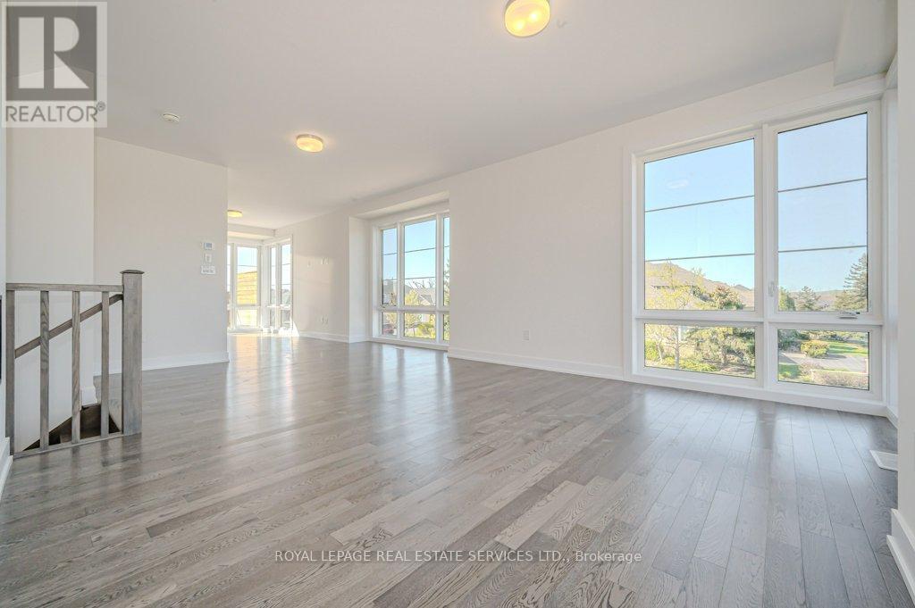 PRESENTING 2273 TURNBERRY ROAD, #1 - AN EXECUTIVE END-UNIT TOWNHOME IN MILLCROFT! Nestled in an exclusive enclave, this luxury residence delivers refined living in one of Burlington's most prestigious communities - renowned for its top-ranked schools, Millcroft Golf and Country Club, vibrant shopping and dining, and convenient highway access. Crafted by Branthaven Homes, the sought-after Knightsbridge model offers over 2,300 square feet of upscale living space (including 270 square feet in the finished basement) and more than $60,000 in premium upgrades. Extended-height windows bathe the interior in natural light, enhancing its bright and airy ambiance. The main level hosts a private guest bedroom with a four-piece ensuite, ideal for extended family or overnight visitors. The open concept second level, with 9' ceilings, was designed for entertaining, featuring an expansive living and dining area alongside a chef-inspired kitchen with quartz countertops, premium stainless steel appliances, a large island, and French doors opening onto the terrace. Perfect for outdoor living, the partially covered terrace offers a gas barbecue hook-up and plenty of room for dining and relaxation. On the third level, retreat to the oversized primary bedroom with a three-piece ensuite, complemented by two additional bedrooms, a four-piece main bathroom, and a conveniently located laundry room. Additional highlights include prefinished oak engineered hardwood flooring, custom high-quality Hunter Douglas window blinds, 8' interior doors, a spacious recreation room and abundant storage in the basement, and inside access to the oversized two-car garage. Situated on the premier lot of the subdivision, this townhome boasts desirable south-west exposure and panoramic views of the Niagara Escarpment. A rare opportunity to enjoy the perfect balance of luxury, comfort, and lifestyle in Millcroft! (some images contain virtual staging) (id:24334)