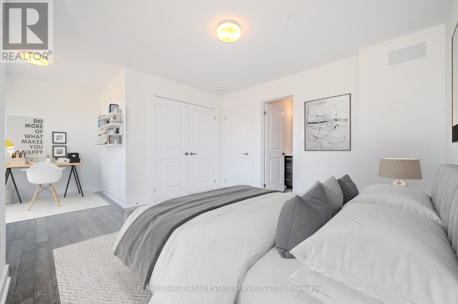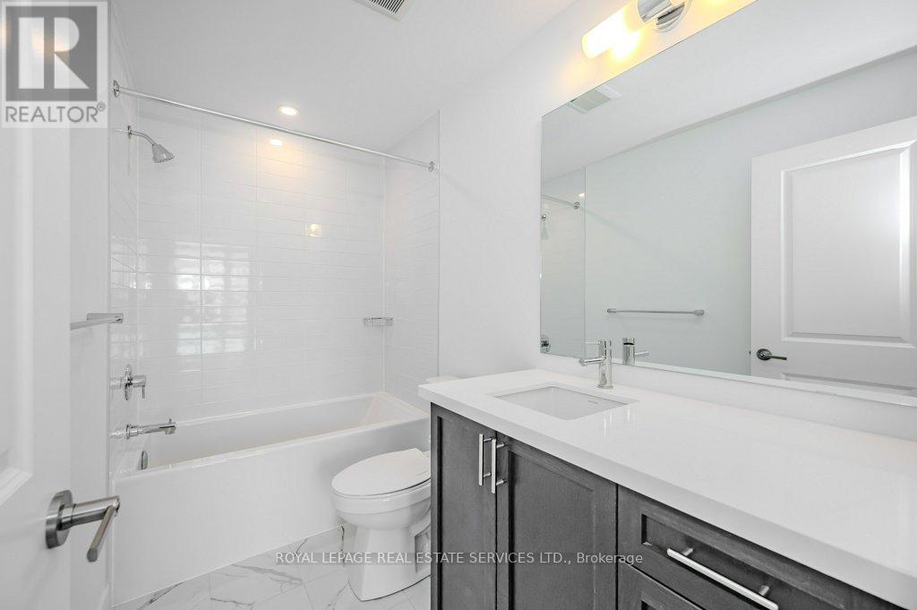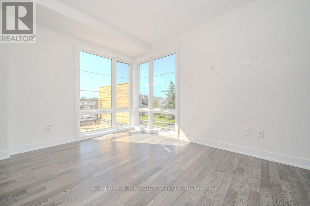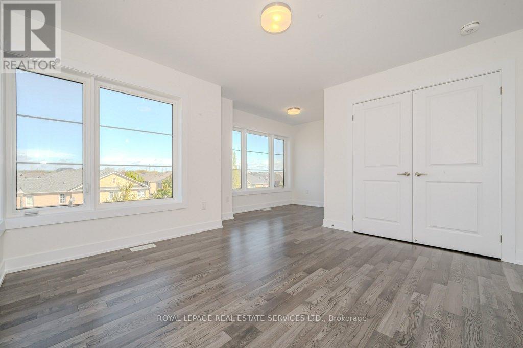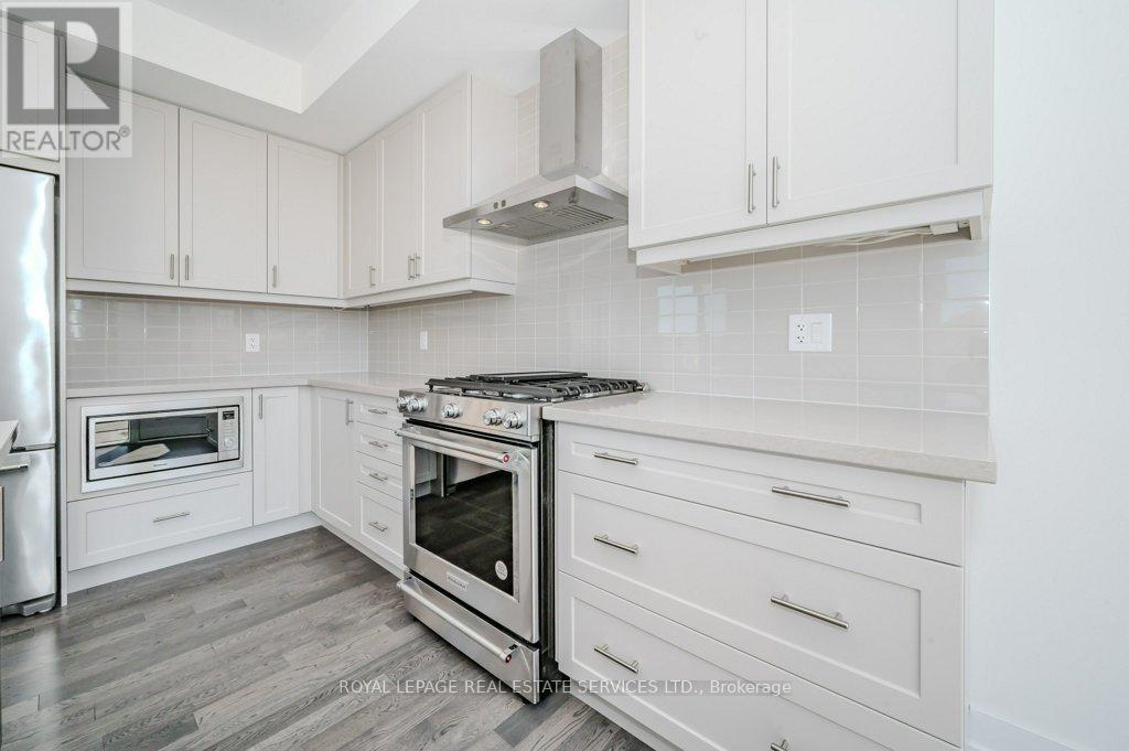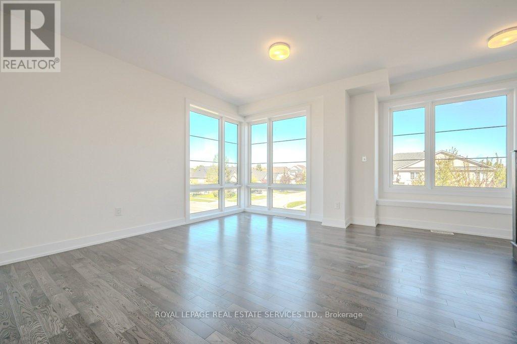 PRESENTING 2273 TURNBERRY ROAD, #1 - AN EXECUTIVE END-UNIT TOWNHOME IN MILLCROFT! Nestled in an exclusive enclave, this luxury residence delivers refined living in one of Burlington's most prestigious communities - renowned for its top-ranked schools, Millcroft Golf and Country Club, vibrant shopping and dining, and convenient highway access. Crafted by Branthaven Homes, the sought-after Knightsbridge model offers over 2,300 square feet of upscale living space (including 270 square feet in the finished basement) and more than $60,000 in premium upgrades. Extended-height windows bathe the interior in natural light, enhancing its bright and airy ambiance. The main level hosts a private guest bedroom with a four-piece ensuite, ideal for extended family or overnight visitors. The open concept second level, with 9' ceilings, was designed for entertaining, featuring an expansive living and dining area alongside a chef-inspired kitchen with quartz countertops, premium stainless steel appliances, a large island, and French doors opening onto the terrace. Perfect for outdoor living, the partially covered terrace offers a gas barbecue hook-up and plenty of room for dining and relaxation. On the third level, retreat to the oversized primary bedroom with a three-piece ensuite, complemented by two additional bedrooms, a four-piece main bathroom, and a conveniently located laundry room. Additional highlights include prefinished oak engineered hardwood flooring, custom high-quality Hunter Douglas window blinds, 8' interior doors, a spacious recreation room and abundant storage in the basement, and inside access to the oversized two-car garage. Situated on the premier lot of the subdivision, this townhome boasts desirable south-west exposure and panoramic views of the Niagara Escarpment. A rare opportunity to enjoy the perfect balance of luxury, comfort, and lifestyle in Millcroft! (some images contain virtual staging) (id:24334)