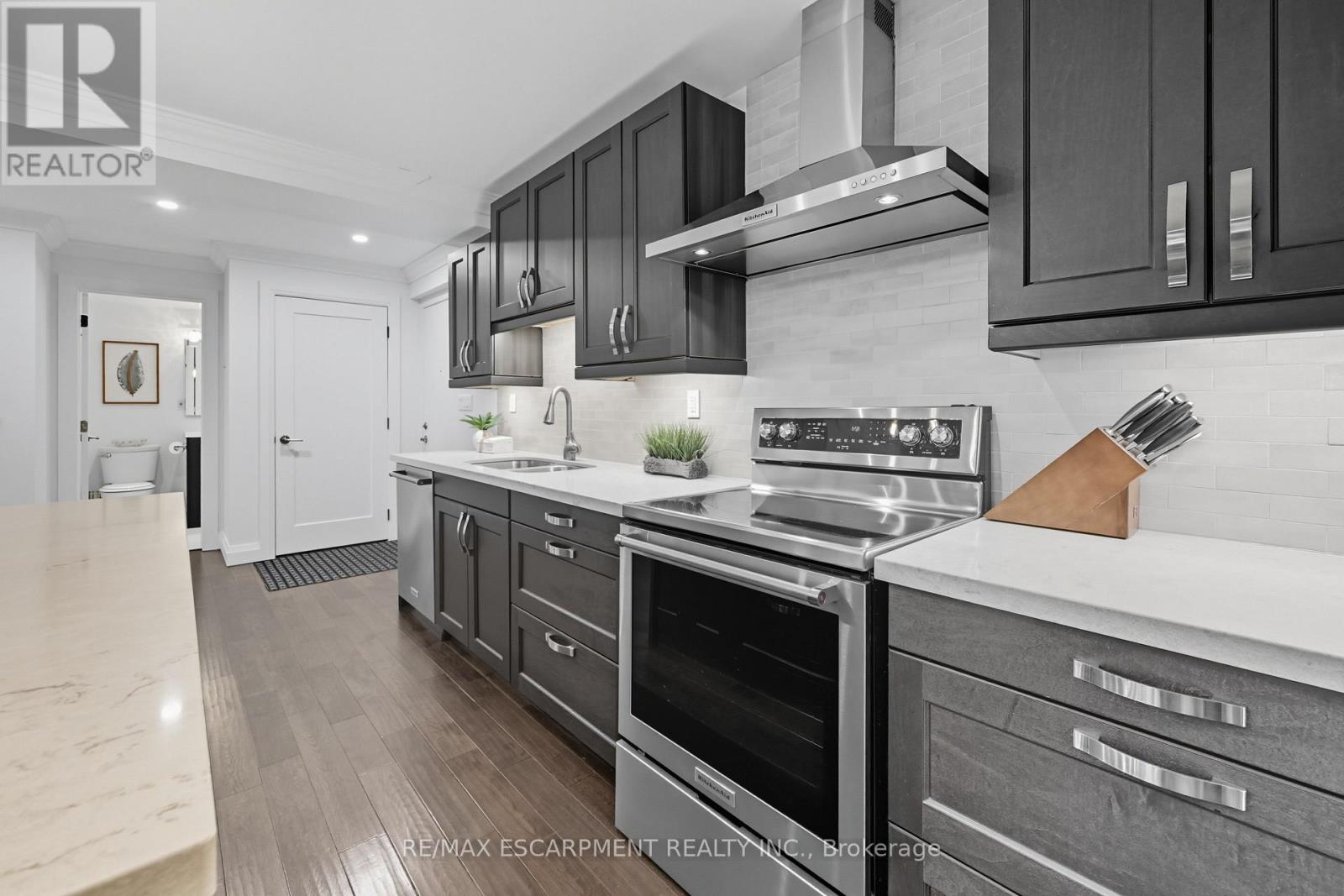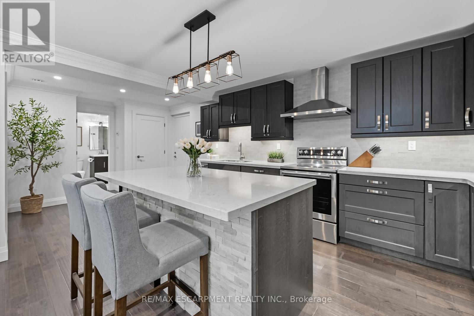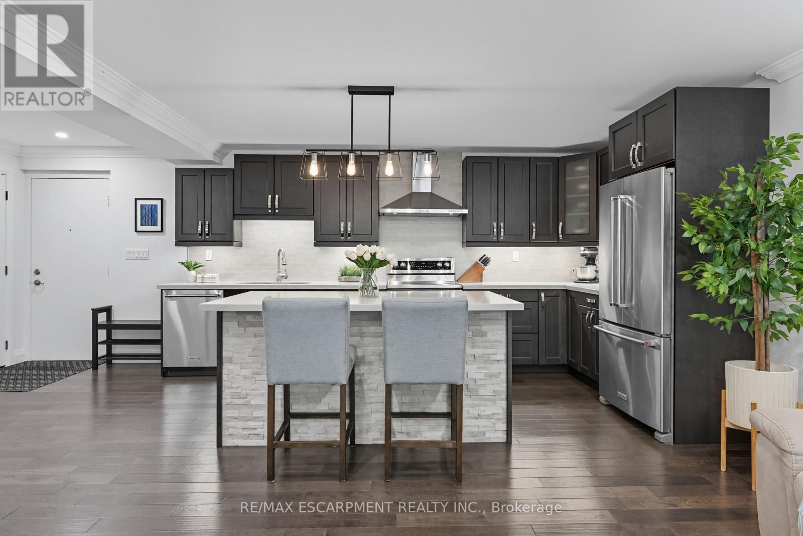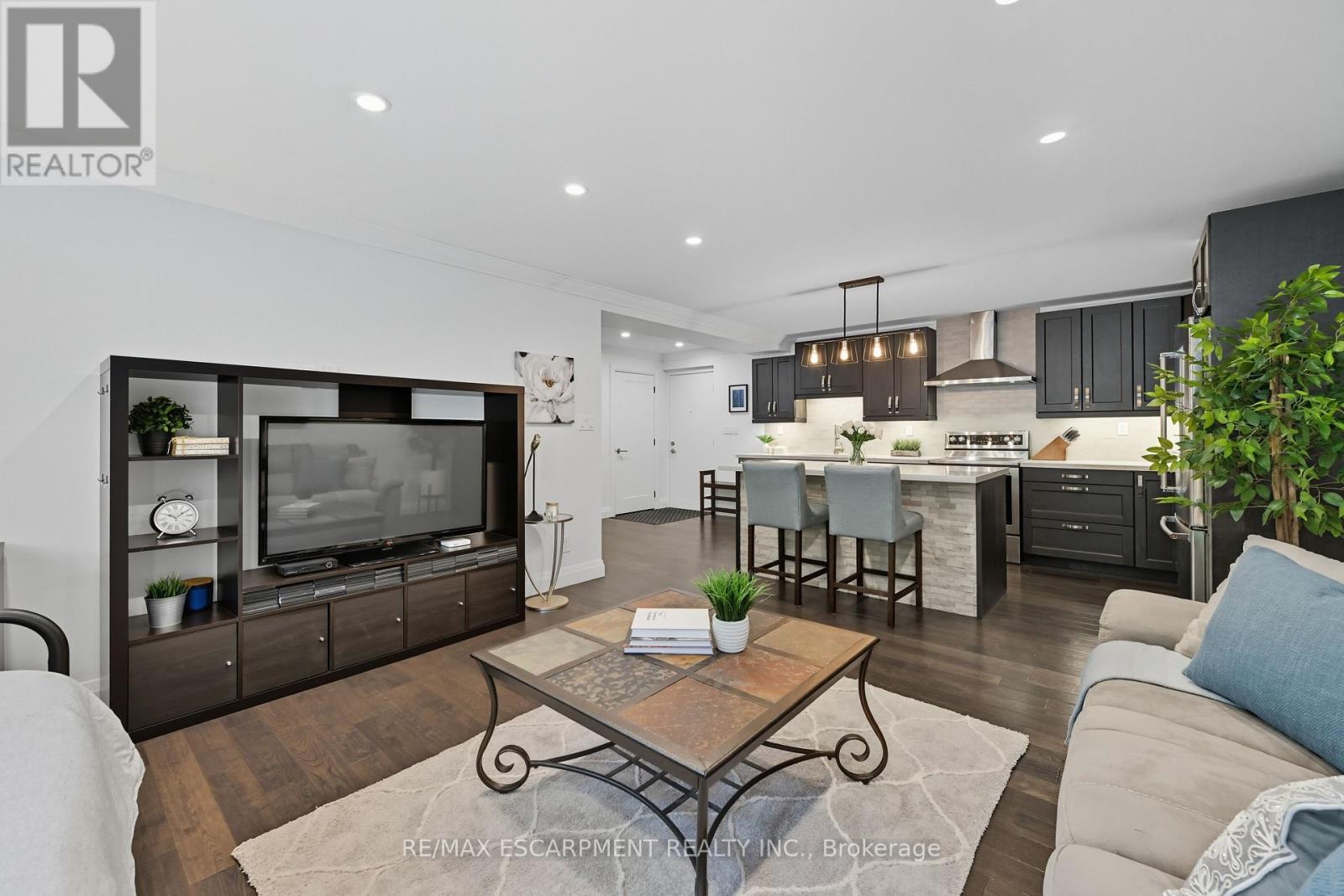 $607.14 MonthlyPerfectly situated across from the beautiful south shore of Lake Ontario and Spencer Smith Park. Lakeside Heights Co-operative offers an unbeatable location. From this wonderful building, you're just a short stroll to downtown Burlington's fabulous restaurants, cozy coffee shops, unique boutiques, the Art Gallery, and the Burlington Performing Arts Centre. Inside, you'll find a fully and tastefully updated open-concept design. The custom kitchen boasts Shaker-style cabinetry with under-cabinet lighting, quartz countertops, a spacious island, and stainless-steel appliances. Stylish flooring (no carpet), stone feature walls, and modern finishes add to the contemporary feel. The generous bedroom includes a double closet with organizer, while the 3-piece bath impresses with heated tile flooring and a glass-enclosed oversized shower. Enjoy the ease of a maintenance-fee lifestyle in this quiet, well-cared-for adult-only building where fees cover property taxes, heat, water, building insurance, exterior maintenance, and parking. One parking space and storage locker included. No smoking, no pets, no rentals - ensuring a peaceful environment. A rare opportunity to secure an updated suite in a great quiet building in one of Burlington's most desirable locations! (id:24334)