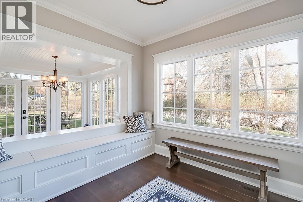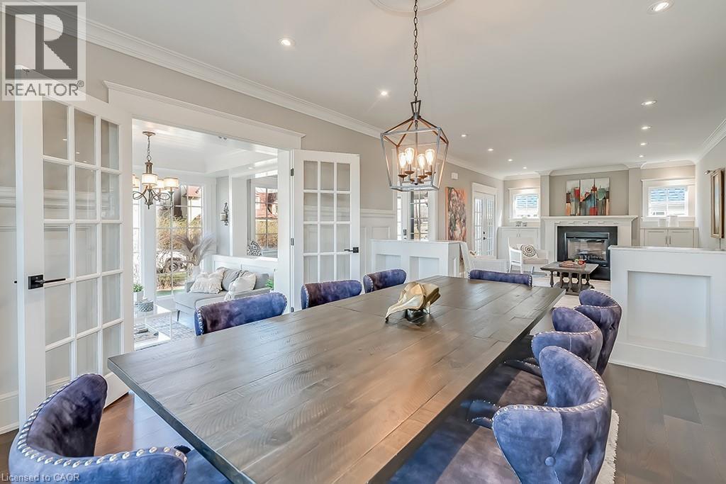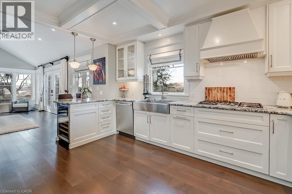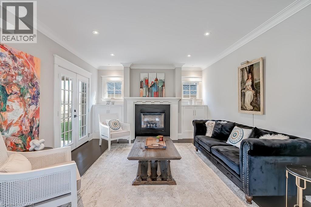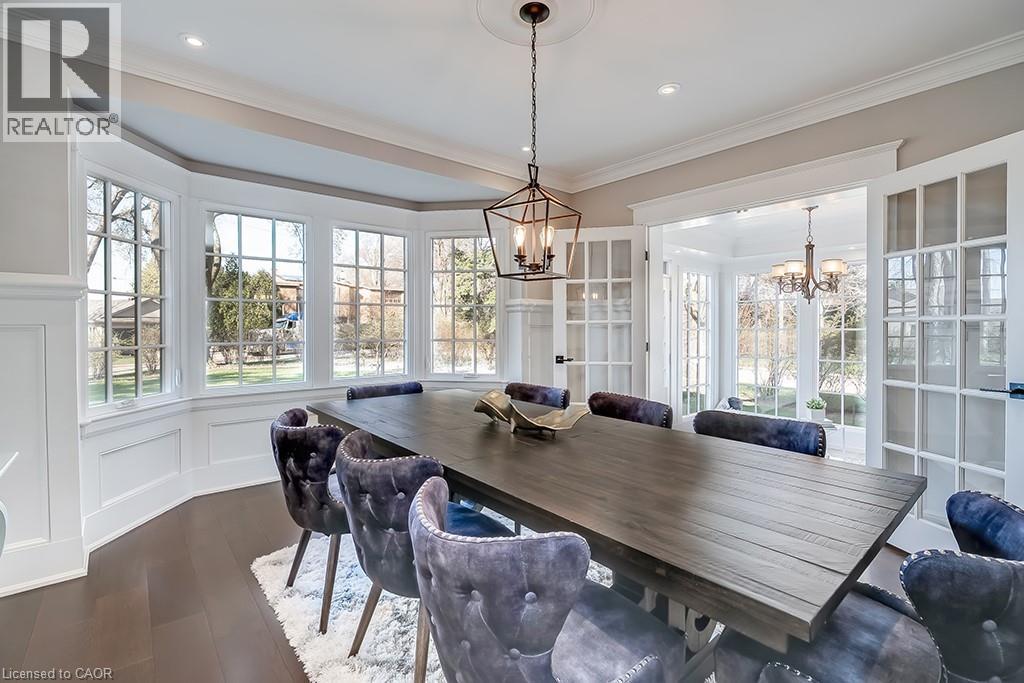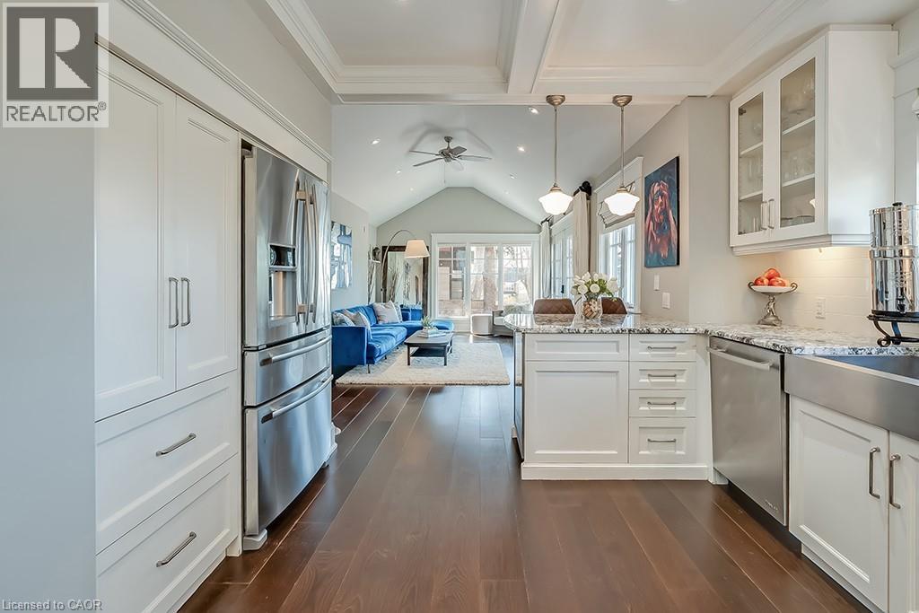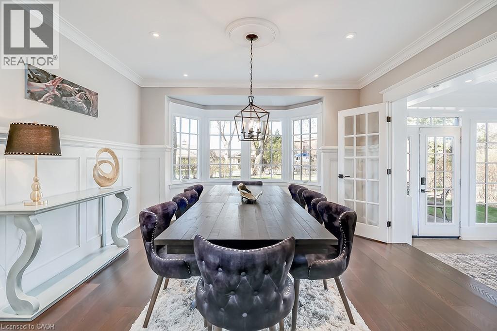 Beautifully upgraded character home in Aldershot's exclusive Indian Point! Just steps to downtown, the bay/lake, restaurants, shops, parks, highway access and the Burlington Golf & Country Club! Stunning custom kitchen with granite, coffered ceiling, stainless steel appliances, gas cooktop and a subway tile backsplash. Spacious family room with vaulted ceiling and a walkout to a large patio overlooking a tranquil outdoor setting. Living room with gas fireplace and large separate dining room with bay window and wainscoting opens to a charming sunroom with tray ceiling and walkout. The upper level features three bedrooms including two with stunning views of Burlington Bay and a primary bedroom with spa-inspired 5-piece ensuite and a separate dressing room! Hardwood floors, crown moulding, pot lighting and loads of natural light throughout! Main level laundry/mudroom with inside entry from a double garage with EV charger and two driveways with combined parking for at least 8 cars. 3+1 bedrooms and 2.5 bathrooms. (id:24334)