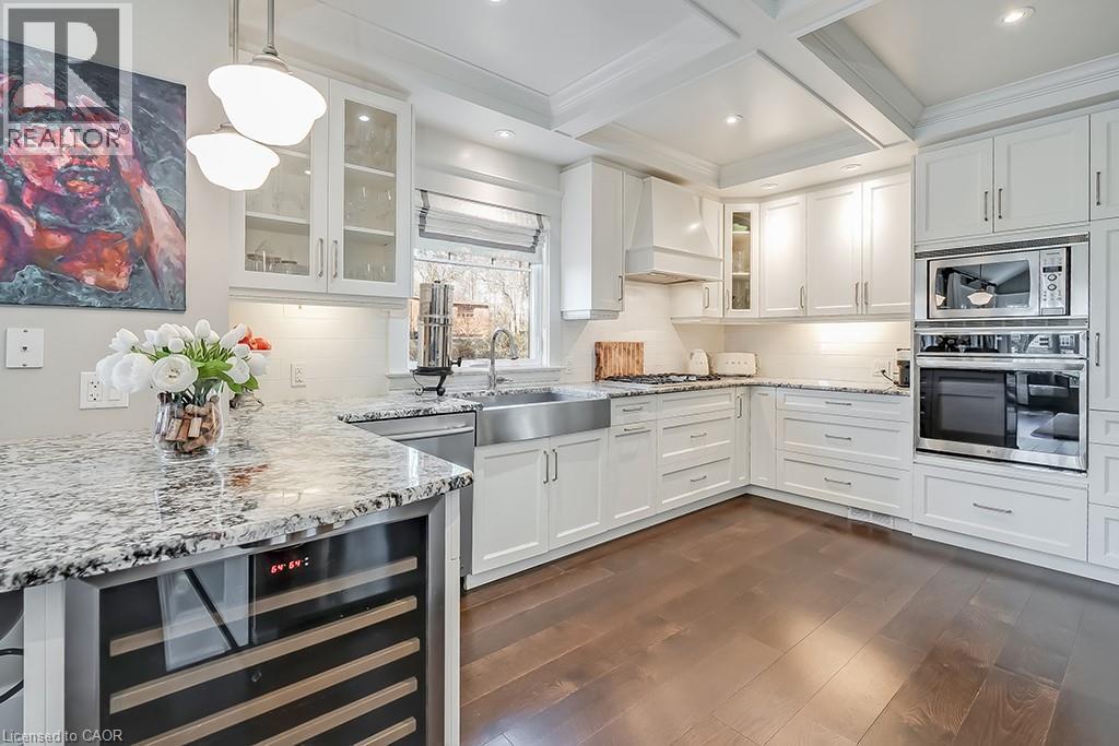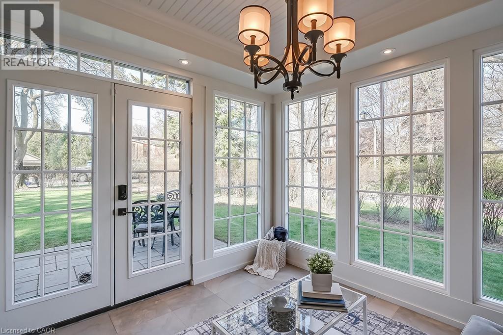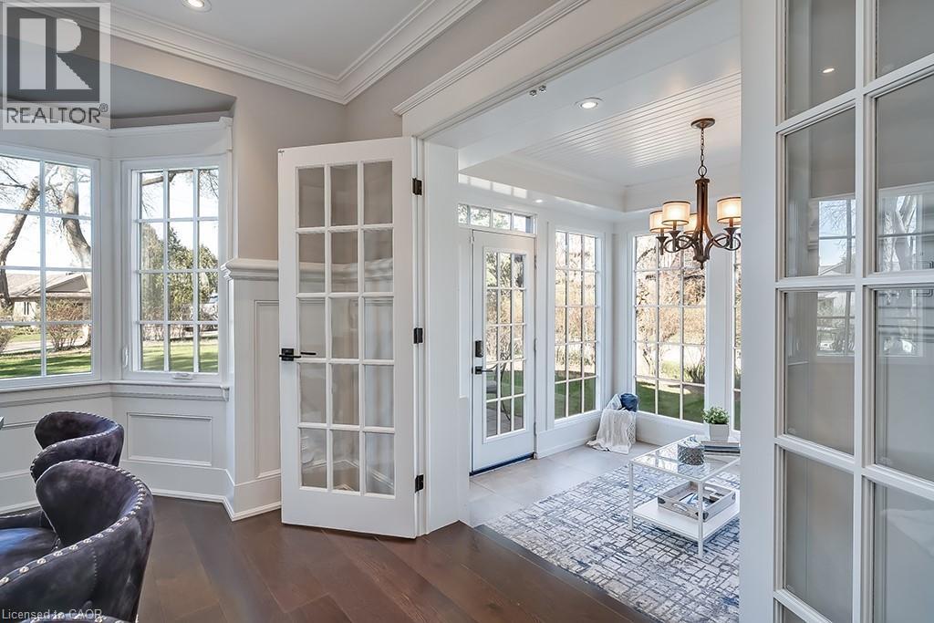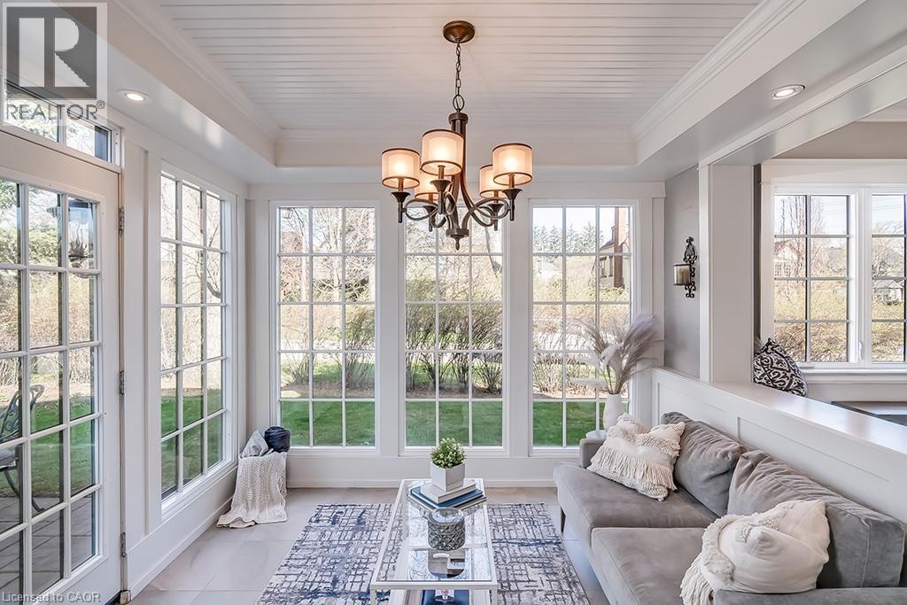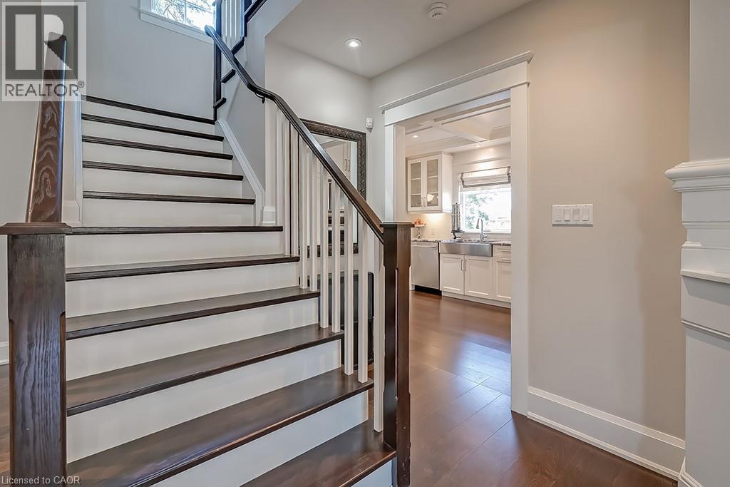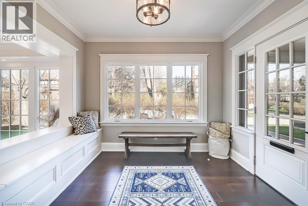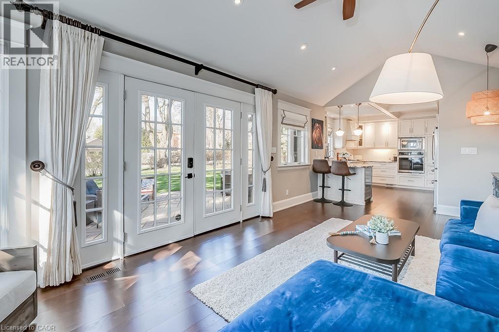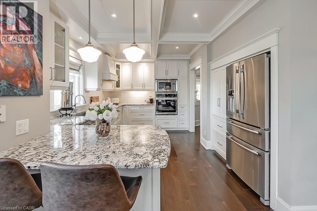 Beautifully upgraded character home in Aldershot's exclusive Indian Point! Just steps to downtown, the bay/lake, restaurants, shops, parks, highway access and the Burlington Golf & Country Club! Stunning custom kitchen with granite, coffered ceiling, stainless steel appliances, gas cooktop and a subway tile backsplash. Spacious family room with vaulted ceiling and a walkout to a large patio overlooking a tranquil outdoor setting. Living room with gas fireplace and large separate dining room with bay window and wainscoting opens to a charming sunroom with tray ceiling and walkout. The upper level features three bedrooms including two with stunning views of Burlington Bay and a primary bedroom with spa-inspired 5-piece ensuite and a separate dressing room! Hardwood floors, crown moulding, pot lighting and loads of natural light throughout! Main level laundry/mudroom with inside entry from a double garage with EV charger and two driveways with combined parking for at least 8 cars. 3+1 bedrooms and 2.5 bathrooms. (id:24334)