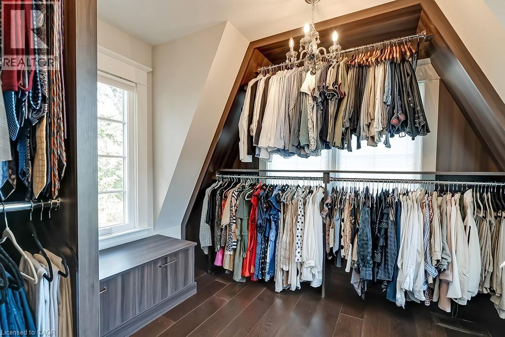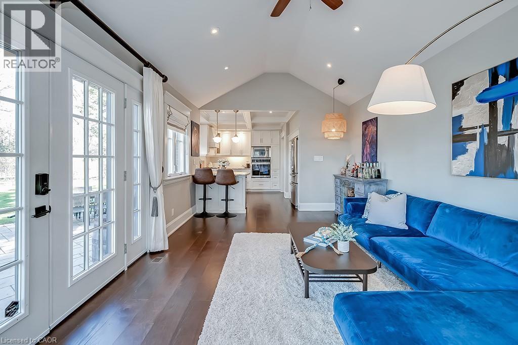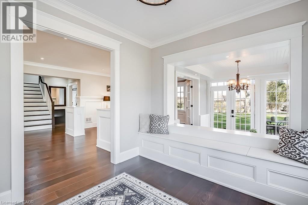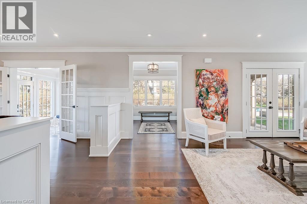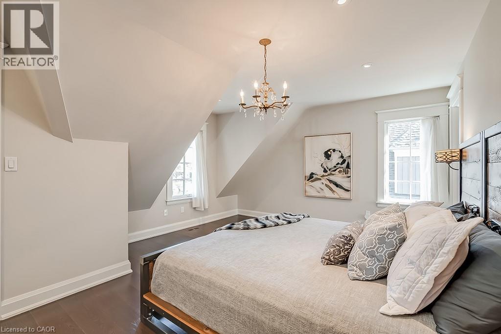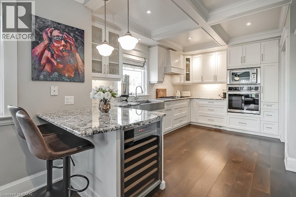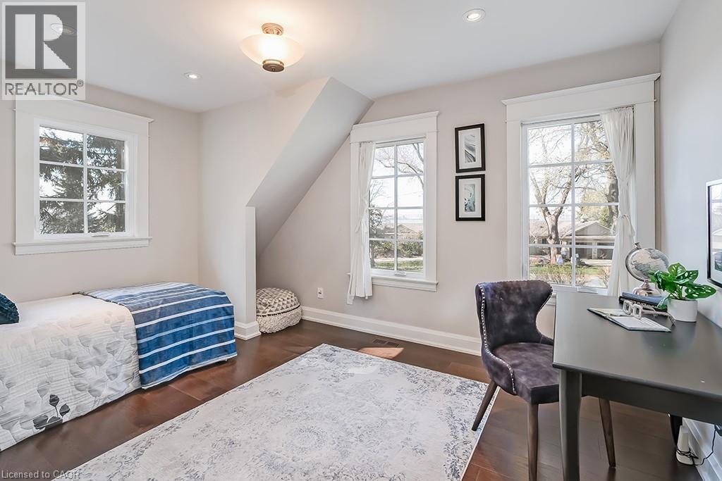 Beautifully upgraded character home in Aldershot's exclusive Indian Point! Just steps to downtown, the bay/lake, restaurants, shops, parks, highway access and the Burlington Golf & Country Club! Stunning custom kitchen with granite, coffered ceiling, stainless steel appliances, gas cooktop and a subway tile backsplash. Spacious family room with vaulted ceiling and a walkout to a large patio overlooking a tranquil outdoor setting. Living room with gas fireplace and large separate dining room with bay window and wainscoting opens to a charming sunroom with tray ceiling and walkout. The upper level features three bedrooms including two with stunning views of Burlington Bay and a primary bedroom with spa-inspired 5-piece ensuite and a separate dressing room! Hardwood floors, crown moulding, pot lighting and loads of natural light throughout! Main level laundry/mudroom with inside entry from a double garage with EV charger and two driveways with combined parking for at least 8 cars. 3+1 bedrooms and 2.5 bathrooms. (id:24334)