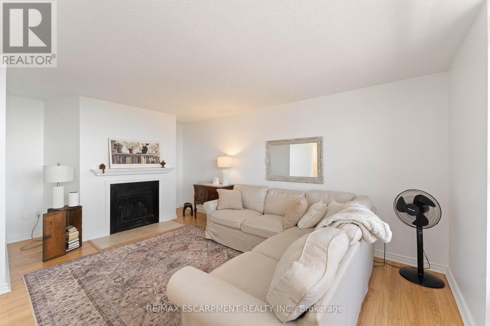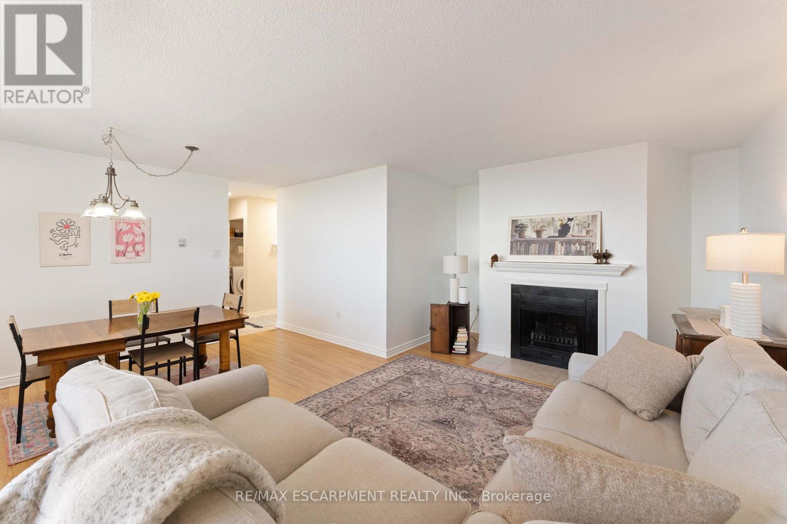 Freshly painted 2-bedroom, 2-bath condo with a stunning view of Lake Ontario from your private balcony. This sun-filled suite offers a rare and cozy wood-burning fireplace, creating a warm and inviting atmosphere in the living space. The layout is spacious and functional, with large principal rooms, generous storage, and neutral finishes throughout. Enjoy the benefits of living in a well-managed building with excellent amenities, including 24-hour concierge, exercise room, outdoor pool, party and meeting room, visitor parking, and a convenient car wash bay. Located in one of Burlington's most desirable areas, just across from Burlington Centre. Walk to restaurants, shops, grocery stores, and transit. Quick access to the QEW and the GO Station makes this location ideal for commuters. Whether you are a first-time buyer, downsizer, or investor, this unit offers great value, a beautiful view, and a lifestyle that is hard to beat. (id:24334)