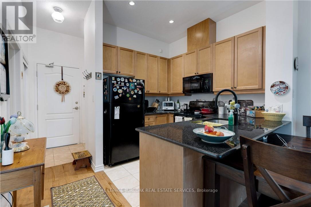 $398.73 MonthlyWelcome to Times Square Condos! This bright and inviting 1 bedroom + Den main floor condo has so much to offer, including peaceful ravine views right outside your window. Inside, you'll find 9.5' ceilings, hardwood floors, pot lights, and a granite countertop kitchen that's perfect for everyday living. The generous den makes a great home office, study space, or even a small guest room, and the extra-wide bathroom adds comfort and convenience. You'll also enjoy 1 parking spot located close to the elevator and a locker for extra storage. The building is well cared for, with low fees and great management. Located close to Bronte Creek Provincial Park, schools, shopping, dining, and quick highway access, it's the perfect spot for both nature lovers and commuters. A wonderful opportunity to own in a great community. (id:24334)