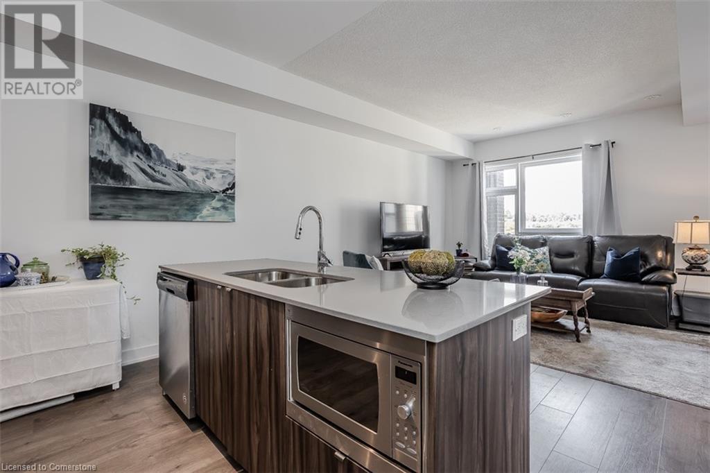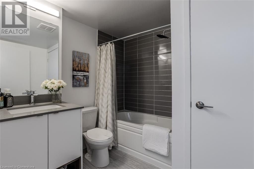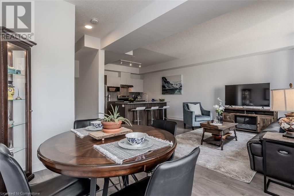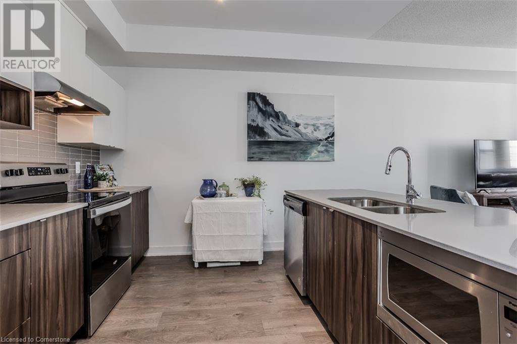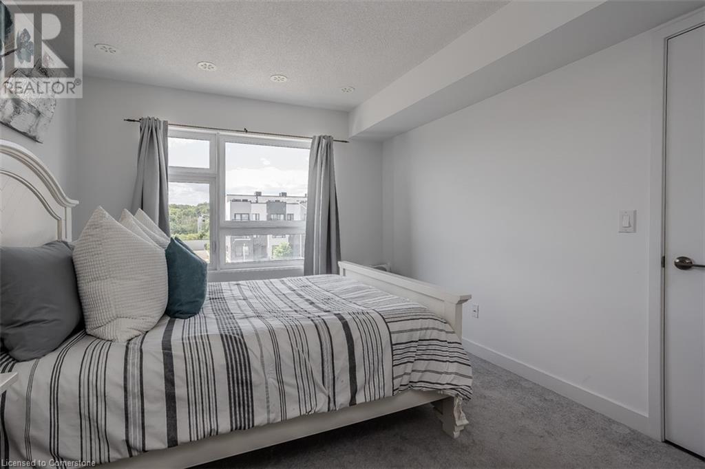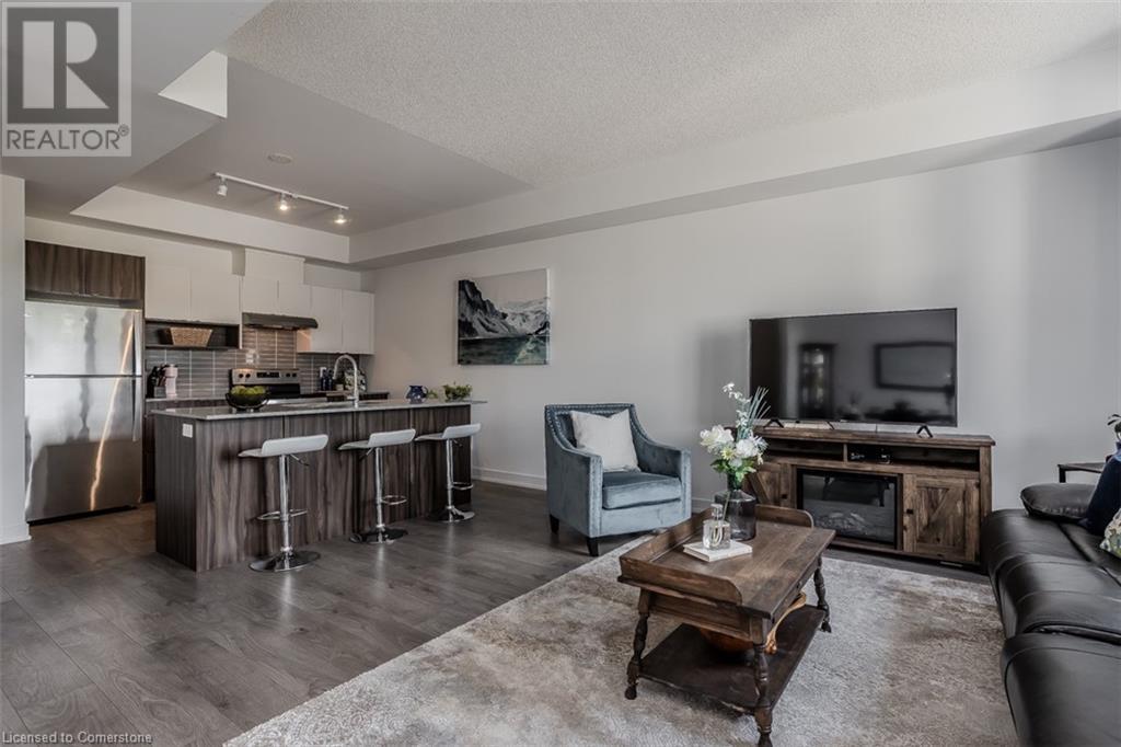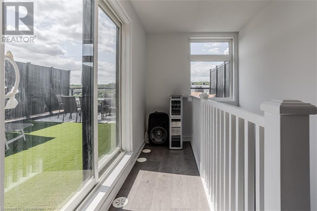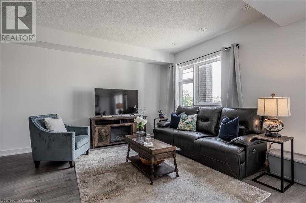 Welcome to this beautifully designed modern 3-storey townhome, perfectly located just minutes from the lake, downtown Burlington, parks, schools, and convenient transit options including the GO Station. Nestled in a quiet, family-friendly enclave, this pet-friendly home offers the ideal balance of comfort, style, and functionality—perfect for growing families, young professionals, or anyone looking to enjoy the best of Burlington living. One of the rare highlights of this unit is the 2-car private driveway—a unique feature that only two homes in the entire complex enjoy, providing unmatched parking convenience for your family and guests. Step into a bright and welcoming front entry with a convenient 2-piece powder room, perfect for guests. The second level showcases a seamless open-concept layout, ideal for both everyday living and entertaining. Wide plank laminate flooring flows throughout the spacious living and dining areas, where large windows and a walkout to your private balcony flood the space with natural light. At the heart of the home, the contemporary kitchen is sure to impress—featuring quartz countertops, stainless steel appliances, custom cabinetry, a stylish stacked tile backsplash, and a large island with breakfast bar, built-in microwave, and dishwasher. Upstairs, you’ll find a bright and airy primary retreat complete with a 3-piece ensuite boasting an oversized quartz vanity, porcelain tile floors, and a sleek stacked-tile walk-in shower with a glass door. An additional well-sized bedroom and a 4-piece main bath—with matching finishes and a tub/shower combo—offer the perfect layout for a growing family, guests, or a home office. Top it all off with a private rooftop terrace offering pond views and a glass railing—an ideal space to relax, dine, or entertain under the open sky. Whether you're looking for your first home or a stylish, low-maintenance space for your family, this thoughtfully designed townhome checks all the boxes. (id:24334)