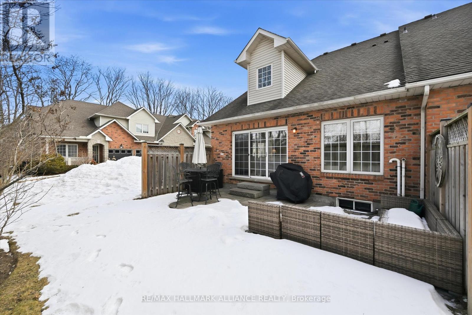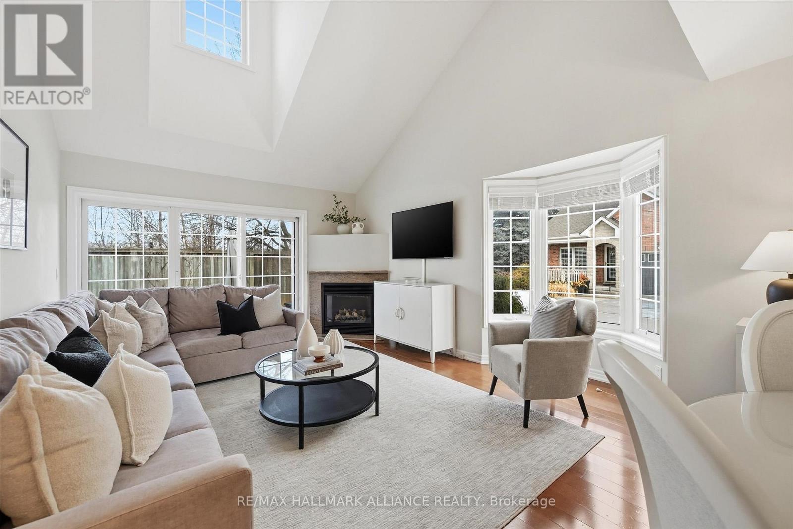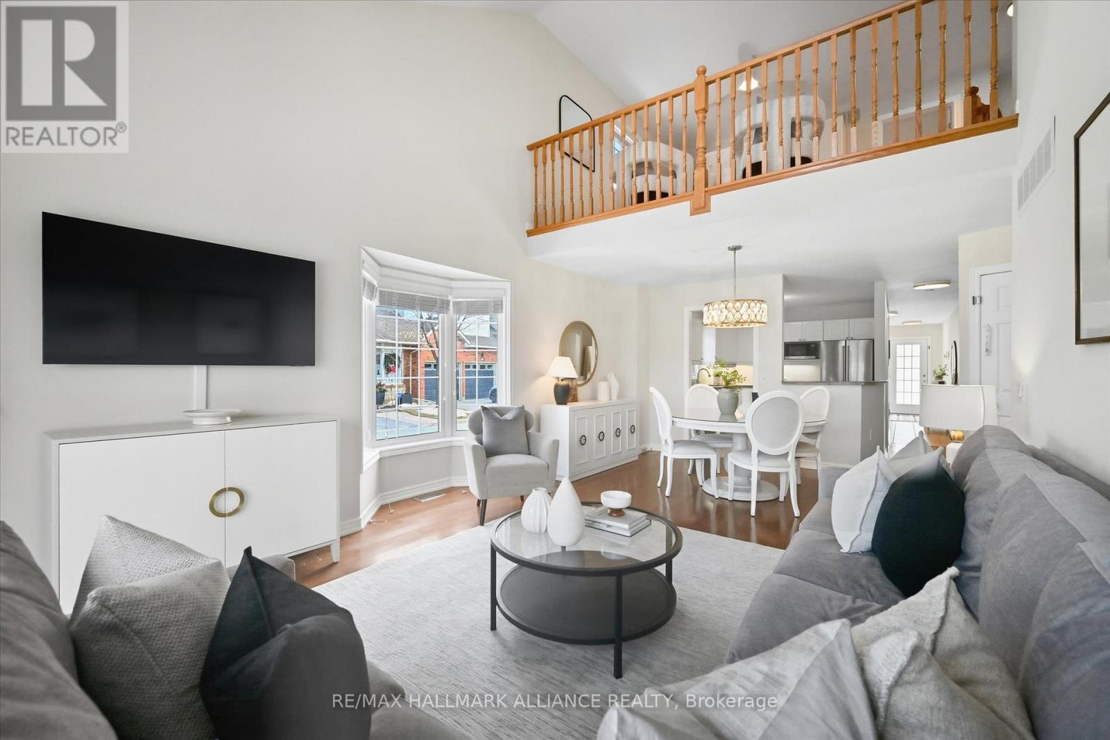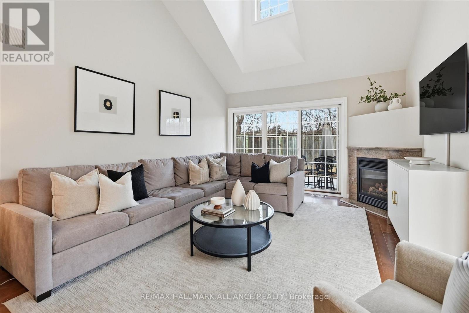 Welcome Home! This rarely offered end-unit executive bungalow condo townhome is tucked away in a quiet, sought-after South Burlington community and is truly move-in ready.Offering 3 bedrooms and 3 bathrooms, this spacious home features a fantastic, functional layout with over 1,600 sq ft above grade, plus an additional 850 sq ft of unspoiled lower level awaiting your personal touch. The main floor showcases a generously sized primary bedroom with walk-in closet and 4-piece ensuite, a separate dining area, and a bright, open living room with cathedral ceilings, skylights, hardwood floors, and a cozy gas fireplace. The kitchen is well appointed with granite countertops and ample amounts of storage.The upper loft level offers a private secondary living space, complete with a bedroom featuring a large walk-in closet, a 4-piece bath, and a versatile office/den overlooking the living room and fireplace-ideal for guests or working from home.Step outside to a private, tranquil backyard with beautifully landscaped gardens and an irrigation system, perfect for relaxing or entertaining. The impeccably managed complex includes ample visitor parking and a charming central park-like courtyard with gazebo, adding to the peaceful setting.Enjoy the ideal location-walk to Lake Ontario, downtown Burlington, Spencer Smith Park, and nearby trails, with elementary and secondary schools close by. Minutes to Mapleview Shopping Centre, public transit, and a short drive to Highway 403. Meticulously maintained with evident pride of ownership, this is a rare opportunity to live in one of Burlington's most desirable and quiet communities. (id:24334)