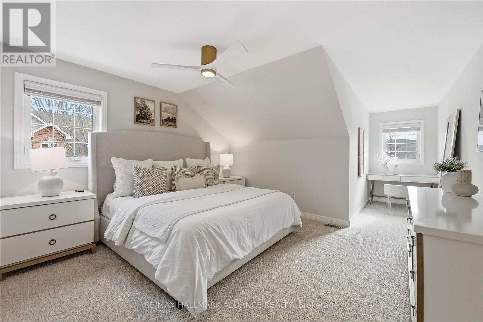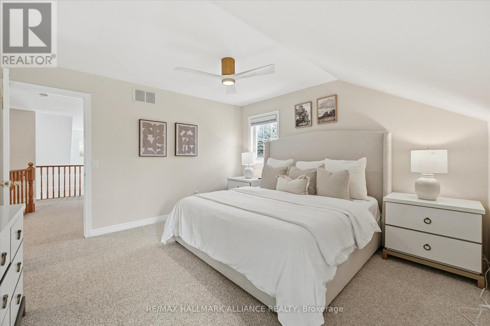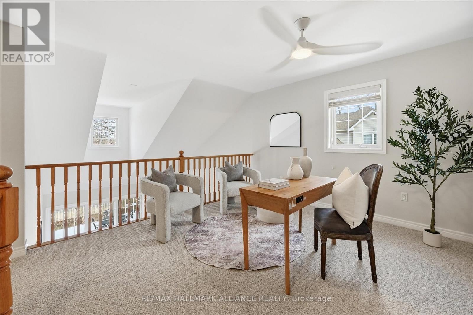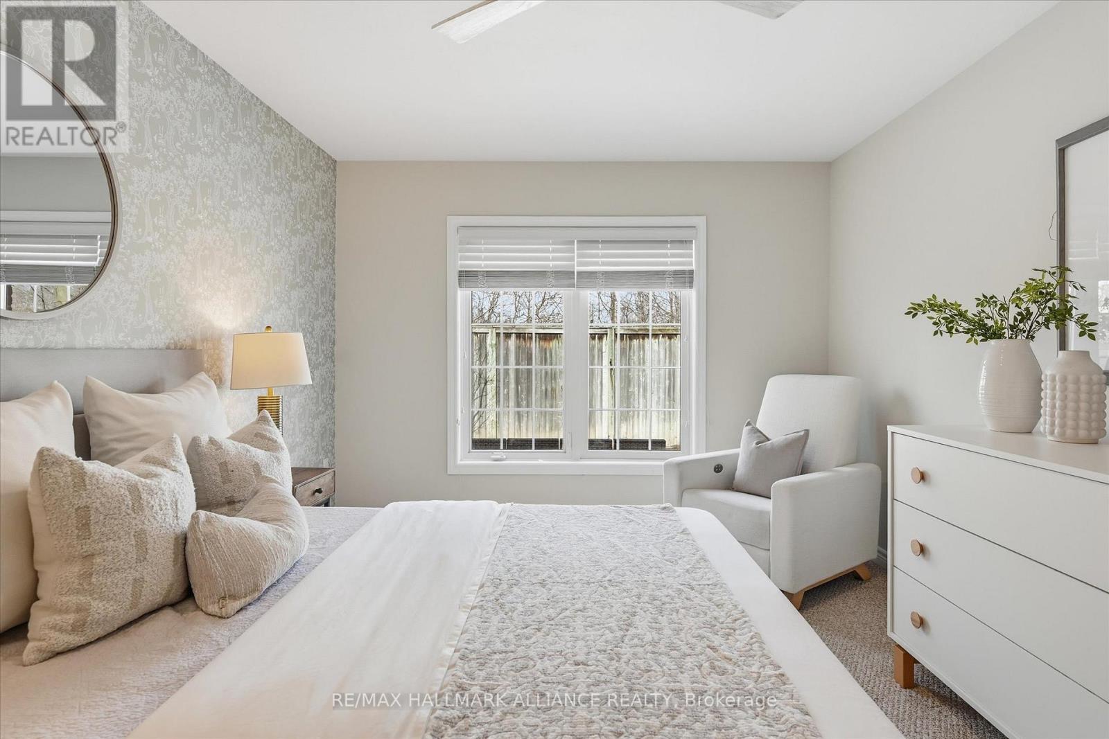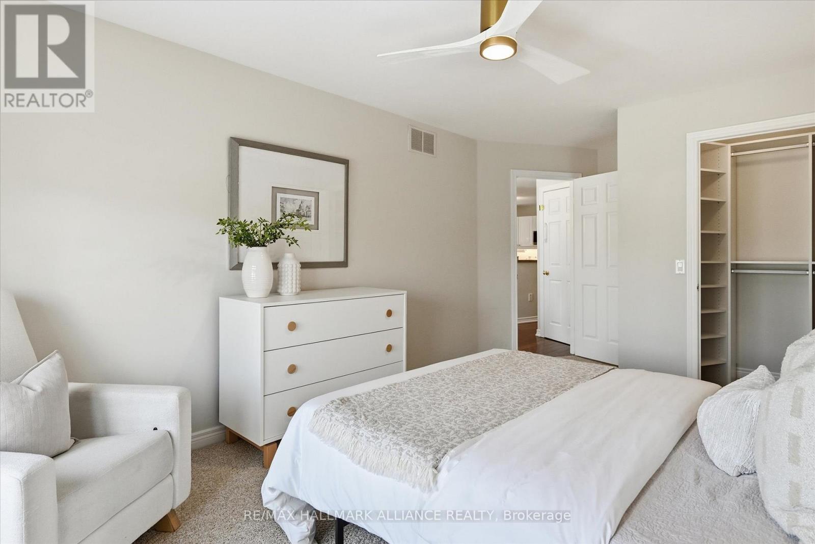 Welcome Home! This rarely offered end-unit executive bungalow condo townhome is tucked away in a quiet, sought-after South Burlington community and is truly move-in ready.Offering 3 bedrooms and 3 bathrooms, this spacious home features a fantastic, functional layout with over 1,600 sq ft above grade, plus an additional 850 sq ft of unspoiled lower level awaiting your personal touch. The main floor showcases a generously sized primary bedroom with walk-in closet and 4-piece ensuite, a separate dining area, and a bright, open living room with cathedral ceilings, skylights, hardwood floors, and a cozy gas fireplace. The kitchen is well appointed with granite countertops and ample amounts of storage.The upper loft level offers a private secondary living space, complete with a bedroom featuring a large walk-in closet, a 4-piece bath, and a versatile office/den overlooking the living room and fireplace-ideal for guests or working from home.Step outside to a private, tranquil backyard with beautifully landscaped gardens and an irrigation system, perfect for relaxing or entertaining. The impeccably managed complex includes ample visitor parking and a charming central park-like courtyard with gazebo, adding to the peaceful setting.Enjoy the ideal location-walk to Lake Ontario, downtown Burlington, Spencer Smith Park, and nearby trails, with elementary and secondary schools close by. Minutes to Mapleview Shopping Centre, public transit, and a short drive to Highway 403. Meticulously maintained with evident pride of ownership, this is a rare opportunity to live in one of Burlington's most desirable and quiet communities. (id:24334)
