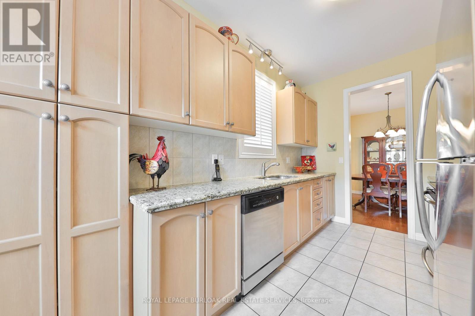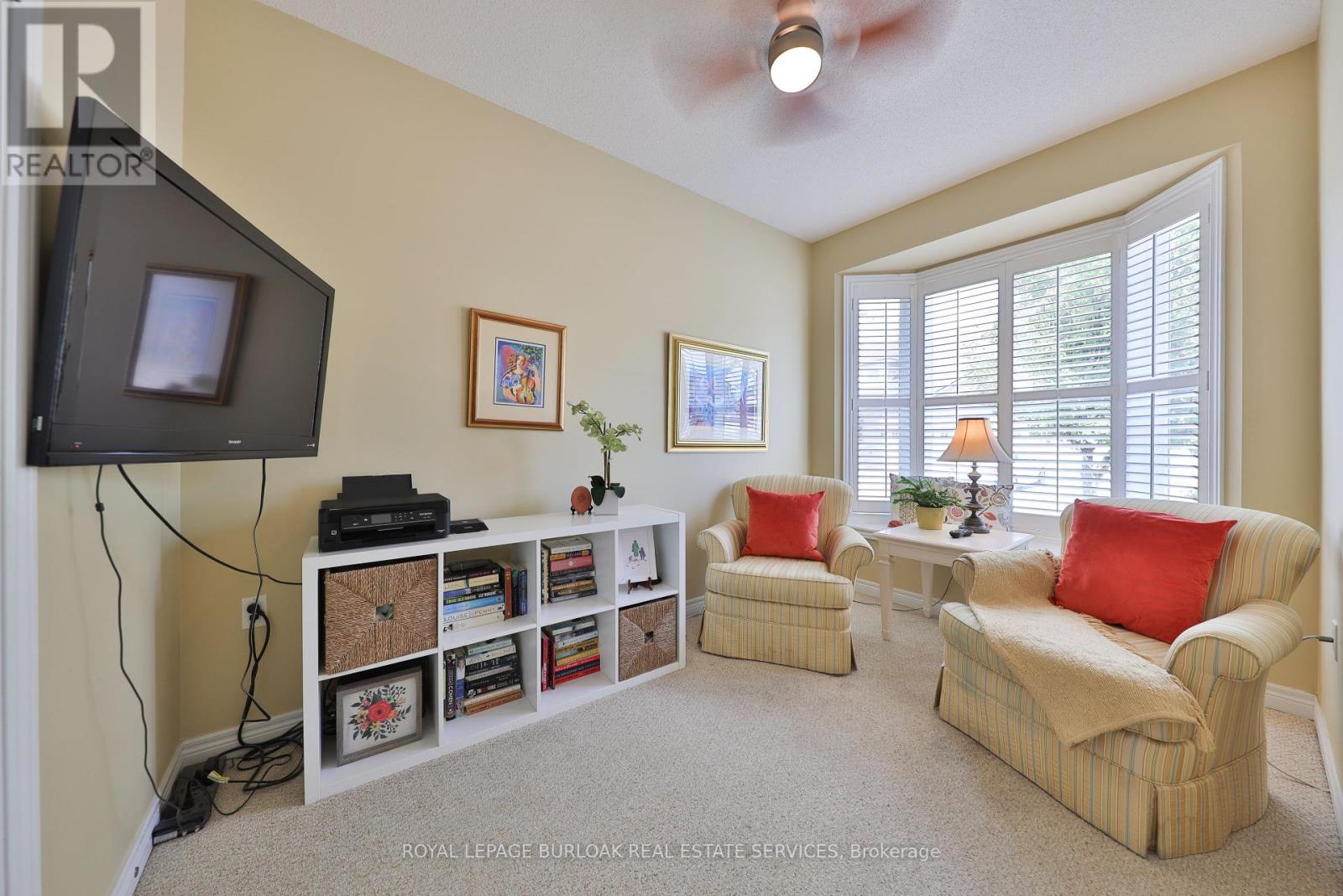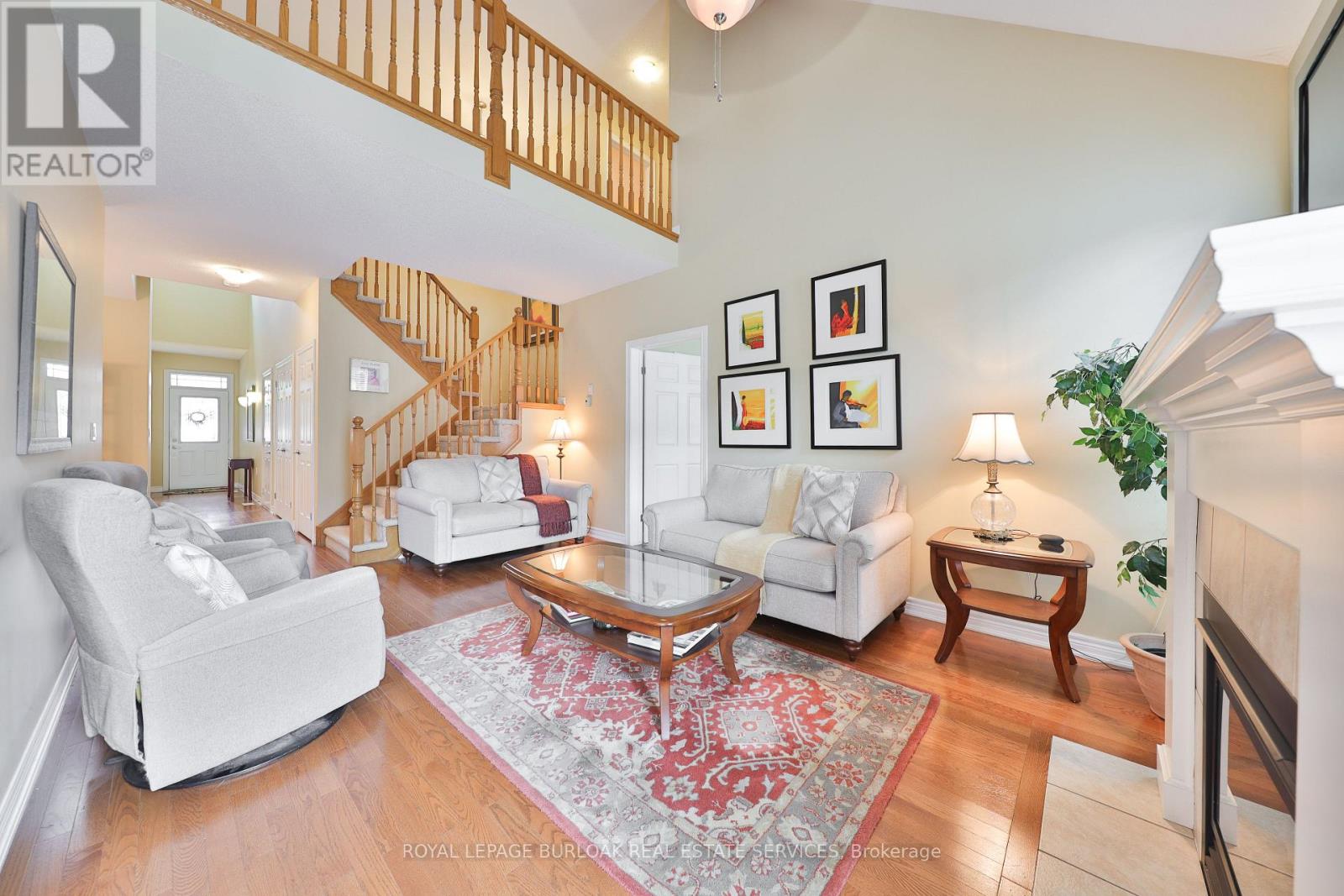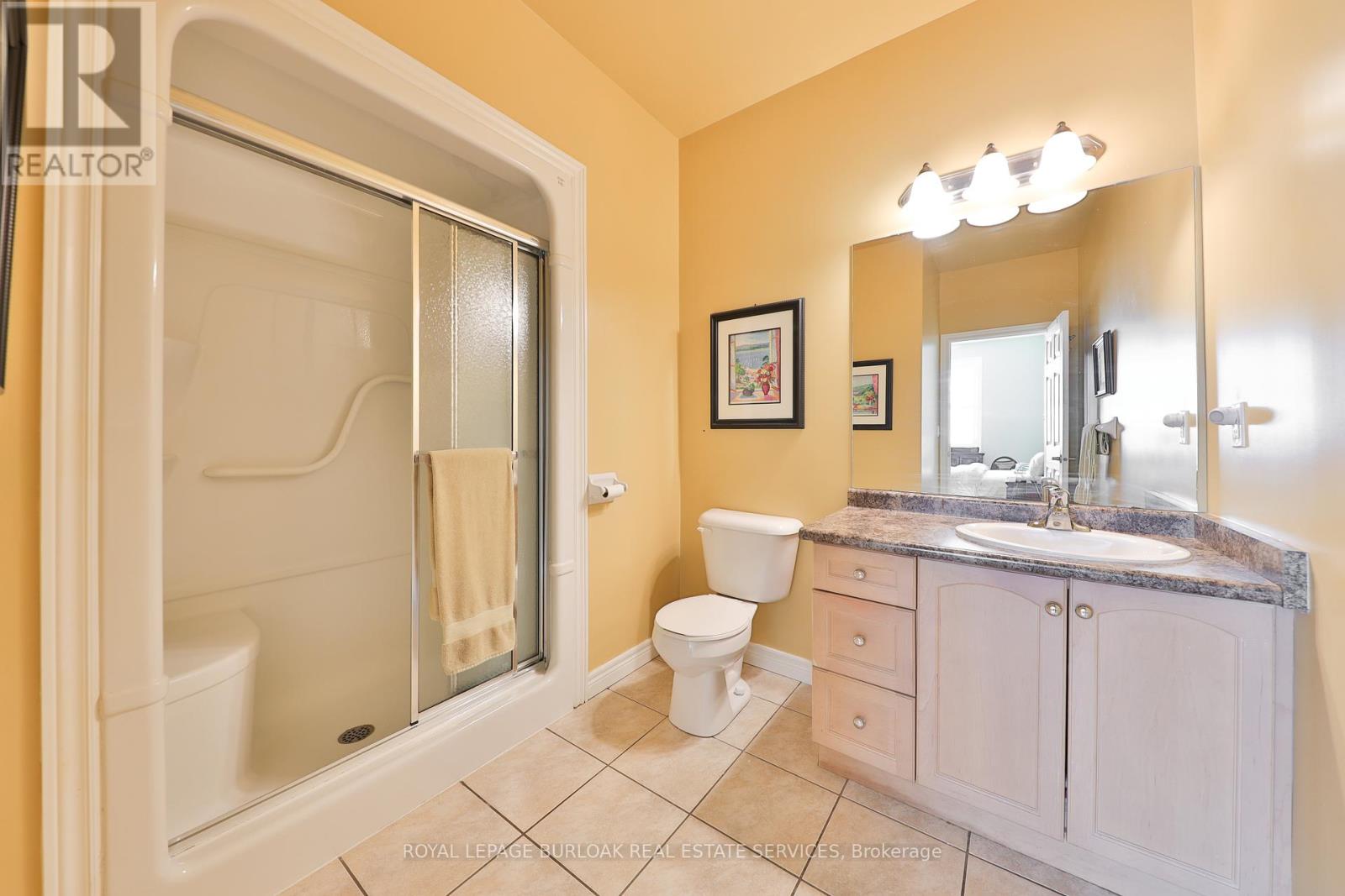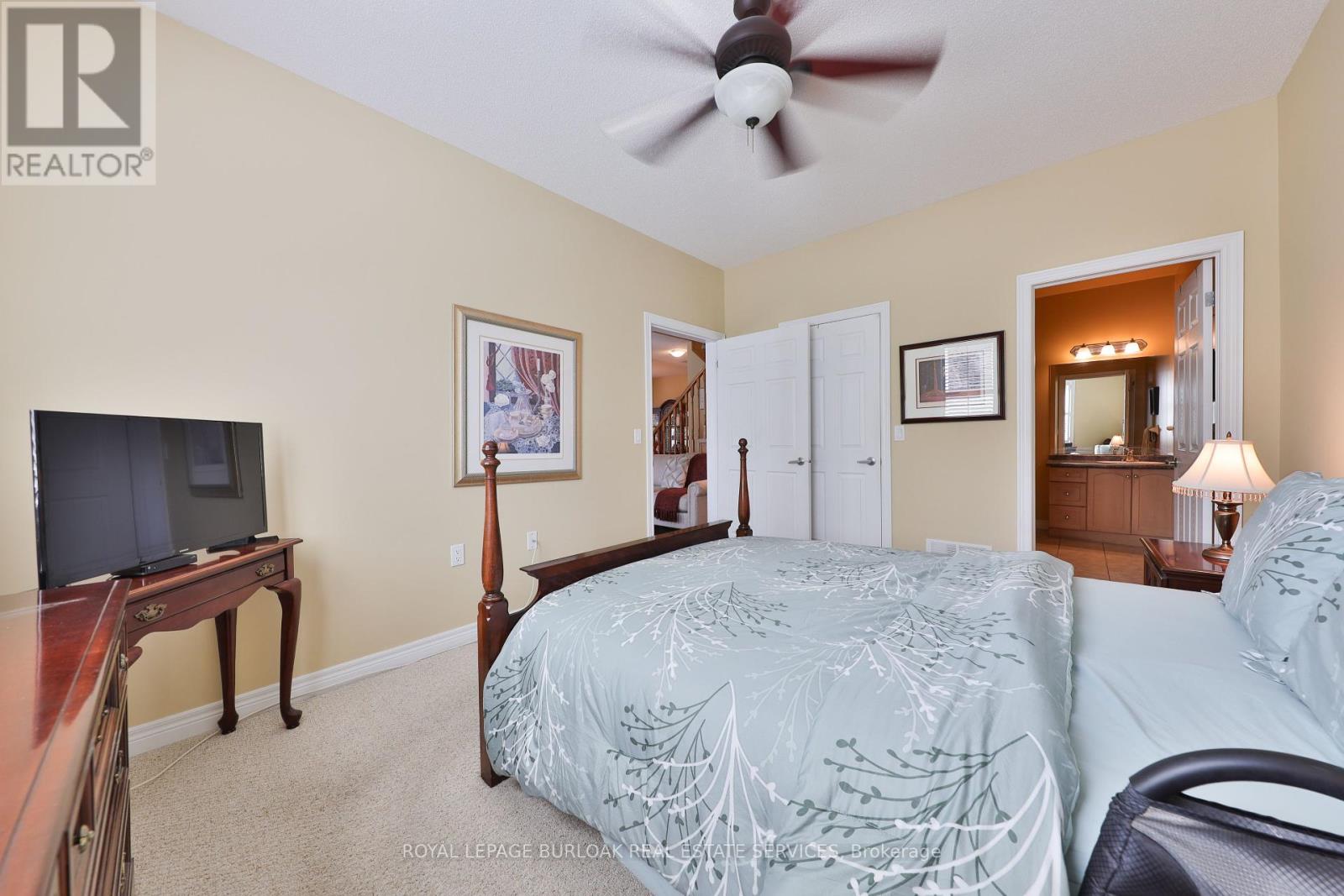 Welcome to this stunning bungaloft townhome, set within one of Burlington's most desirable lifestyle communities. Combining comfort and convenience, this residence offers total parking for 4 vehicles, a landscaped front yard framed by mature trees, and an automatic garage with inside entry. Its location is ideal just steps from scenic parks, vibrant shopping, and dining options, all with effortless access to major highways for commuting or weekend getaways. Inside, you'll find gleaming hardwood floors flowing throughout the main level, creating a warm, cohesive feel. The eat-in kitchen is both stylish and functional, featuring granite countertops, ample cabinetry, a tile backsplash, and stainless steel appliances. A walkout leads directly to your private backyard retreat, perfect for al fresco dining or relaxing with friends. The living room, highlighted by a soaring vaulted ceiling and cozy gas fireplace, offers an inviting space to gather, while the dining room provides a refined setting for entertaining. The main floor primary suite enhances everyday ease with its walk-in closet and 3pc ensuite, making it a perfect haven at days end. A versatile home office easily convertible to an additional bedroom and a 2pc bathroom complete this level. Upstairs, a bright and airy loft area offers flexible living potential ideal as a lounge, reading nook, or creative workspace, accompanied by a spacious bedroom with walk-in closet and a full 4pc bathroom. The lower level, currently unfinished, features a bathroom rough-in and unlimited potential to design the space of your dreams, whether that's a gym, media room, or additional living quarters. The private backyard is a true extension of the home, with an aggregate patio bordered by lush cedars for privacy. A sprinkler system, maintained by the condo, ensures effortless upkeep. This is more than a home its an opportunity to embrace a vibrant, well-connected lifestyle in a fantastic community. (id:24334)