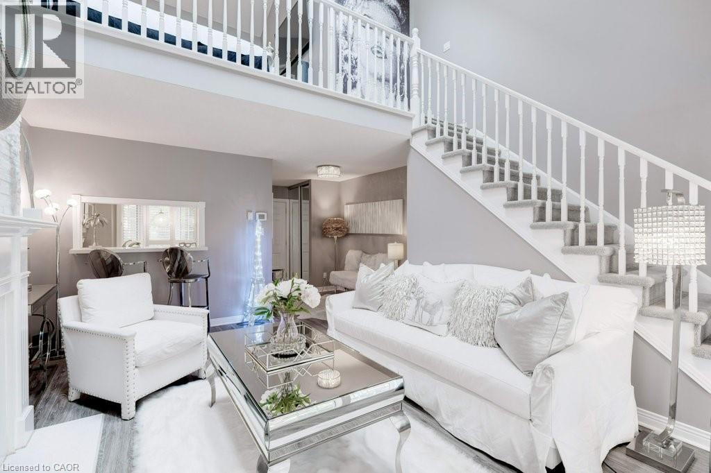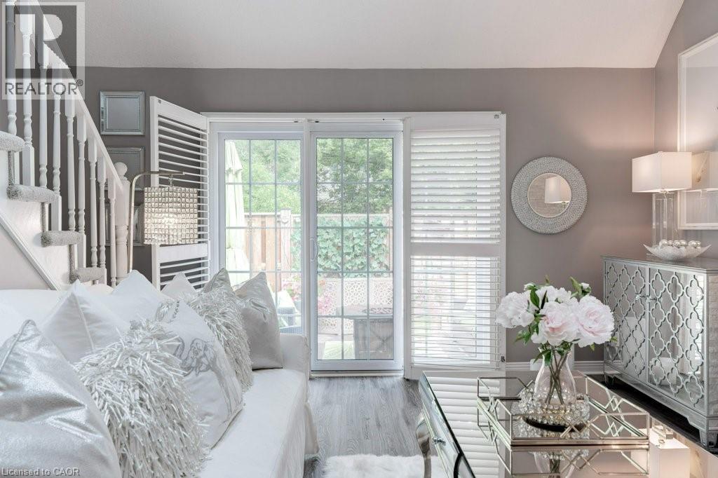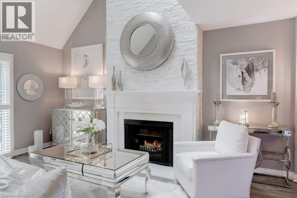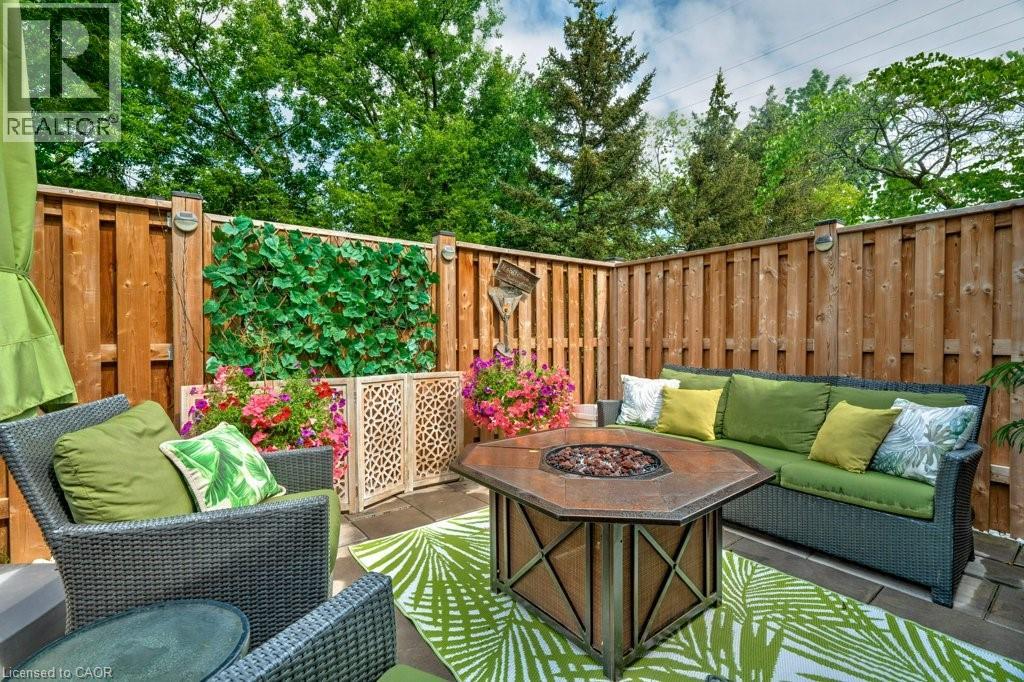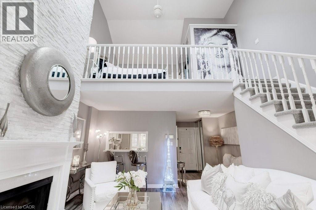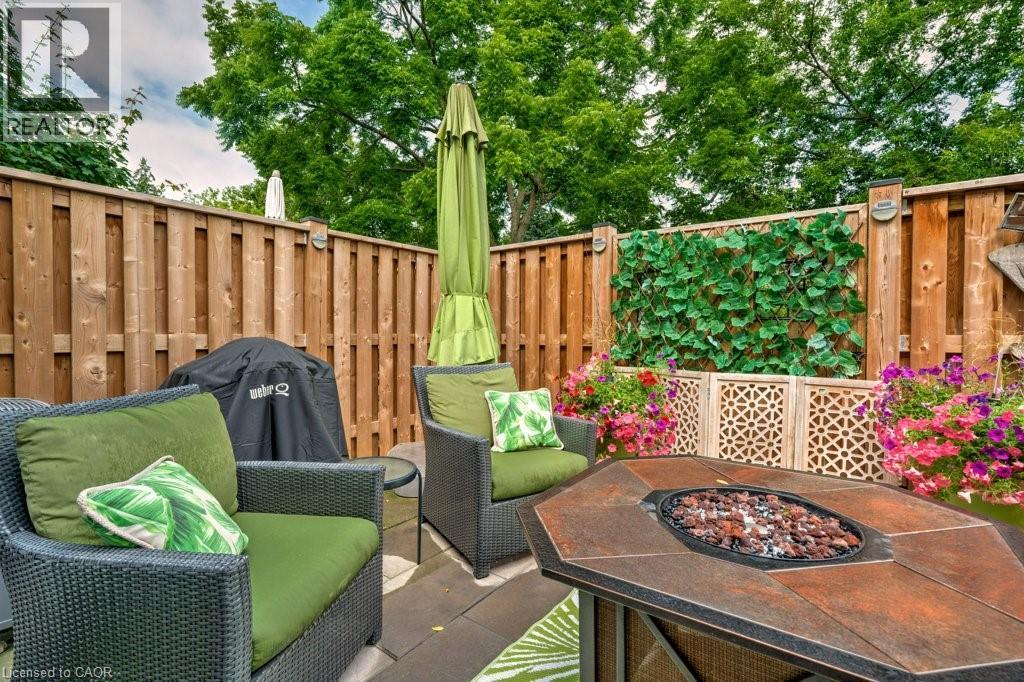 Incredible Location!! Updated Executive Townhome a short stroll from the Lake & Downtown Burlington. Welcome to the Charming Community of Maple Crossing, a private enclave of beautiful brick Townhomes surrounded by mature trees & plush gardens; only 2 blocks from the Lake! Uptown Loft Style 1+1 Bedroom, 2 Bath Townhome with backyard Terrace. Spacious Main Floor with wood plank vinyl flooring, well appointed eat-in Kitchen, Great Room w/ stunning Ledgestone Gas Fireplace Feature wall, Vaulted Ceilings & Triple Skylights. Upgraded Kitchen with white cabinetry, granite counters, custom back splash, Pantry, Breakfast Bar & window Dining Nook. Primary Bedroom spacious enough for a King bed, w/ vaulted ceilings, skylights, His & Hers Closets & Luxe 3pc Ensuite Bath with oversized Walk-In Glass Shower. Fully finished Basement offers and additional 400 sqft. of freshly updated Flex living space; new neutral paint with lush new wall to wall Berber carpet & an updated 3pc Bath with/ Luxurious clawfoot Soaking tub. Walk-out to a private fully fenced backyard Terrace for fabulous summer entertaining & BBQ's. Recently updated fencing & back Gate which opens onto well maintained green space. Two parking Spaces right outside your front door. Condo Corp. looks after Landscaping & Snow Removal in this quiet Townhome complex. Perfect for those who desire an easy lock & leave lifestyle. Walk to Burlington's Waterfront, unique Downtown Shops & Restaurants, Mapleview Mall, Theatre, Art Gallery, Jo Brant Hospital & More! Easy Transit, GO & Highway access. Low condo fee. Roof, Skylights & Fences have all been updated recently. Don't miss this one! Just move-in & start living a carefree Downtown lifestyle today! (id:24334)