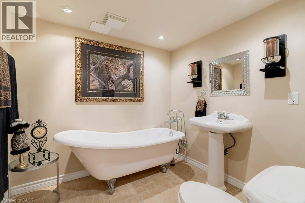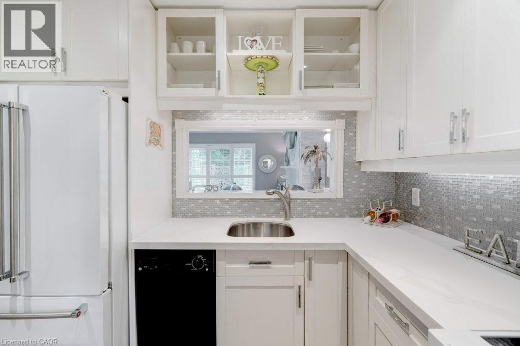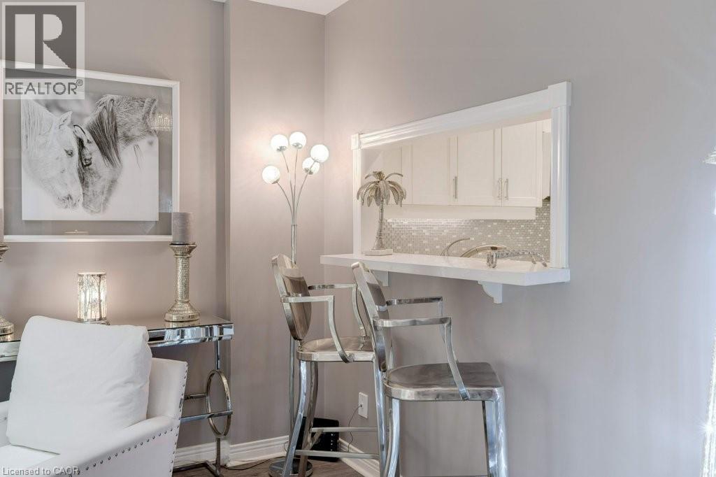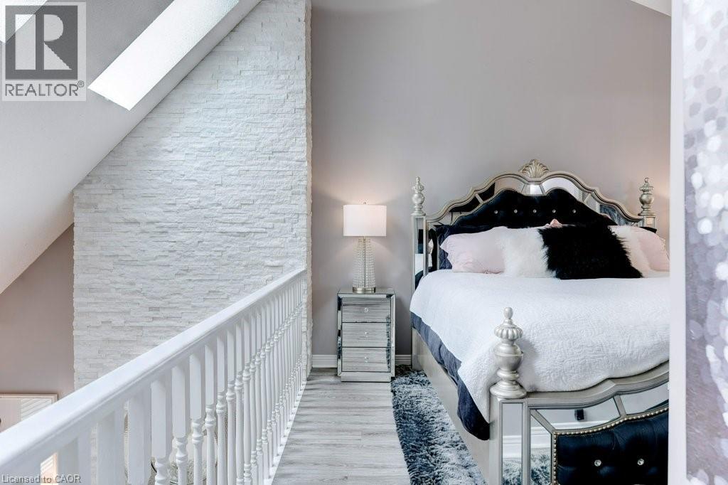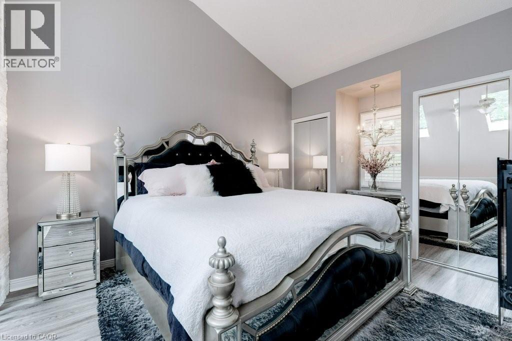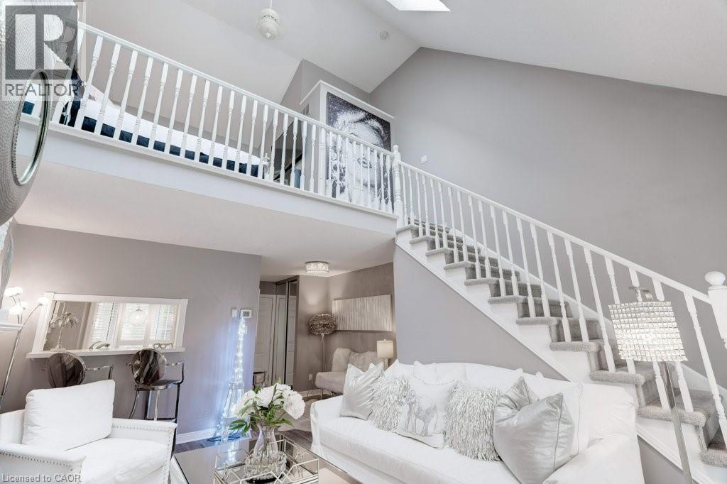 Incredible Location!! Updated Executive Townhome a short stroll from the Lake & Downtown Burlington. Welcome to the Charming Community of Maple Crossing, a private enclave of beautiful brick Townhomes surrounded by mature trees & plush gardens; only 2 blocks from the Lake! Uptown Loft Style 1+1 Bedroom, 2 Bath Townhome with backyard Terrace. Spacious Main Floor with wood plank vinyl flooring, well appointed eat-in Kitchen, Great Room w/ stunning Ledgestone Gas Fireplace Feature wall, Vaulted Ceilings & Triple Skylights. Upgraded Kitchen with white cabinetry, granite counters, custom back splash, Pantry, Breakfast Bar & window Dining Nook. Primary Bedroom spacious enough for a King bed, w/ vaulted ceilings, skylights, His & Hers Closets & Luxe 3pc Ensuite Bath with oversized Walk-In Glass Shower. Fully finished Basement offers and additional 400 sqft. of freshly updated Flex living space; new neutral paint with lush new wall to wall Berber carpet & an updated 3pc Bath with/ Luxurious clawfoot Soaking tub. Walk-out to a private fully fenced backyard Terrace for fabulous summer entertaining & BBQ's. Recently updated fencing & back Gate which opens onto well maintained green space. Two parking Spaces right outside your front door. Condo Corp. looks after Landscaping & Snow Removal in this quiet Townhome complex. Perfect for those who desire an easy lock & leave lifestyle. Walk to Burlington's Waterfront, unique Downtown Shops & Restaurants, Mapleview Mall, Theatre, Art Gallery, Jo Brant Hospital & More! Easy Transit, GO & Highway access. Low condo fee. Roof, Skylights & Fences have all been updated recently. Don't miss this one! Just move-in & start living a carefree Downtown lifestyle today! (id:24334)