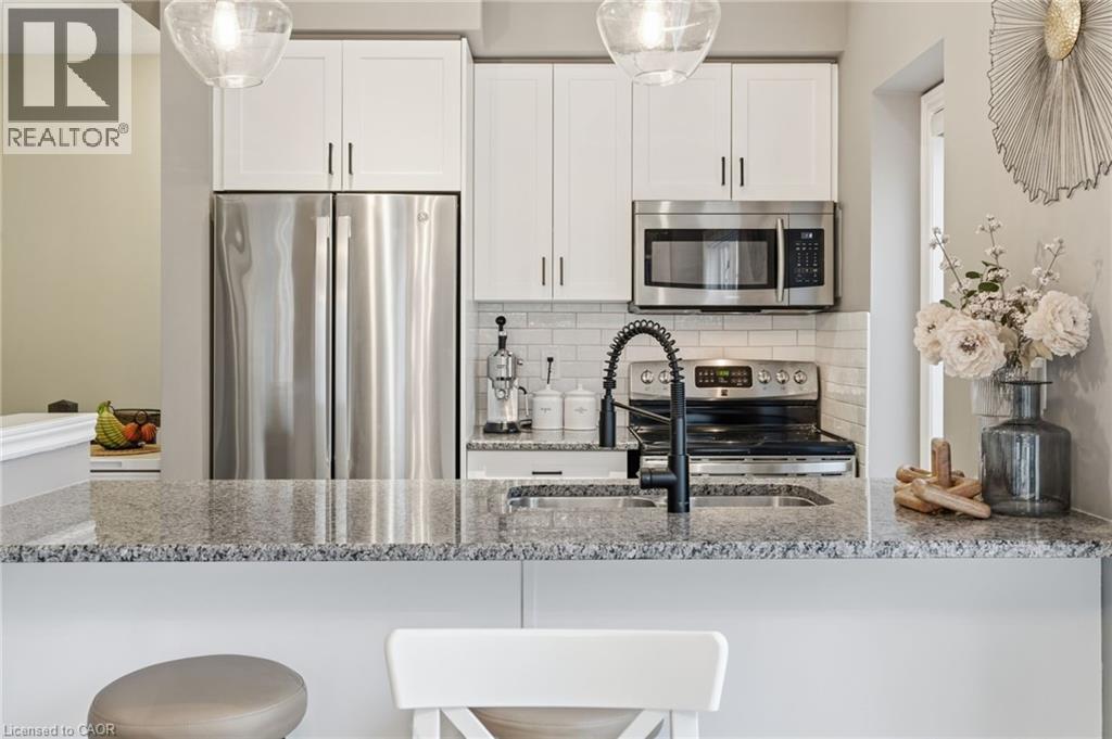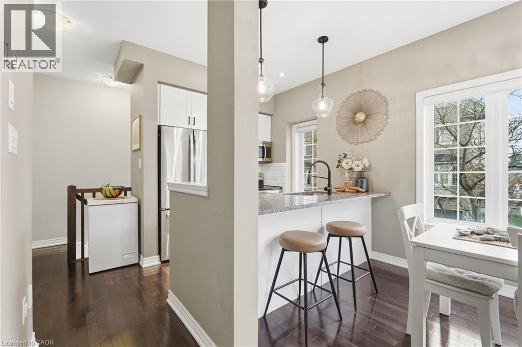 Welcome to this stunning three-storey executive townhouse ideally located in Central Burlington, just a short walk to the GO Station, downtown shops, restaurants, and the lakefront. Designed for modern living, this home offers a bright, open-concept layout that flows seamlessly across every level—perfect for professionals or families who value comfort and convenience. The main floor features a welcoming office or den, ideal for working from home or as a cozy reading space, along with inside garage access. The second level showcases a crisp white kitchen with stone countertops, stainless steel appliances and a spacious dining and living area with hardwood flooring throughout. This level also includes a convenient laundry room, thoughtfully positioned near the main living space. Upstairs, you’ll find three generous-sized bedrooms, including a bright and airy primary suite with ample closet space and a modern, spa-inspired bathroom. Enjoy maintenance-free living with the condominium corporation handling all exterior and seasonal upkeep, so you can relax and enjoy everything Burlington has to offer. Steps to transit, parks, the lake, and all major amenities, this home combines urban convenience with low-maintenance luxury living in one of Burlington’s most sought-after neighbourhoods. RSA. (id:24334)