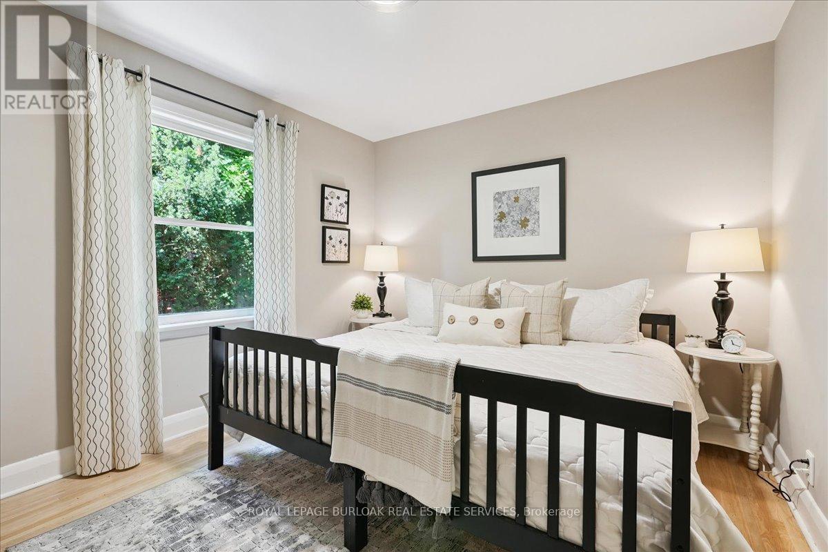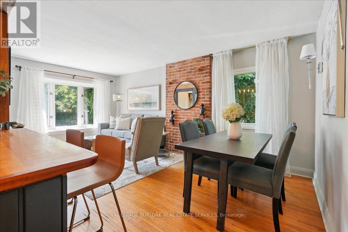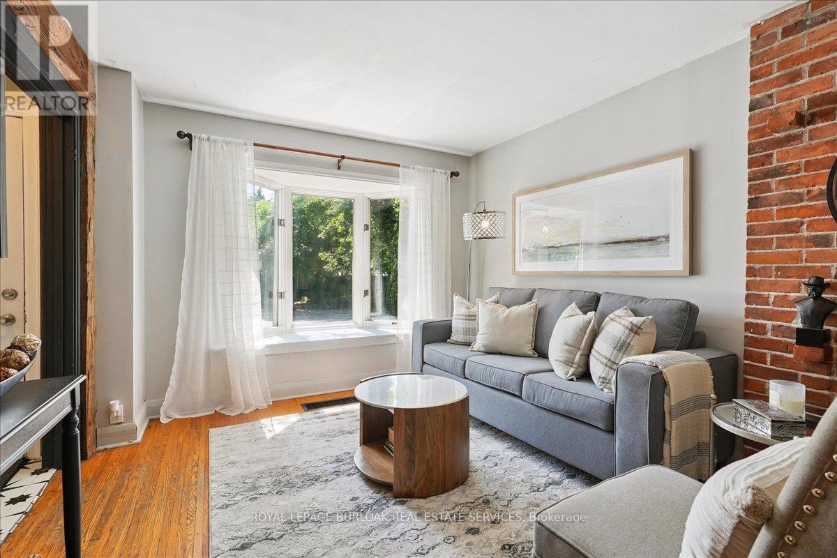 Charming Downtown Bungalow Steps to the Lake! Heres your chance to own a rare gem in the heart of downtown Burlington. This character-filled bungalow sits on a generous 50' x 120' lot on one of the most desirable streets in the city just a short stroll to the lake, Spencer Smith Park, boutique shops, top-rated restaurants, cozy cafés, and the Burlington Performing Arts Centre. Whether you're a first-time home buyer, empty nester or considering condo living but without condo fees, investor or builder, this property checks every box when seeking a home in a walkable urban setting. The home is full of charm and personality, featuring exposed wood beams, brick accent walls, original hardwood flooring, large windows, and French doors that fill the home with natural light. The sunroom is the perfect spot for your morning coffee or unwind with friends on the deck overlooking your private backyard. Bonus: Parking for 6 vehicles almost unheard of downtown! Upgrades include: New roof shingles (2023), Updated electrical panel, Furnace (2015). Zoned DRL with excellent redevelopment potential. Opportunities like this don't last long in downtown Burlington. (id:24334)