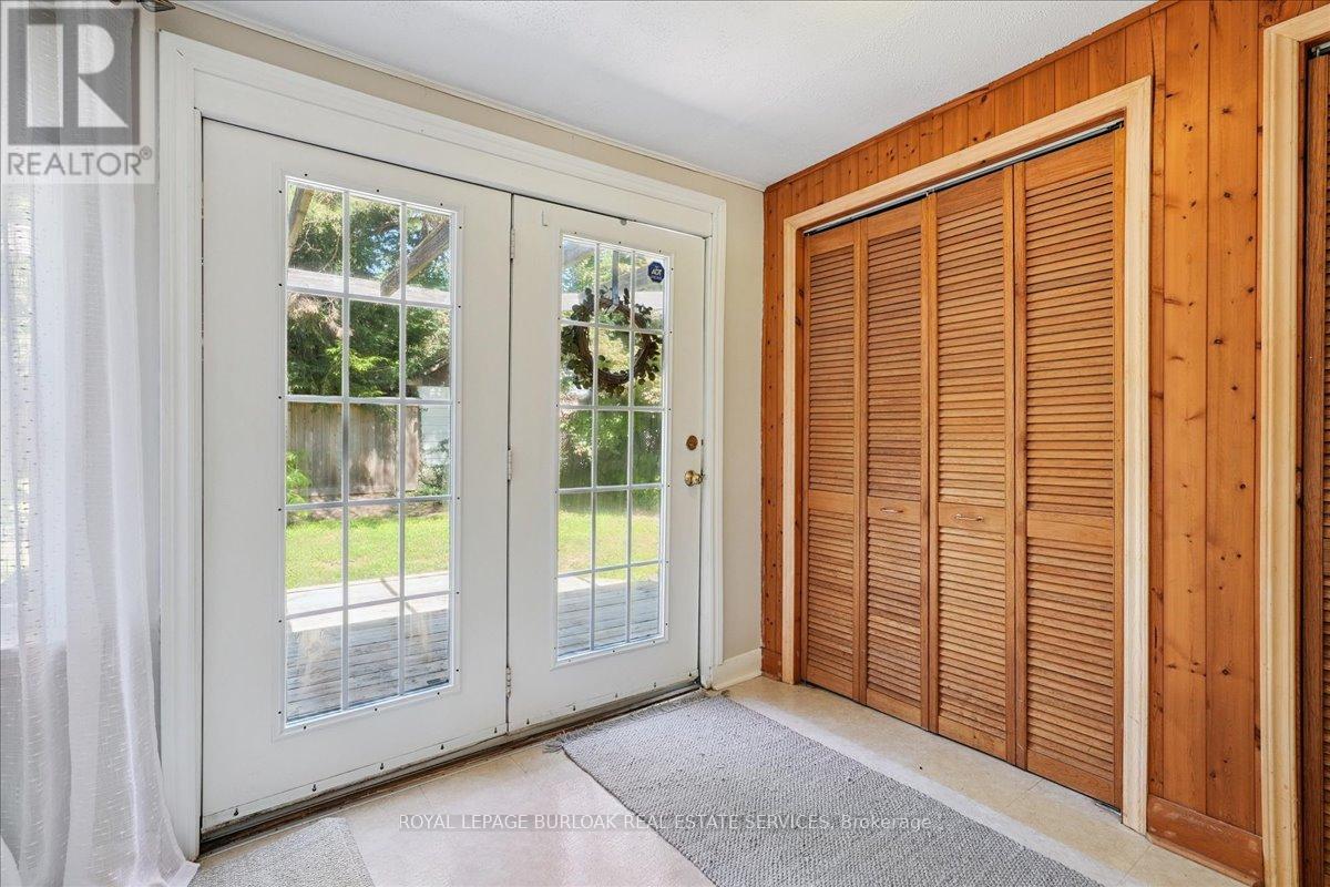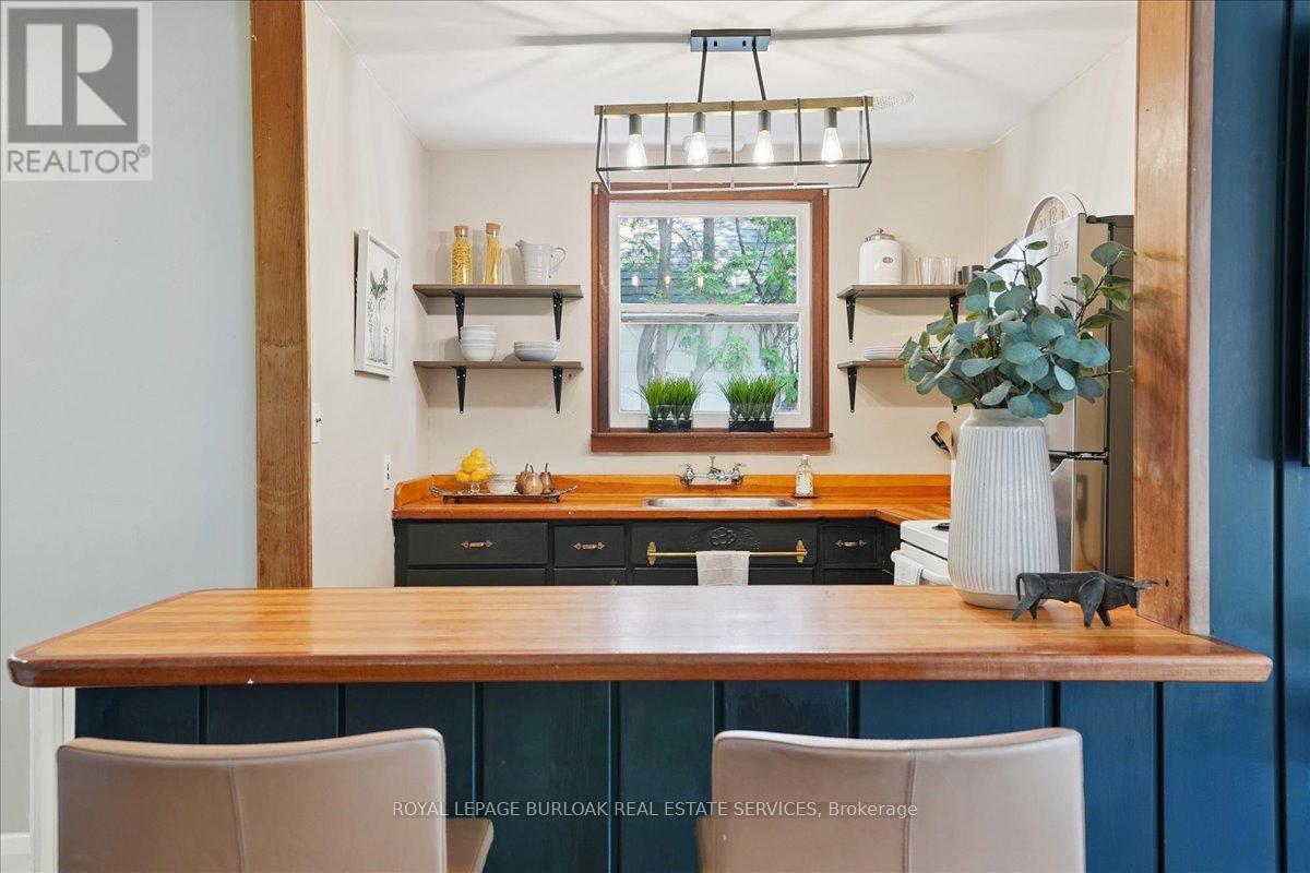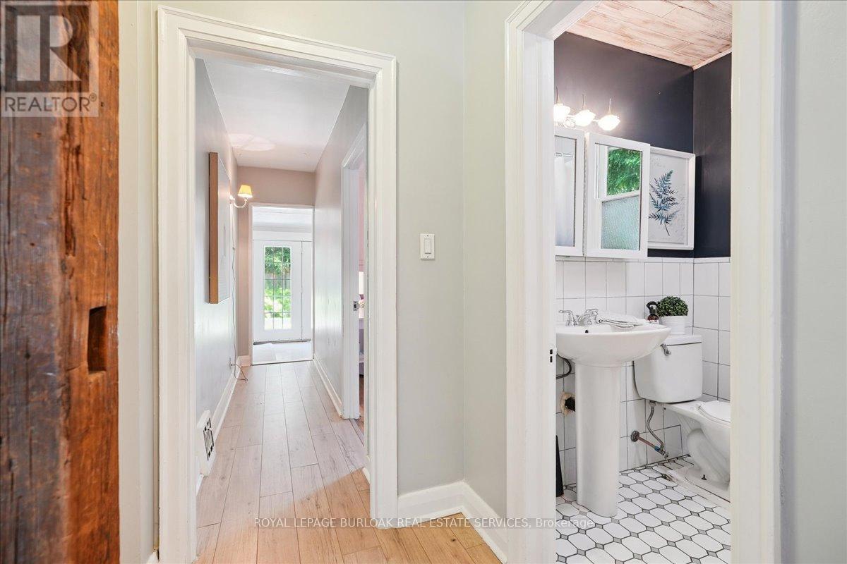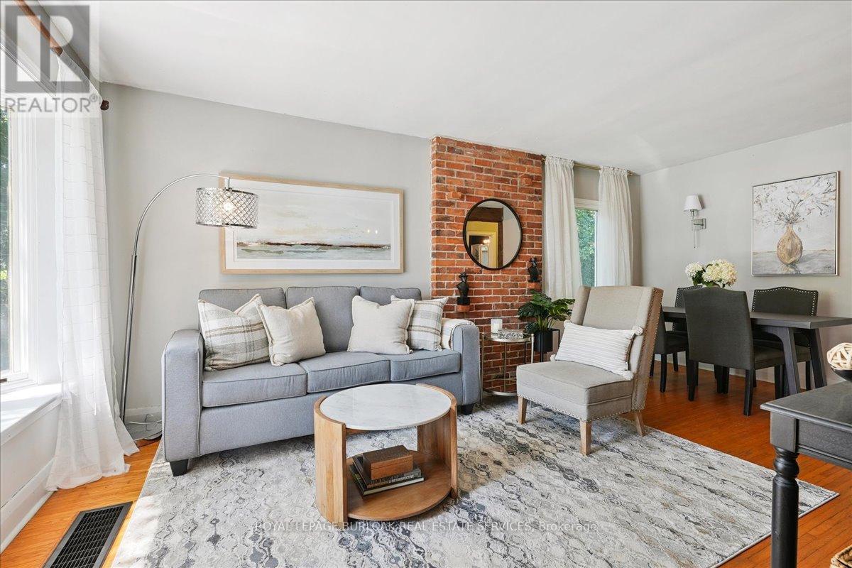 Charming Downtown Bungalow Steps to the Lake! Heres your chance to own a rare gem in the heart of downtown Burlington. This character-filled bungalow sits on a generous 50' x 120' lot on one of the most desirable streets in the city just a short stroll to the lake, Spencer Smith Park, boutique shops, top-rated restaurants, cozy cafés, and the Burlington Performing Arts Centre. Whether you're a first-time home buyer, empty nester or considering condo living but without condo fees, investor or builder, this property checks every box when seeking a home in a walkable urban setting. The home is full of charm and personality, featuring exposed wood beams, brick accent walls, original hardwood flooring, large windows, and French doors that fill the home with natural light. The sunroom is the perfect spot for your morning coffee or unwind with friends on the deck overlooking your private backyard. Bonus: Parking for 6 vehicles almost unheard of downtown! Upgrades include: New roof shingles (2023), Updated electrical panel, Furnace (2015). Zoned DRL with excellent redevelopment potential. Opportunities like this don't last long in downtown Burlington. (id:24334)