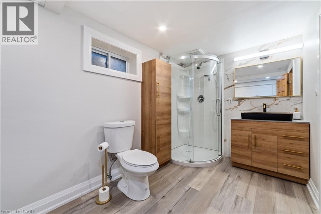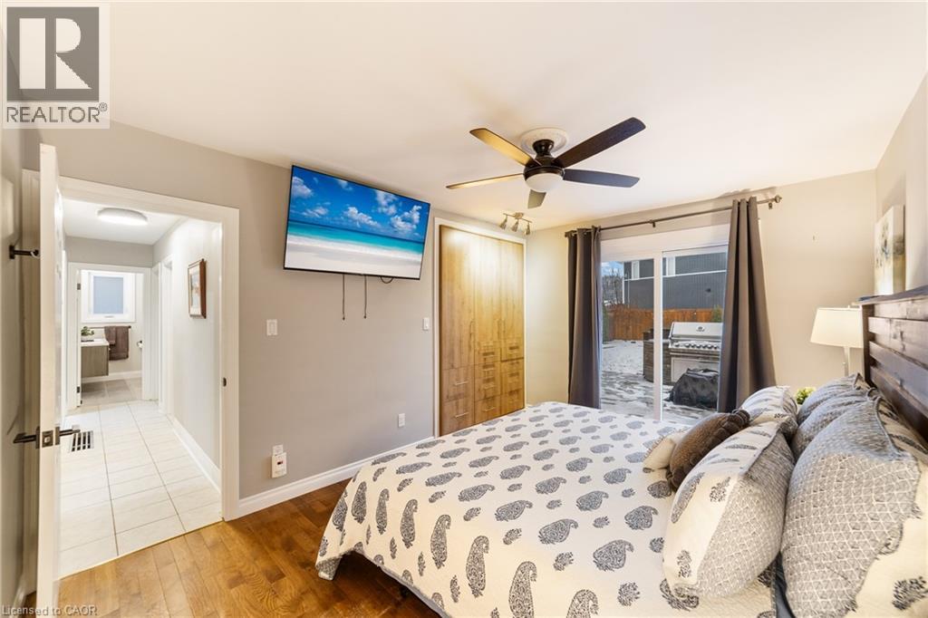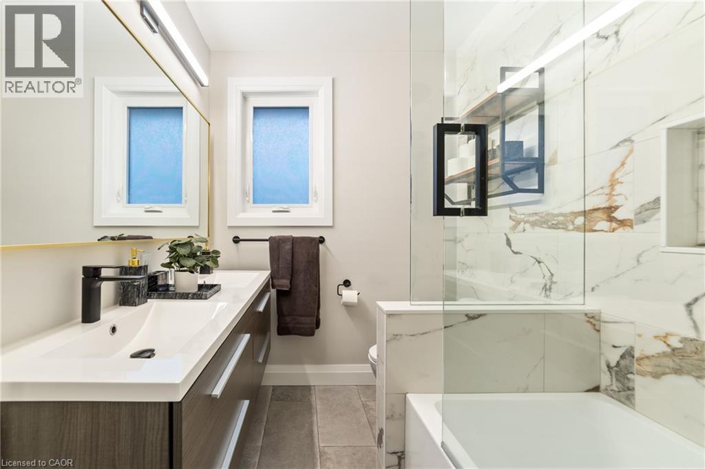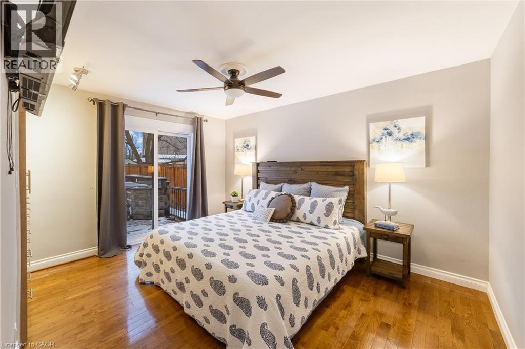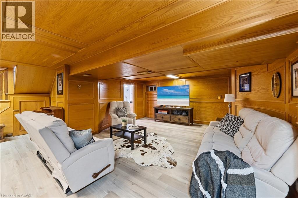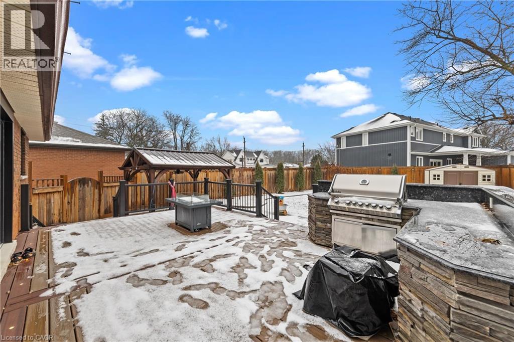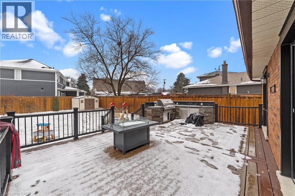 Nicely appointed 3-bedroom, 2-bath bungalow situated on a large, mature lot in the desirable Mountainside area. This home offers ample parking and a family-friendly setting surrounded by mature trees. The backyard is an entertainer’s dream, featuring newer hardscaping, a raised deck with outdoor kitchen complete with granite countertops, and hot tub for relaxation. The main floor includes a newly updated bathroom, custom bedroom built-ins, and a bright living room with large window for added natural light, highlighted by additional custom built-ins and a floating electric fireplace, perfect for warmth on a cold winter's evening. Newer main floor windows and doors, done within the last few years! Take a walk downstairs where there is a separate side entrance, which then leads to the finished basement, a refreshed bathroom, large recreation room and separate home office space. The wood-burning fireplace, and newer luxury vinyl plank flooring give this space warmth & style. Additional features include a good size backyard shed for extra storage. Short walk to schools in the area, while also being conveniently located in proximity to shopping, amenities, and major highways—this home offers comfort, functionality, and an excellent location for years to come. (id:24334)