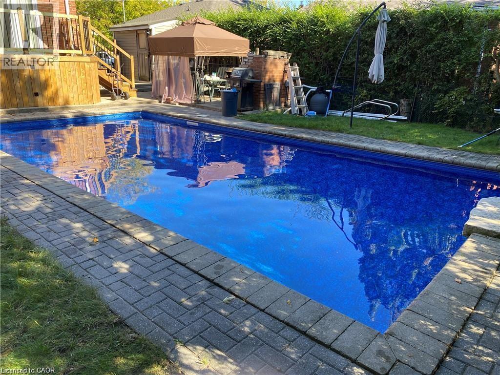 This beautifully maintained 3+1 bedroom bungalow in Burlington’s desirable Mountainside neighborhood offers comfort, functionality, and income potential. The bright, carpet-free main floor features 3 spacious bedrooms, a welcoming living room, and a well-appointed kitchen with classic oak cabinets and extra pantry storage. There are 2 additional closets in the kitchen for maximum organization. The fully finished basement is designed for versatility, with a separate side entrance leading to a complete in-law suite. This carpet free lower level includes 1 bedroom, a den, a generous living room, a full kitchen,4 piece bathroom and a large laundry room. Perfect for extended family, potential rental income, or even short-term Airbnb opportunities. Recent upgrades ensure peace of mind and long-term value, including a steel roof, new backyard deck, double-wide driveway with parking for 5 cars, sump pump with water protection, check valve, and backup battery system. Step outside into your private backyard retreat. Two sliding doors off the main-floor bedrooms open directly to the new deck, overlooking a large inground pool with a newer liner, pump, and sand filter. The fully fenced yard offers amazing privacy, a spacious concrete patio, lush green space, and an additional fenced area separated from the pool. It’s like having 2 backyards with this 161 foot deep lot. Situated close to schools, parks, shopping, transit, and churches. This home combines everyday convenience with a lifestyle of comfort. Perfect for families, downsizers, or savvy investors looking for a move-in-ready property with endless potential (id:24334)