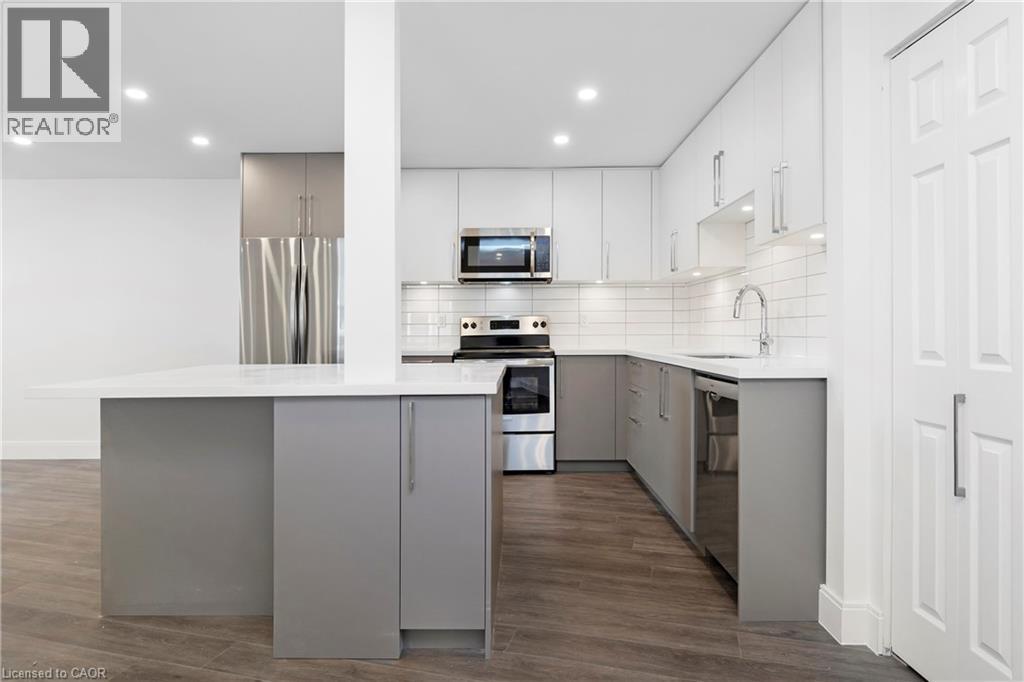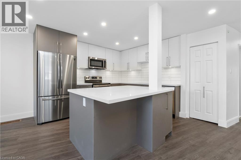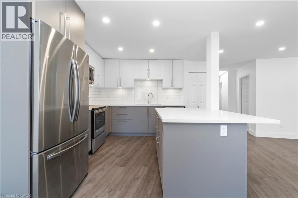 Renovated from top to bottom - this unit boasts 2 large bedrooms and 2 bathrooms, including a primary 3pc en-suite. The open concept kitchen/dining area is filled with natural light and has been updated with brand new modern fixtures, quartz counters and stainless steel appliances. This unit also includes a large laundry room with new washer/dryer and sink. Situated at the end of a court in a quiet neighbourhood in North Burlington, this unit is close to all amenities, schools, parks and has backyard access to the local bike path. Space for 2 small cars or 1 larger car. Landlord will take care of lawn maintenance. Internet Included. Available as of March 1st. (id:24334)
