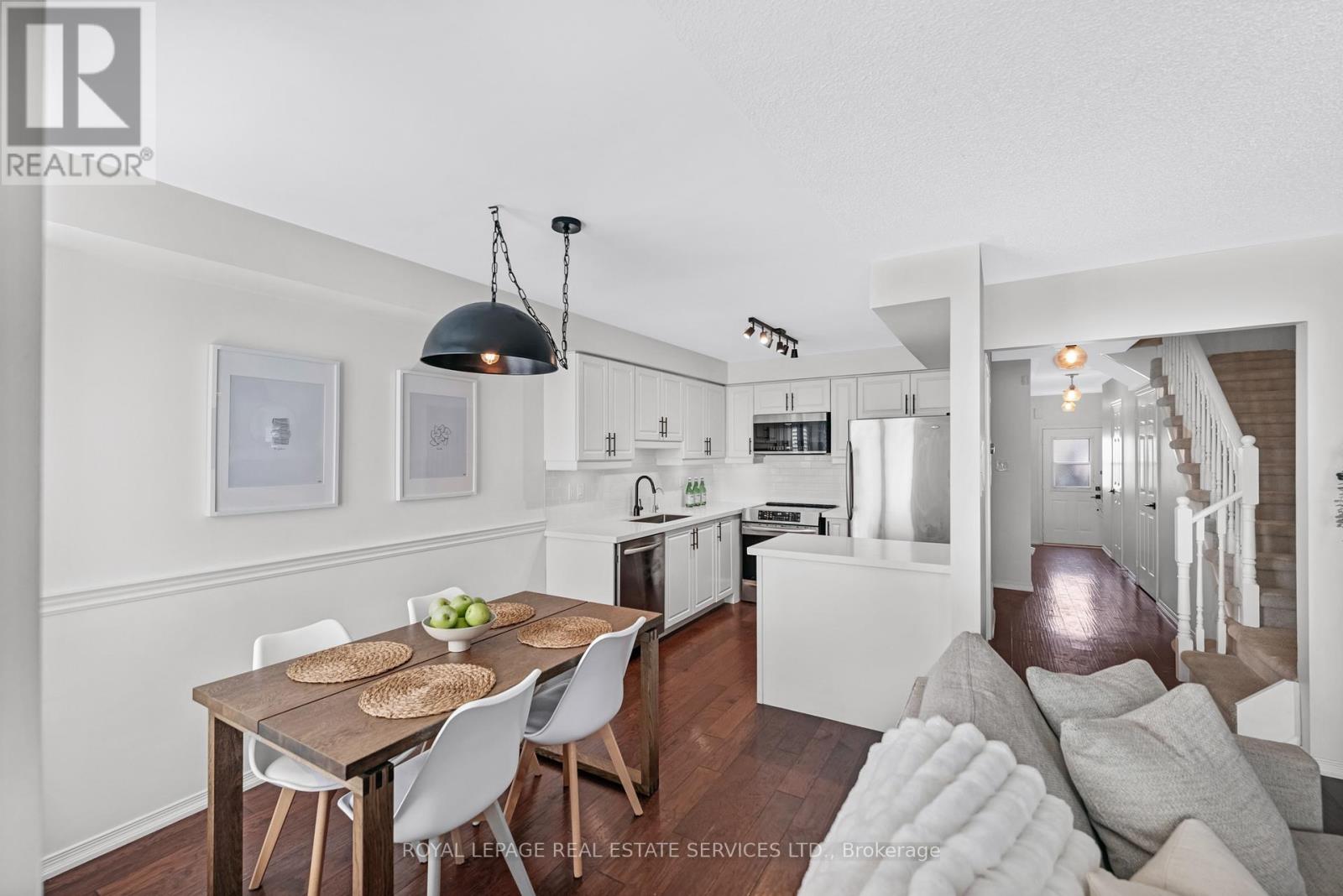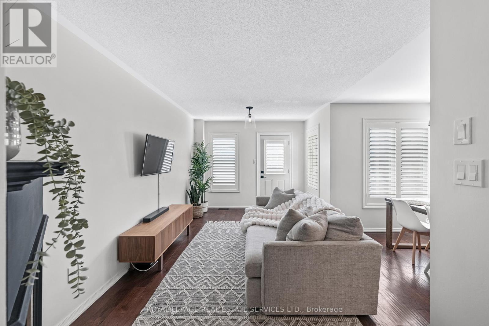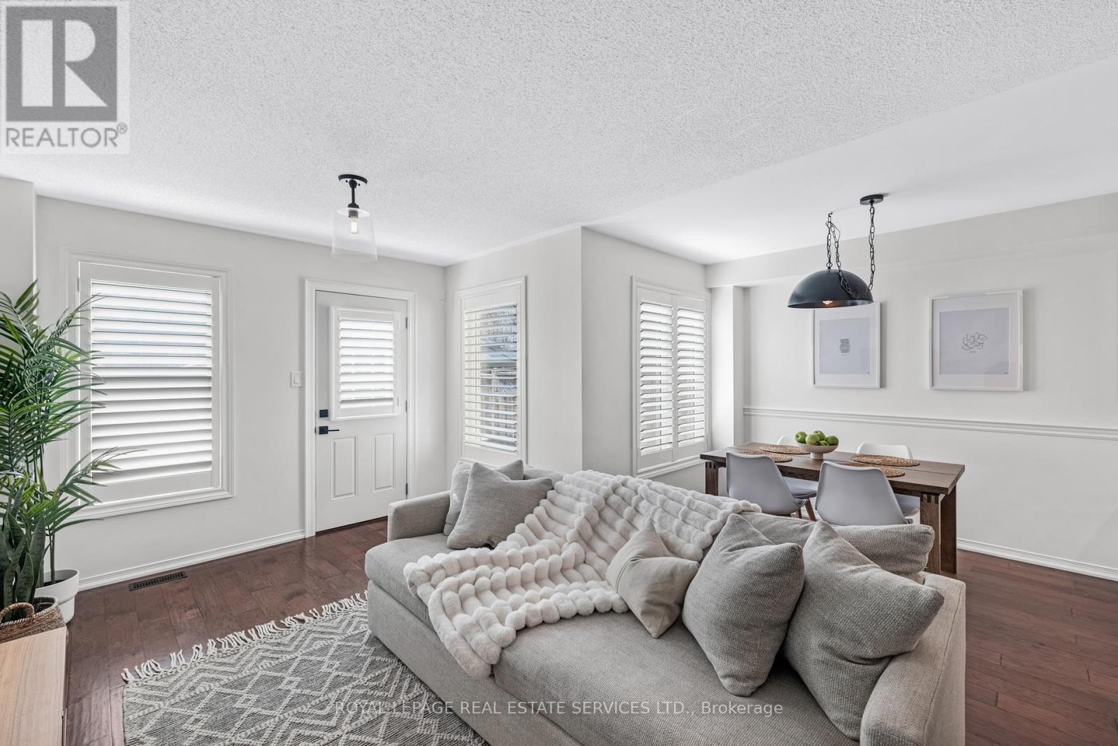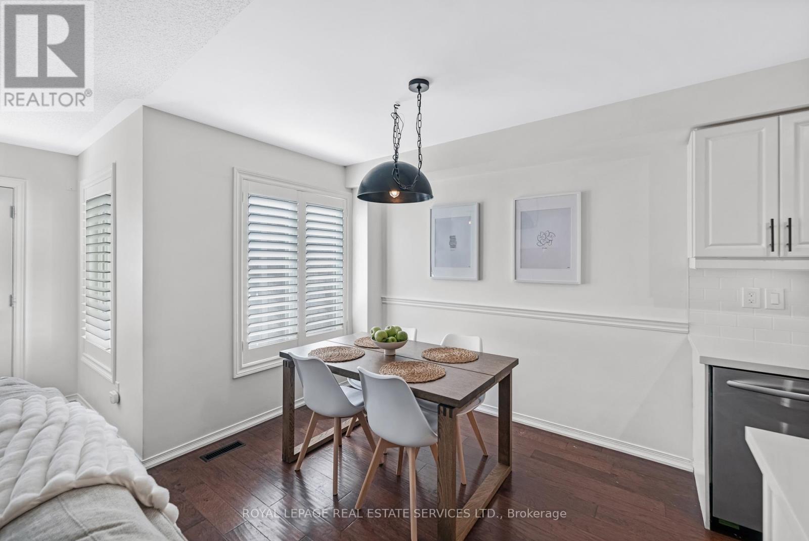 Beautiful turnkey living in one of Burlington's most convenient pockets. This stylish, move-in ready 3-bedroom freehold townhouse is tucked away on a quiet, family-friendly street. Thoughtfully updated throughout, including a modern kitchen renovation (2021) with quartz countertops, subway tile backsplash, induction stove, undermount sink, and reverse osmosis water system. Bathrooms were updated in 2021 with new tile, bathtub, glass shower door, toilets, and fixtures. The main level showcases engineered hardwood flooring and updated windows (2021) with custom engineered wood shutters (2022). Additional improvements include roof replacement (2019), garage door and trim (2021), banister repaint (2025), and upgraded ductwork with inline duct fan for the furnace (2025). The finished basement offers a dedicated home theatre area, laundry, and additional storage-perfect for relaxing or entertaining. Ideally located close to parks, schools, shopping, restaurants, and just minutes to the QEW, 407, and Appleby GO for easy commuting. A fantastic opportunity for first-time buyers or young families seeking a stylish, well-maintained home in a highly convenient neighbourhood. (id:24334)
