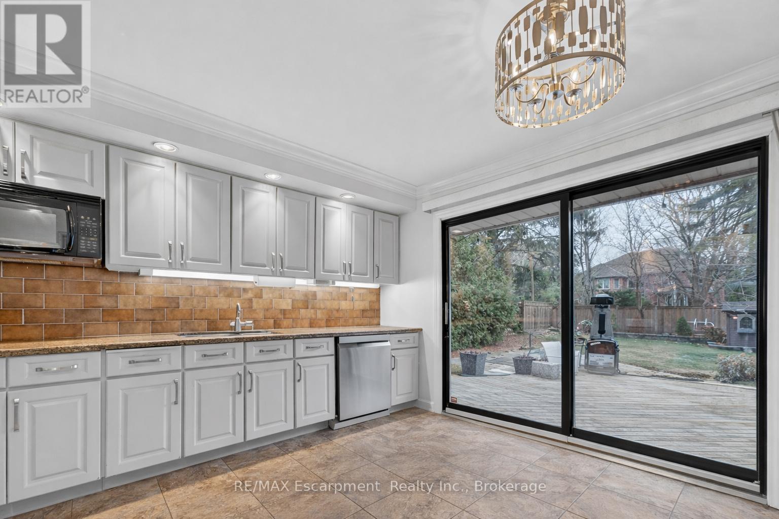 Welcome to 195 Wilton Street, set on an exceptional 70' x 163' lot in the heart of Burlington's highly coveted Roseland community. This well maintained side split offers approximately 2,000 square feet of functional living space with three bedrooms and three bathrooms, blending comfort, privacy, and lifestyle. The main level features a bright, open layout with an updated kitchen complete with granite countertops, stainless steel appliances, and walkout access to the rear deck, ideal for entertaining and everyday living. A separate family room with custom built ins and a gas fireplace provides a warm secondary living space with views of the backyard. The upper level includes three generously sized bedrooms, highlighted by a spacious primary suite with a private three piece ensuite, along with an additional updated main bath. Step outside to a true backyard retreat. The deep, private yard is professionally landscaped and features an inground saltwater pool, artificial turf putting green, and ample space for outdoor dining, lounging, and summer entertaining. Ideally located just steps from the lake, the Roseland Tennis Club, and close to top rated schools including Tuck and Nelson. Minutes to downtown Burlington, amenities, and major highways. A rare opportunity to secure a premium lot and lifestyle driven home in one of Burlington's most prestigious neighbourhoods. (id:24334)