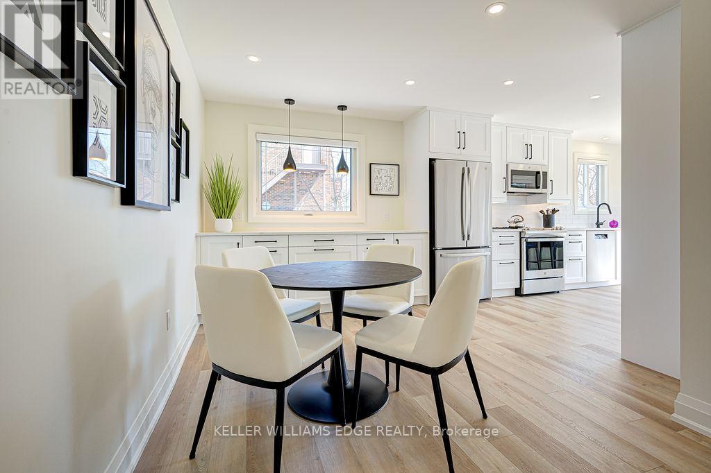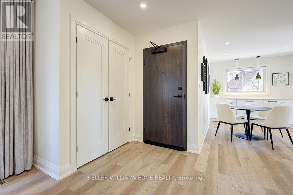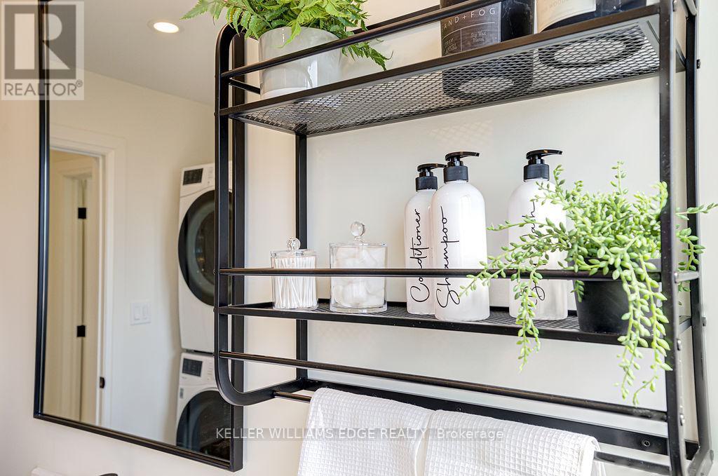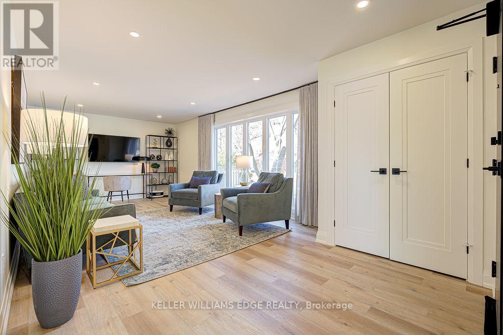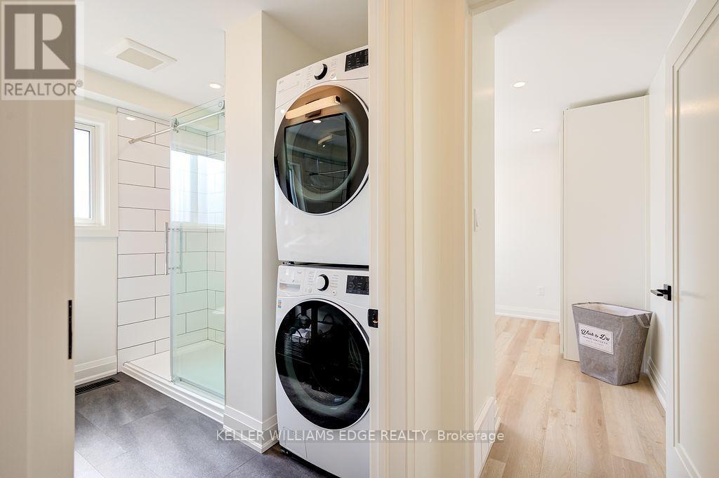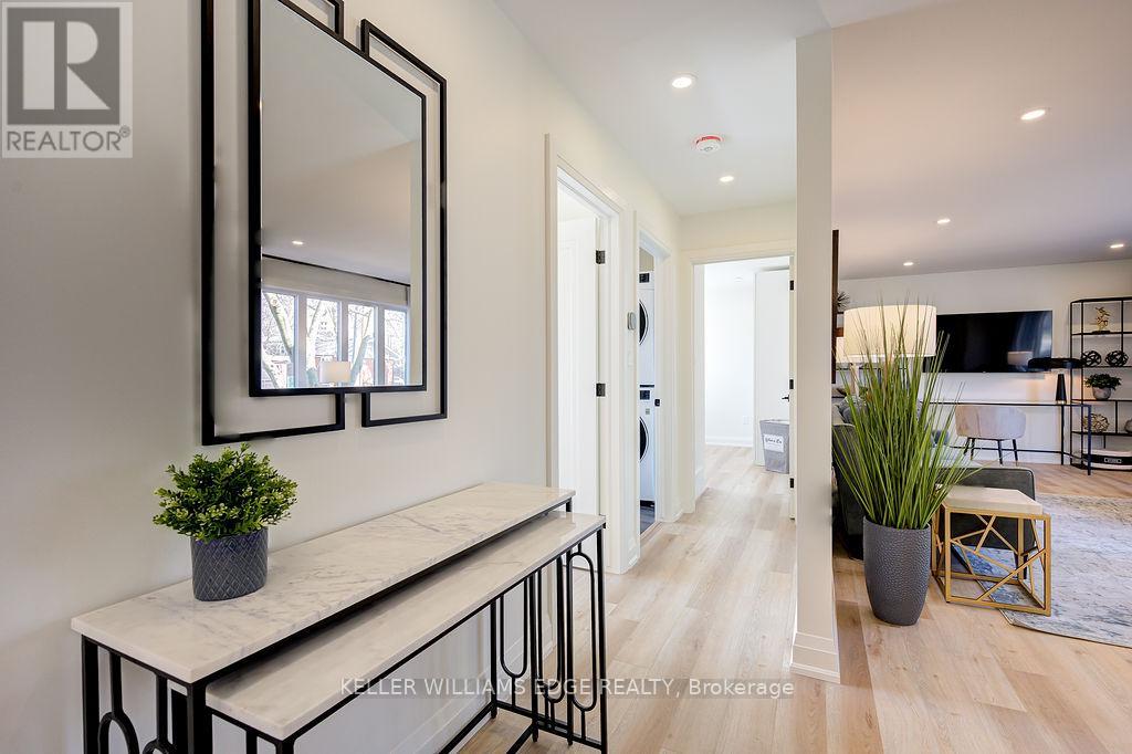 FULLY FURNISHED all inclusive RENTAL Stunning luxury 2-bedroom, 1-bathroom, main floor suite located in boutique building. Elegantly appointed and beautifully upgraded suite features a purposeful layout with wide plank luxury vinyl hardwood throughout the open concept kitchen, dining and living rooms. This bright and spacious fully furnished suite features a comfortable living space with plush sofa and chairs, glass office desk with display shelving flanking and smart TV. Enjoy the chef-style kitchen, complete with floor to ceiling white shaker cabinetry, premium quartz countertop, full-sized stainless-steel appliances, including dishwasher and built-in microwave, tile backsplash, under cabinet lighting, breakfast bar and sliding glass patio door leading to the large private deck. Bedrooms are serene with neutral colour palettes, nightstands, quality linens, and wardrobe with plenty of storage. Spa-inspired bathroom with glass walk-in shower featuring rain head, adjustable handheld shower arm, modern pedestal sink, and full-sized stackable washer and dryer. Suite includes 2 car parking. Located steps to the exquisite downtown Burlington waterfront, Spencer Smith Park, boutique shops, restaurants, QEW, 403, 407 and GO. No smokers, all residents must qualify to lease suite. (id:24334)