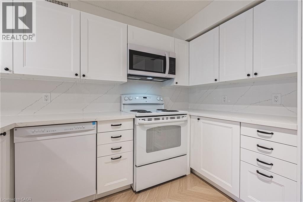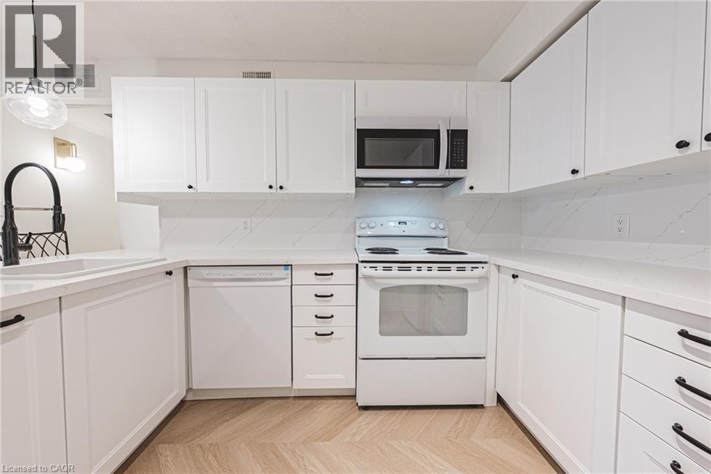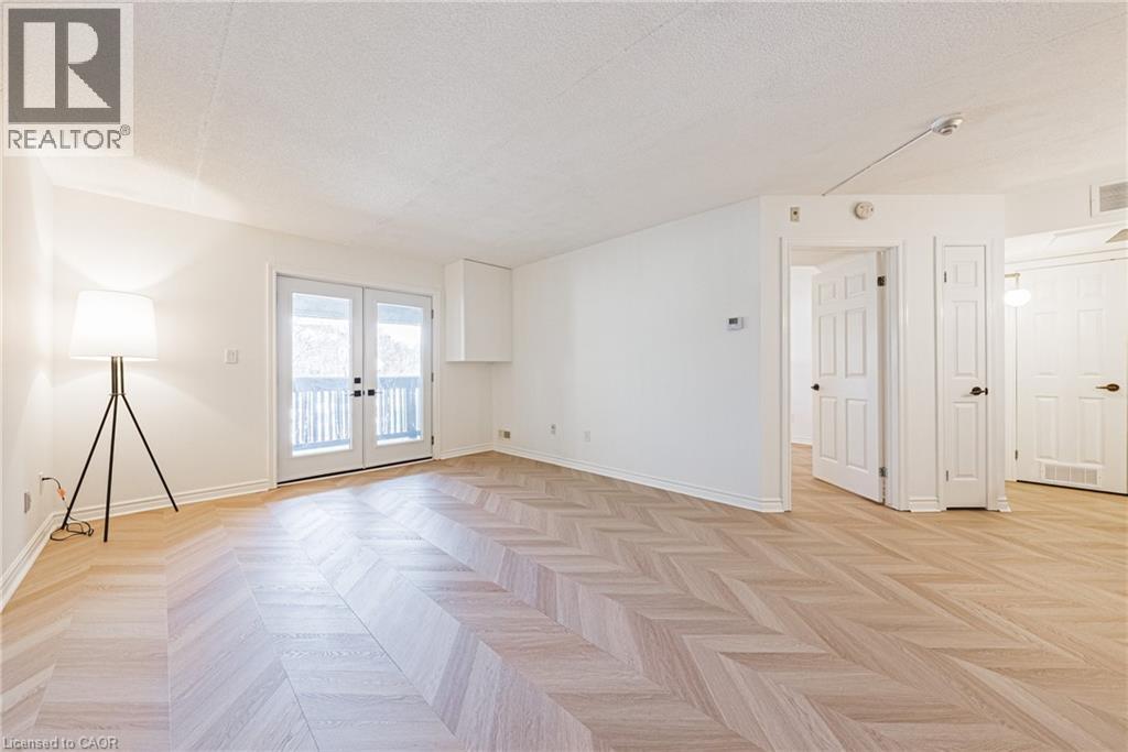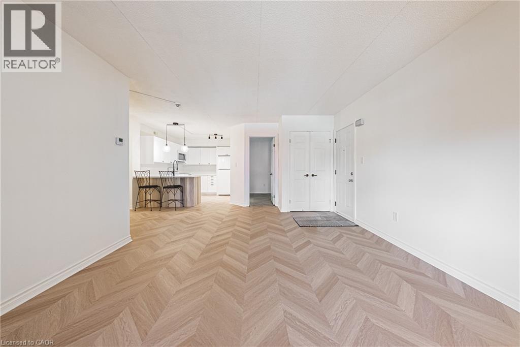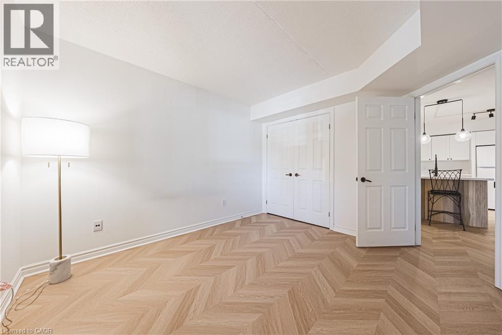 Welcome to this beautifully newly renovated 1 bedroom + DEN condo unit that blends modern finishes with everyday functionality. The bright open-concept layout features all-new chevron flooring, fresh paint, and stylish lighting throughout. The upgraded kitchen offers sleek cabinetry and plenty of counter space — perfect for cooking and entertaining. The bedroom provides a comfortable retreat with ample closet storage, while the versatile den is ideal for a home office, guest area, or reading nook. Enjoy an inviting cozy living room that flows seamlessly to your private balcony — perfect for relaxing and unwinding after a long day. This unit includes two parking spaces, in-suite laundry, and is located within walking distance to all amenities. Don't miss your opportunity to live in a beautiful bright unit in the sought after Headon Forest neighbourhood! (id:24334)