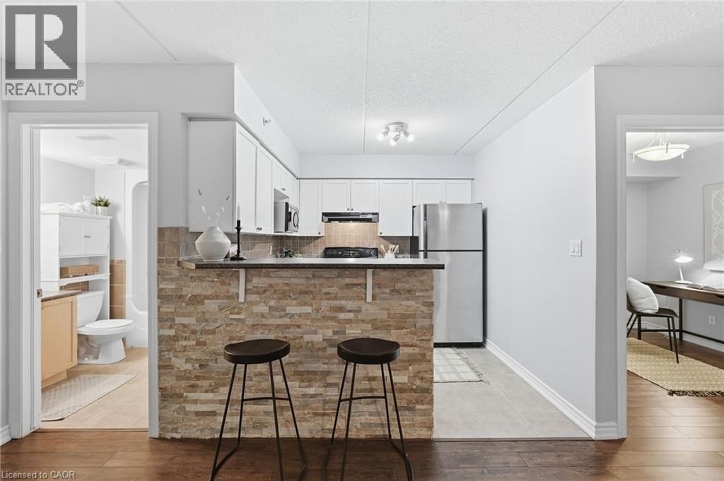 $458.38 MonthlyStylish, low-maintenance living in the heart of Burlington! This modern 1 bedroom plus den, 1 bathroom unit is the perfect fit for young professionals looking to own their first home or retirees seeking comfort, convenience, and lifestyle. Located just minutes from the QEW and Hwy 407, commuting is a breeze while being steps to restaurants, cafes, and all the shopping you need means keeping your time spent in the car to a minimum. Bright kitchen cabinetry and sleek laminate flooring throughout the main living space make this space fresh and move in ready. The spacious den provides an ideal work from home space or hobby room. Other conveniences include in-suite laundry, 1 underground parking space, and 1 locker for extra storage. Plus an additional bonus storage room can be found on the balcony for added convenience. Plenty of visitor parking means friends and family can drop by anytime. Residents also enjoy access to a fitness centre and party room, ideal for socializing or staying active without ever leaving home. Whether you’re working downtown, hybrid, or remote, this is a smart move in a fantastic location! Don't miss this opportunity to simplify your life without sacrificing style, comfort, or location! (id:24334)