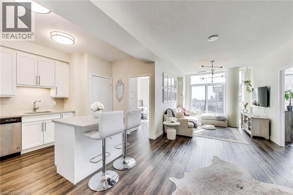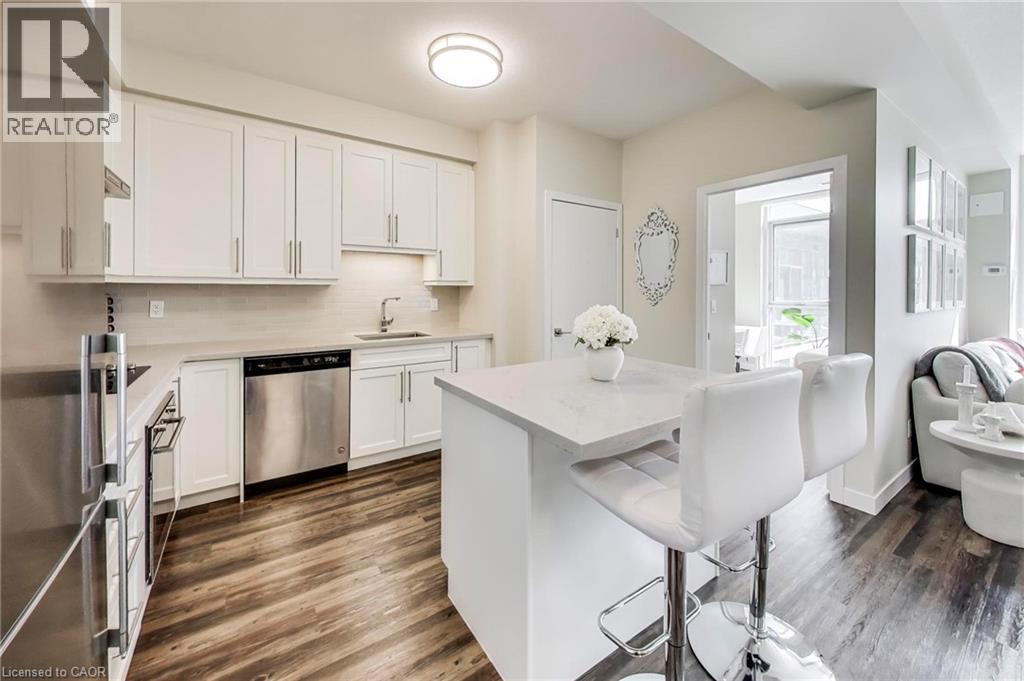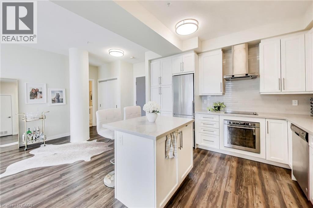 Situated in the highly desirable Paradigm Condominiums, this bright and spacious 2-bedroom, 2-bathroom suite offers a stylish open-concept layout with a sunny south-facing exposure and beautiful views of the lake. The unit features 9-foot ceilings, modern laminate flooring, and an upgraded kitchen complete with elegant cabinetry, a large island, quartz countertops, stainless steel appliances, and a tasteful backsplash. In-suite laundry adds everyday convenience. Residents enjoy access to some of the building’s top-tier amenities, including 24-hour security, a rooftop terrace and party rooms, indoor pool, fully equipped fitness centre, games room, basketball court, outdoor recreation space, BBQ area, and ample visitor parking. Ideally located for commuters, the building is just steps from Burlington GO Station and minutes to downtown Burlington, the waterfront along Lake Ontario, restaurants, grocery stores, community amenities, and provides quick access to major highways. (id:24334)
