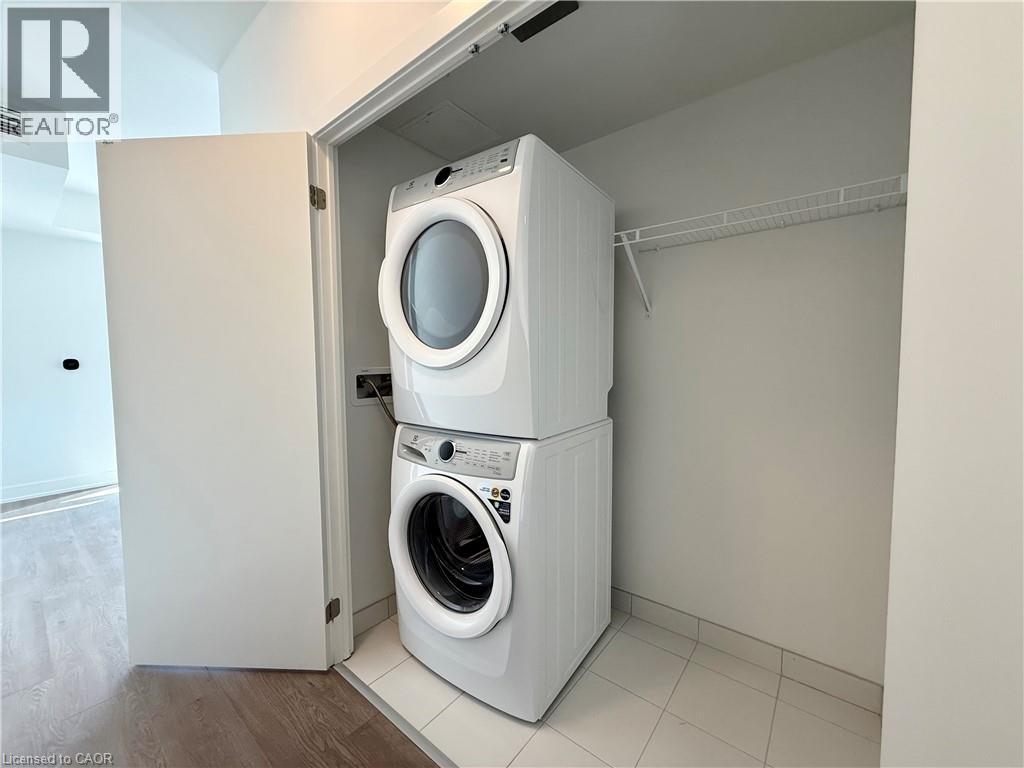 Location, location, location. Be the first to occupy this state of the art unit in a brand new state of the art building! Prime downtown Burlington local. Walk to shopping, restaurants, lakefront park, pier, art gallery, library, hospital, preforming arts centre, walking trails and transit. This BRAND NEW 2 bedroom, 2 bath suite offers sunlit rooms in new luxurious building with plenty of amenities. In suite laundry facilities. Sleek kitchen with quartz counters and centre island. Balcony with southern exposure. Window coverings included. Fob locking system on doors. Virtual valet at front lobby with concierge/security services. Amenities include, pet wash, roofs top terrace with BBQ's, loft lounge, exercise room with an array of equipment, yoga room. 1 underground parking space with EV charger, 1 storage locker. (id:24334)