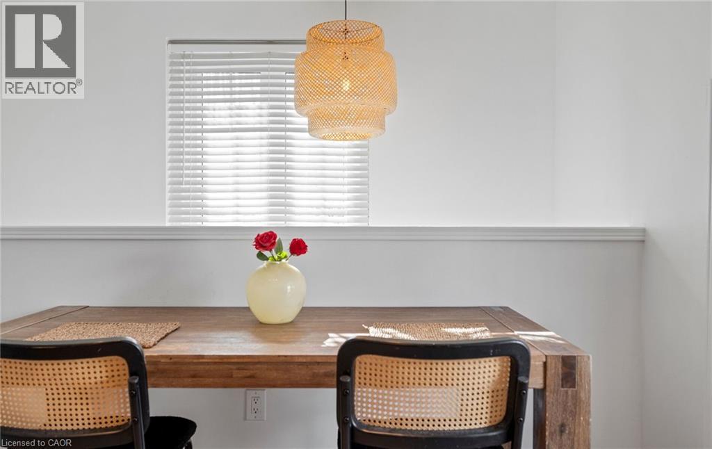 $402.90 MonthlyBright and spacious end-unit townhome in the highly sought-after Head on Forest community offering approx. 1,130 sq. ft. of well-designed living space. Open-concept main floor features an eat-in kitchen with large picture window, flowing into a sun-filled living room with cozy fireplace and patio doors leading to a covered terrace with BBQ space. Ideal for everyday living and entertaining.(2000 characters)Generous primary bedroom with ensuite privileges, updated bathroom, hardwood flooring, crown mouldings, and new washer & dryer. Freshly painted with new kitchen countertop and sink. Third bedroom newly reframed and sound-proofed. Recent mechanical updates include Central A/C (2023), furnace (2014), humidifier (2013) and shingles (2019). One surface driveway parking spot included. Quiet, family-friendly complex steps to top-rated schools including French Immersion, parks, shopping, transit, and all daily amenities. Excellent value in a mature Burlington neighbourhood. Ideal for first-time buyers, downsizers, or investors (id:24334)