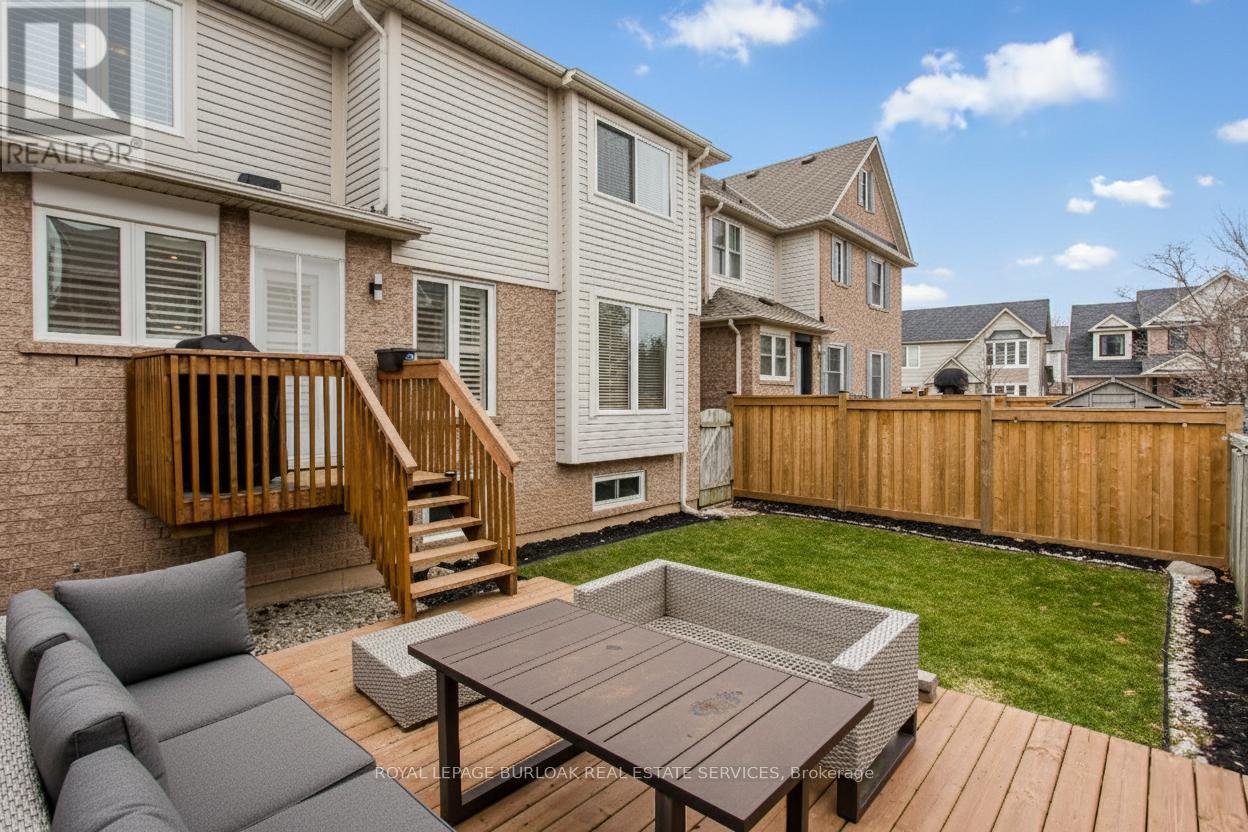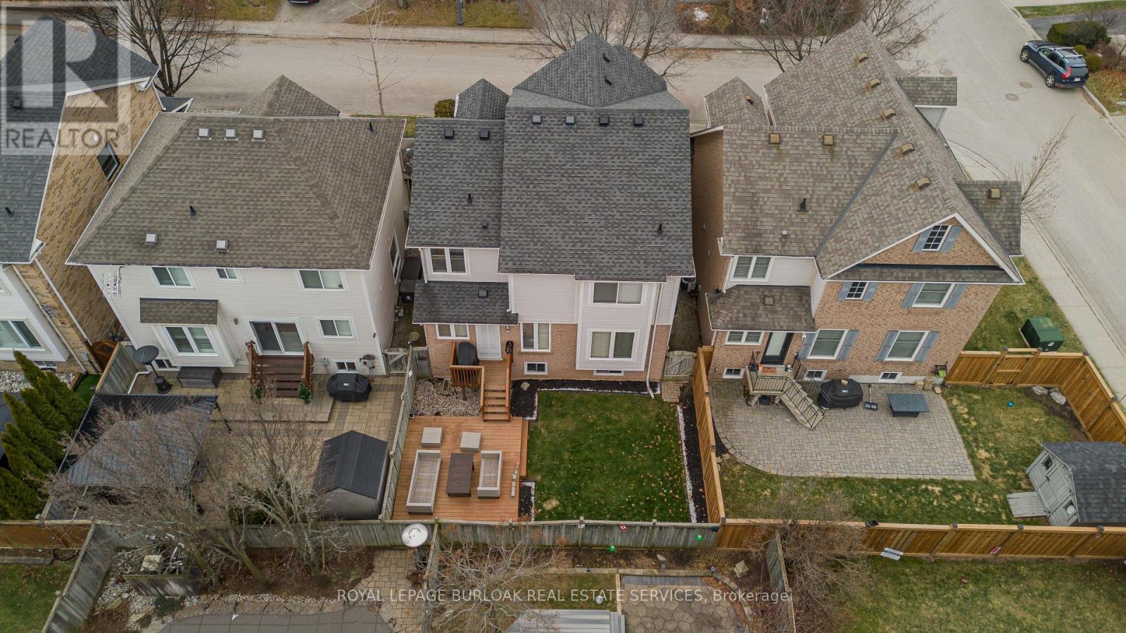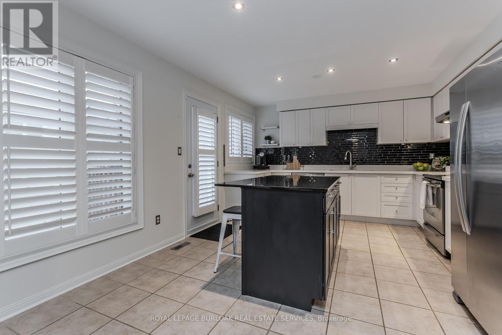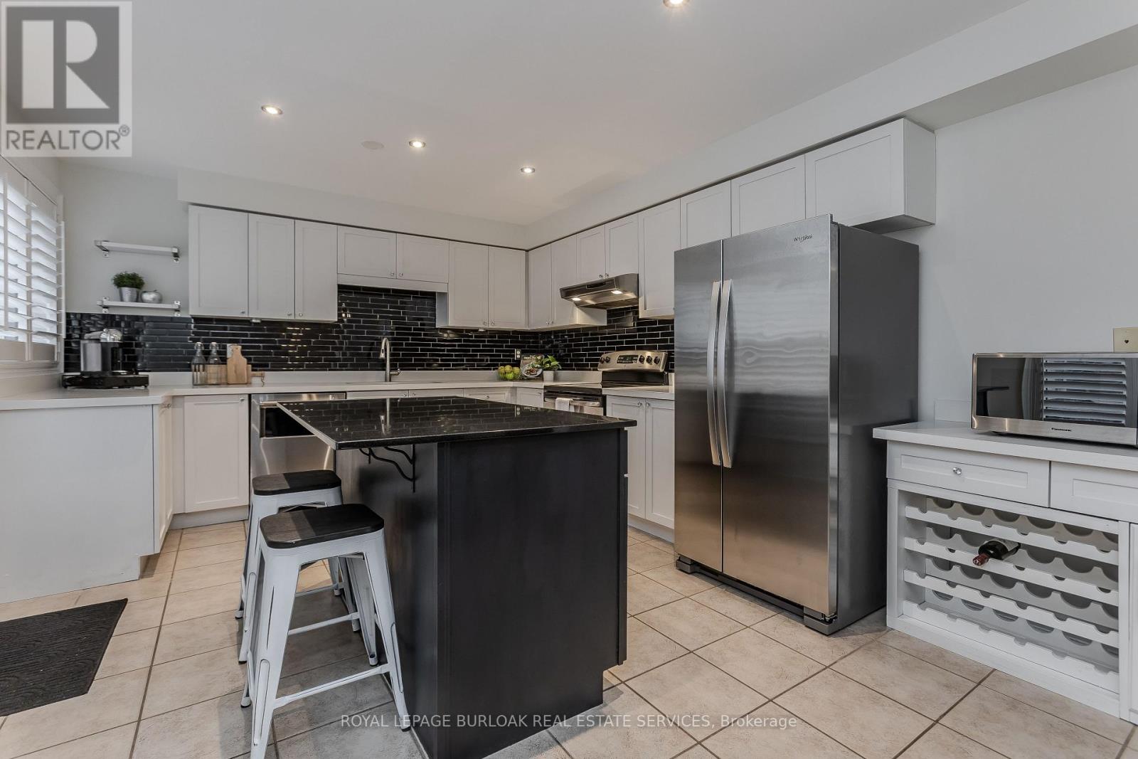 Offering 2591sf of living space, this beautifully maintained two-storey home delivers an exceptional lifestyle opportunity for families in one of Burlington's most sought-after communities. Located in the heart of the Orchard neighbourhood, this home places everyday conveniences at your doorstep. Walk to schools, Bronte Provincial Park, shopping, dining, transit, and more, all in a quiet, family-friendly setting. Curb appeal welcomes you with mature trees, perennial gardens, an interlock walkway, and a covered front porch - the perfect spot to enjoy your morning coffee. An upgraded front door (2023) adds a fresh, modern touch. Inside, the main floor features a warm and inviting open-concept layout with hardwood flooring throughout and fresh paint. The bright living room with bay window flows seamlessly into the dining area, creating an ideal space for gatherings. The family room offers a cozy gas fireplace, large window, and built-in wall shelving. At the heart of the home, the modern kitchen impresses with quartz countertops, black subway tile backsplash, island with breakfast bar, built-in wine storage, premium stainless steel appliances, ample cabinetry, and a walkout to the rear deck through an updated door (2023). A convenient powder room completes the level. Upstairs, luxury vinyl floors flow throughout. The spacious primary retreat is filled with natural light and features a walk-in closet and a 4-piece ensuite with soaker tub, walk-in shower, and oversized quartz vanity. Two additional well-sized bedrooms and a 4-piece main bath offer comfortable accommodations for the whole family. The lower level provides a finished rec room, egress windows (2023), and plenty of opportunity to customize additional living space. Out back, the fully fenced yard is designed for family living, with a large wooden deck ideal for BBQs, green space for kids and pets, and plenty of garden beds - a private outdoor retreat to enjoy year-round. (id:24334)