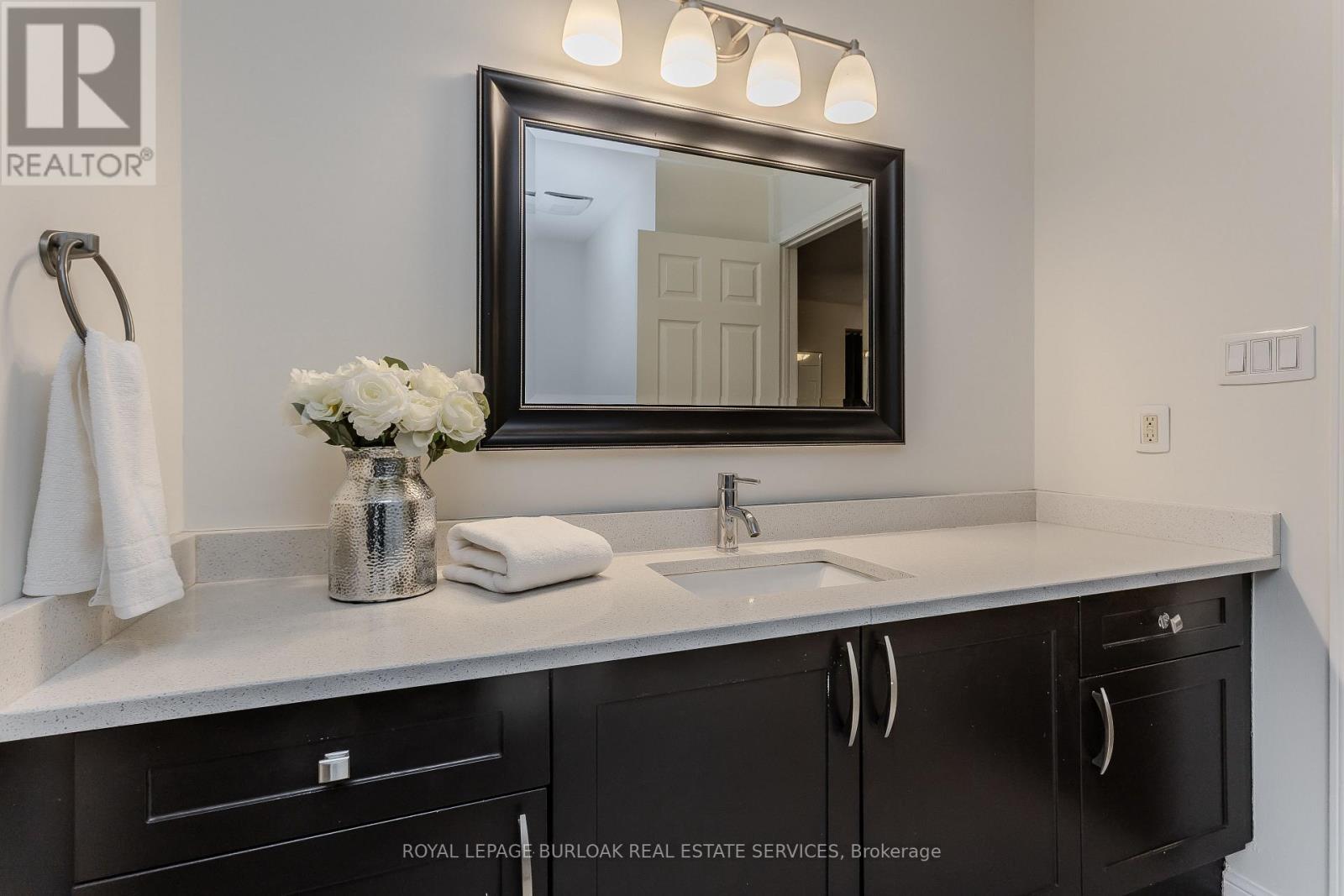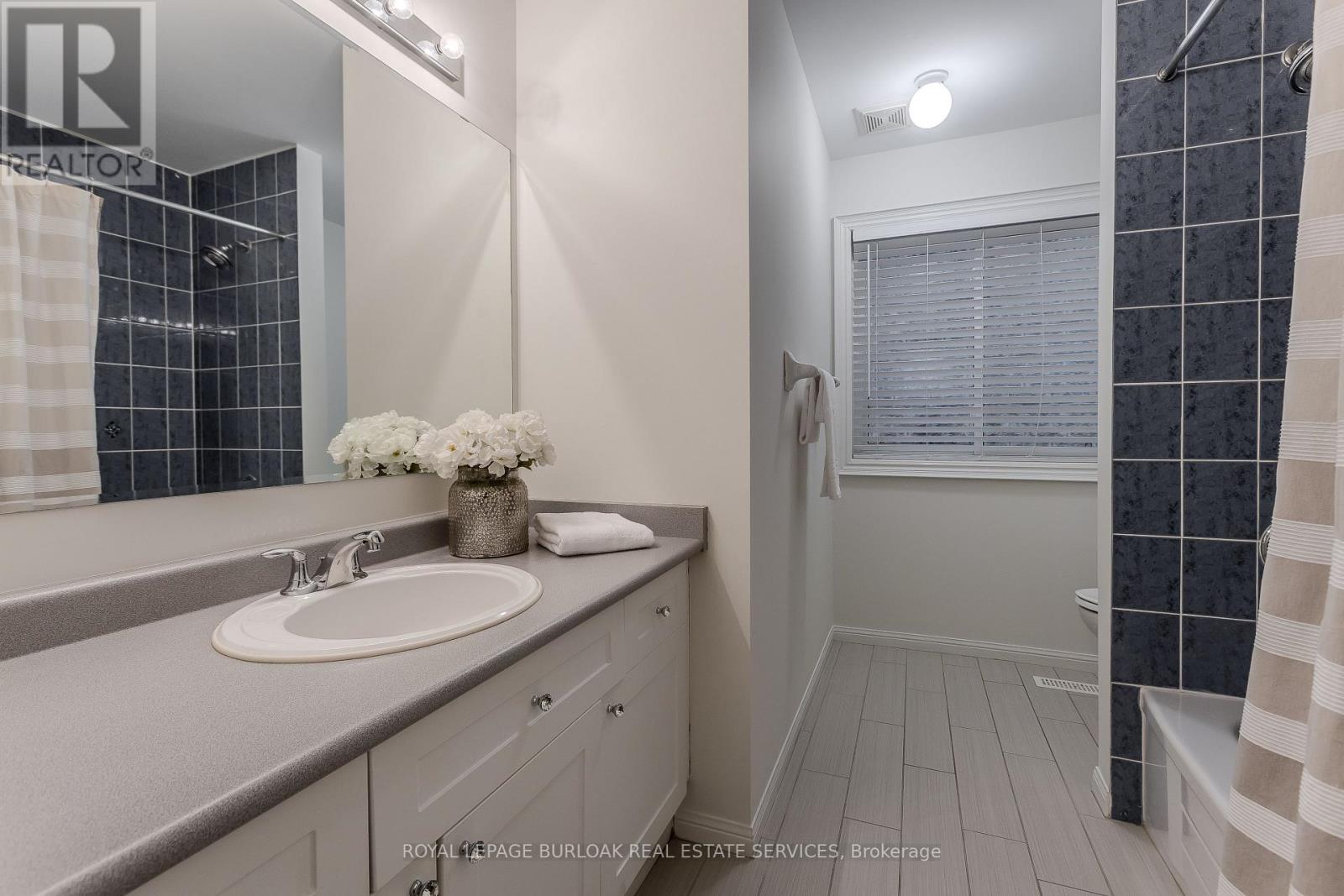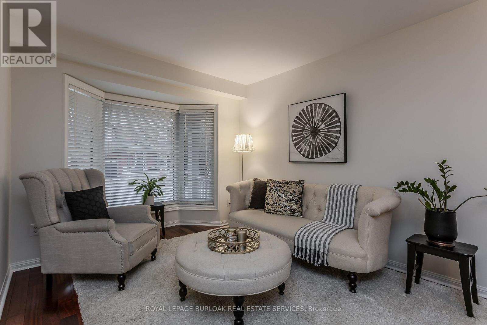Offering 2591sf of living space, this beautifully maintained two-storey home delivers an exceptional lifestyle opportunity for families in one of Burlington's most sought-after communities. Located in the heart of the Orchard neighbourhood, this home places everyday conveniences at your doorstep. Walk to schools, Bronte Provincial Park, shopping, dining, transit, and more, all in a quiet, family-friendly setting. Curb appeal welcomes you with mature trees, perennial gardens, an interlock walkway, and a covered front porch - the perfect spot to enjoy your morning coffee. An upgraded front door (2023) adds a fresh, modern touch. Inside, the main floor features a warm and inviting open-concept layout with hardwood flooring throughout and fresh paint. The bright living room with bay window flows seamlessly into the dining area, creating an ideal space for gatherings. The family room offers a cozy gas fireplace, large window, and built-in wall shelving. At the heart of the home, the modern kitchen impresses with quartz countertops, black subway tile backsplash, island with breakfast bar, built-in wine storage, premium stainless steel appliances, ample cabinetry, and a walkout to the rear deck through an updated door (2023). A convenient powder room completes the level. Upstairs, luxury vinyl floors flow throughout. The spacious primary retreat is filled with natural light and features a walk-in closet and a 4-piece ensuite with soaker tub, walk-in shower, and oversized quartz vanity. Two additional well-sized bedrooms and a 4-piece main bath offer comfortable accommodations for the whole family. The lower level provides a finished rec room, egress windows (2023), and plenty of opportunity to customize additional living space. Out back, the fully fenced yard is designed for family living, with a large wooden deck ideal for BBQs, green space for kids and pets, and plenty of garden beds - a private outdoor retreat to enjoy year-round. (id:24334)