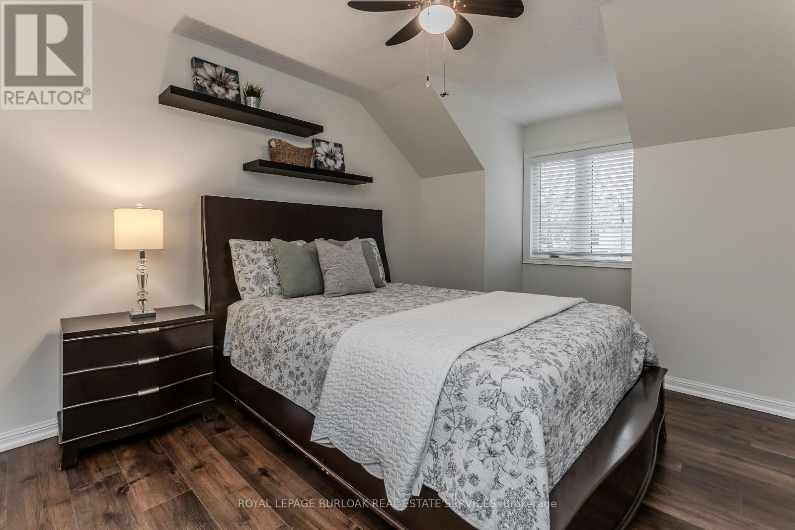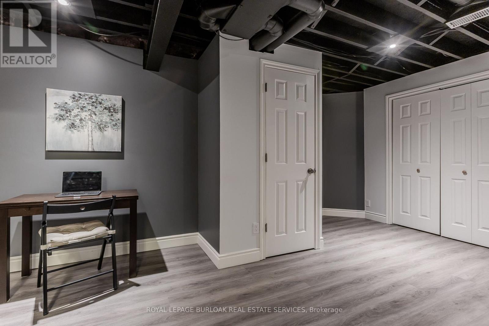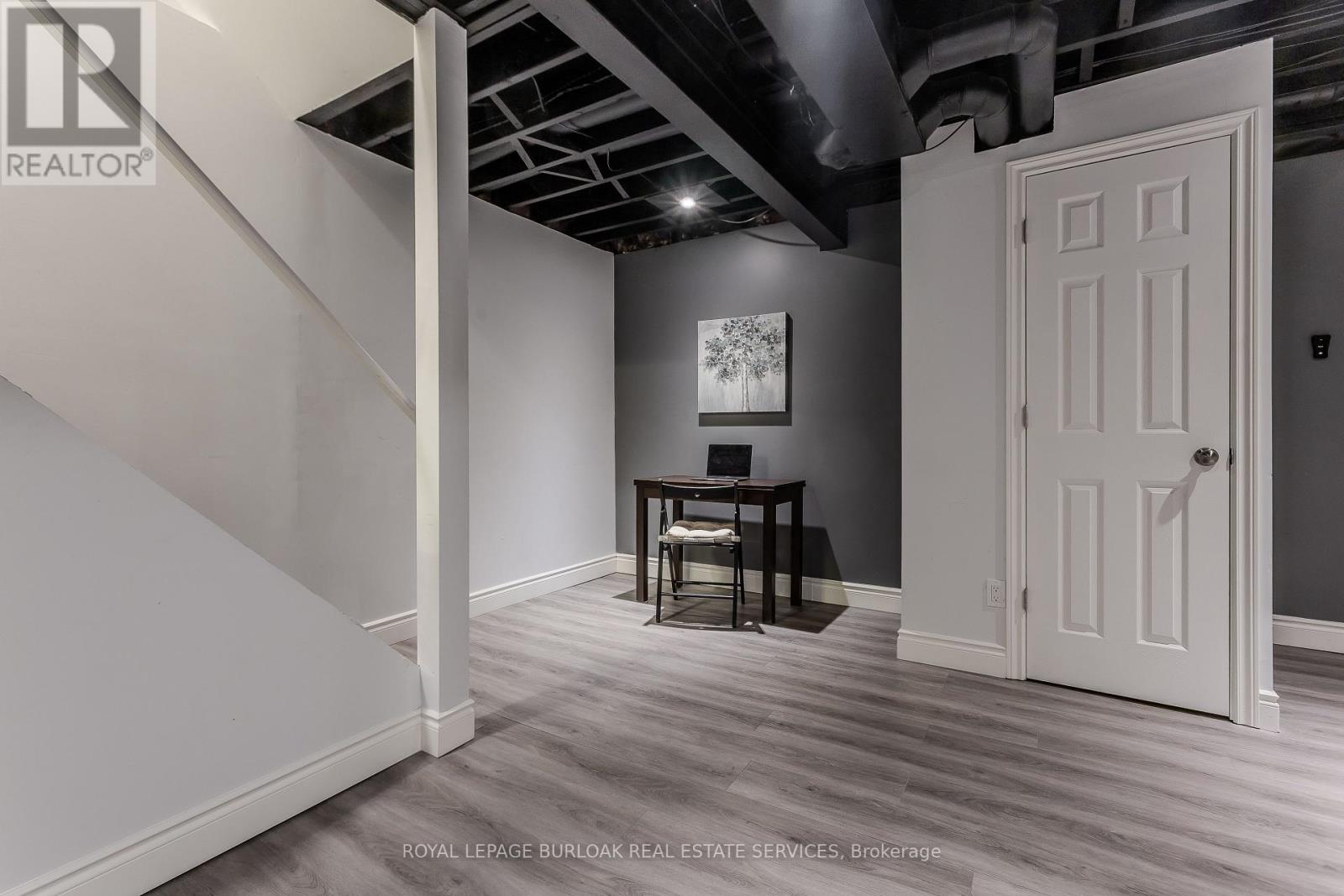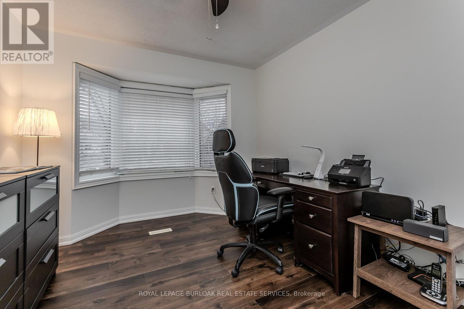 Offering 2591sf of living space, this beautifully maintained two-storey home delivers an exceptional lifestyle opportunity for families in one of Burlington's most sought-after communities. Located in the heart of the Orchard neighbourhood, this home places everyday conveniences at your doorstep. Walk to schools, Bronte Provincial Park, shopping, dining, transit, and more, all in a quiet, family-friendly setting. Curb appeal welcomes you with mature trees, perennial gardens, an interlock walkway, and a covered front porch - the perfect spot to enjoy your morning coffee. An upgraded front door (2023) adds a fresh, modern touch. Inside, the main floor features a warm and inviting open-concept layout with hardwood flooring throughout and fresh paint. The bright living room with bay window flows seamlessly into the dining area, creating an ideal space for gatherings. The family room offers a cozy gas fireplace, large window, and built-in wall shelving. At the heart of the home, the modern kitchen impresses with quartz countertops, black subway tile backsplash, island with breakfast bar, built-in wine storage, premium stainless steel appliances, ample cabinetry, and a walkout to the rear deck through an updated door (2023). A convenient powder room completes the level. Upstairs, luxury vinyl floors flow throughout. The spacious primary retreat is filled with natural light and features a walk-in closet and a 4-piece ensuite with soaker tub, walk-in shower, and oversized quartz vanity. Two additional well-sized bedrooms and a 4-piece main bath offer comfortable accommodations for the whole family. The lower level provides a finished rec room, egress windows (2023), and plenty of opportunity to customize additional living space. Out back, the fully fenced yard is designed for family living, with a large wooden deck ideal for BBQs, green space for kids and pets, and plenty of garden beds - a private outdoor retreat to enjoy year-round. (id:24334)
