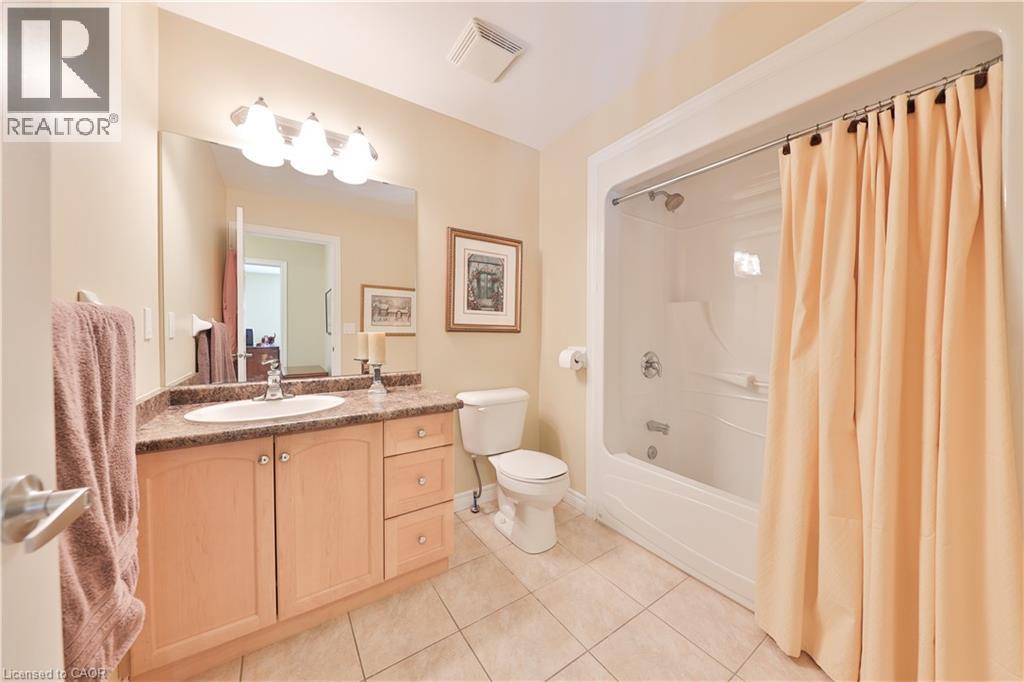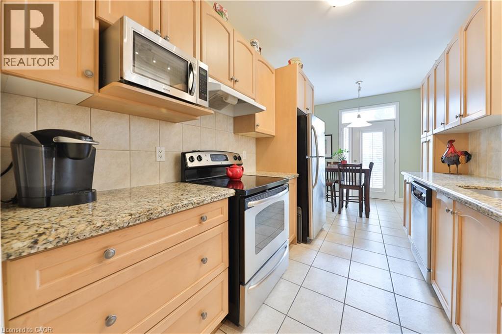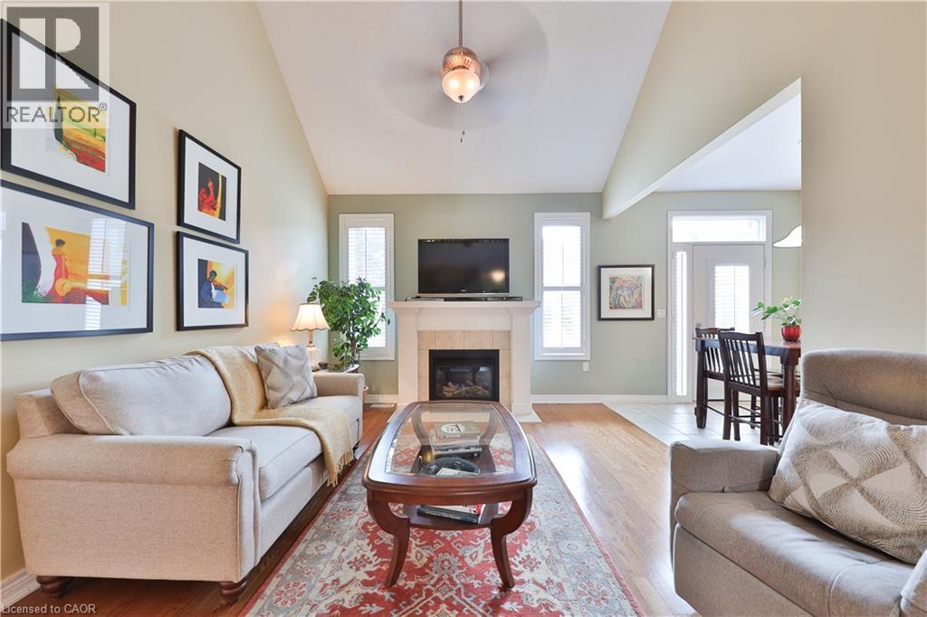 Welcome to this stunning bungaloft townhome, set within one of Burlington’s most desirable lifestyle communities. Combining comfort and convenience, this residence offers total parking for 4 vehicles, a landscaped front yard framed by mature trees, and an automatic garage with inside entry. Its location is ideal—just steps from scenic parks, vibrant shopping, and dining options, all with effortless access to major highways for commuting or weekend getaways. Inside, you’ll find gleaming hardwood floors flowing throughout the main level, creating a warm, cohesive feel. The eat-in kitchen is both stylish and functional, featuring granite countertops, ample cabinetry, a tile backsplash, and stainless steel appliances. A walkout leads directly to your private backyard retreat, perfect for al fresco dining or relaxing with friends. The living room, highlighted by a soaring vaulted ceiling and cozy gas fireplace, offers an inviting space to gather, while the dining room provides a refined setting for entertaining. The main floor primary suite enhances everyday ease with its walk-in closet and 3pc ensuite, making it a perfect haven at day’s end. A versatile home office—easily convertible to an additional bedroom—and a 2pc bathroom complete this level. Upstairs, a bright and airy loft area offers flexible living potential—ideal as a lounge, reading nook, or creative workspace, accompanied by a spacious bedroom with walk-in closet and a full 4pc bathroom. The lower level, currently unfinished, features a bathroom rough-in and unlimited potential to design the space of your dreams, whether that’s a gym, media room, or additional living quarters. The private backyard is a true extension of the home, with an aggregate patio bordered by lush cedars for privacy. A sprinkler system, maintained by the condo, ensures effortless upkeep. This is more than a home—it’s an opportunity to embrace a vibrant, well-connected lifestyle in a fantastic community. (id:24334)