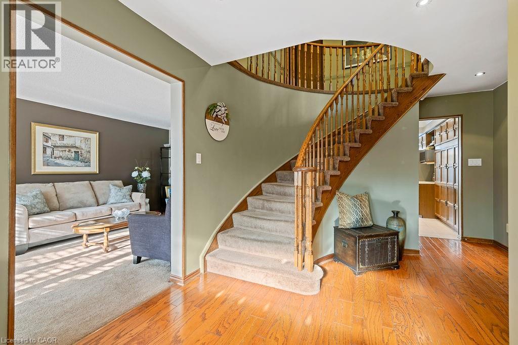 Welcome to 2139 Deerwood Drive, with over 3,200 Sq Ft of total living space this rare Cape Cod–style, one-owner home on a street where properties rarely come to market. Built with a custom three-foot extension across the entire back, this home offers noticeably larger living areas than the standard floor plan. Featuring a classic centre-hall layout, the main floor includes a spacious foyer, formal living and dining rooms, a warm family room with hardwood floors and wood fireplace, full laundry room, and a large eat-in kitchen with walkout to the backyard. Upstairs offers four oversized bedrooms and an unfinished space above the garage, perfect for future expansion. The finished basement adds a large rec room with gas fireplace, office, multipurpose room, plus ample storage, cantina, and workshop. Set on a beautifully landscaped premium pie-shaped lot with gazebo and hot tub, this property also features a welcoming front porch and double car garage. Located in desirable Headon Forest, close to top schools, parks, trails, shopping, and major highways. A spacious, well-built home offering rare size, comfort, and opportunity in a sought-after Burlington community. (id:24334)