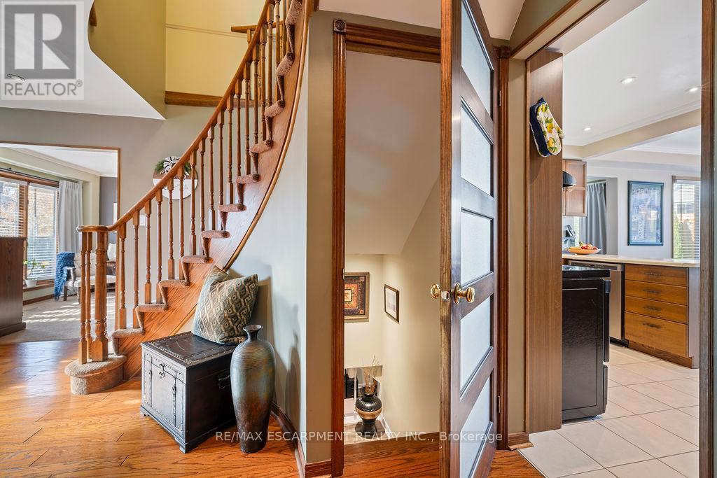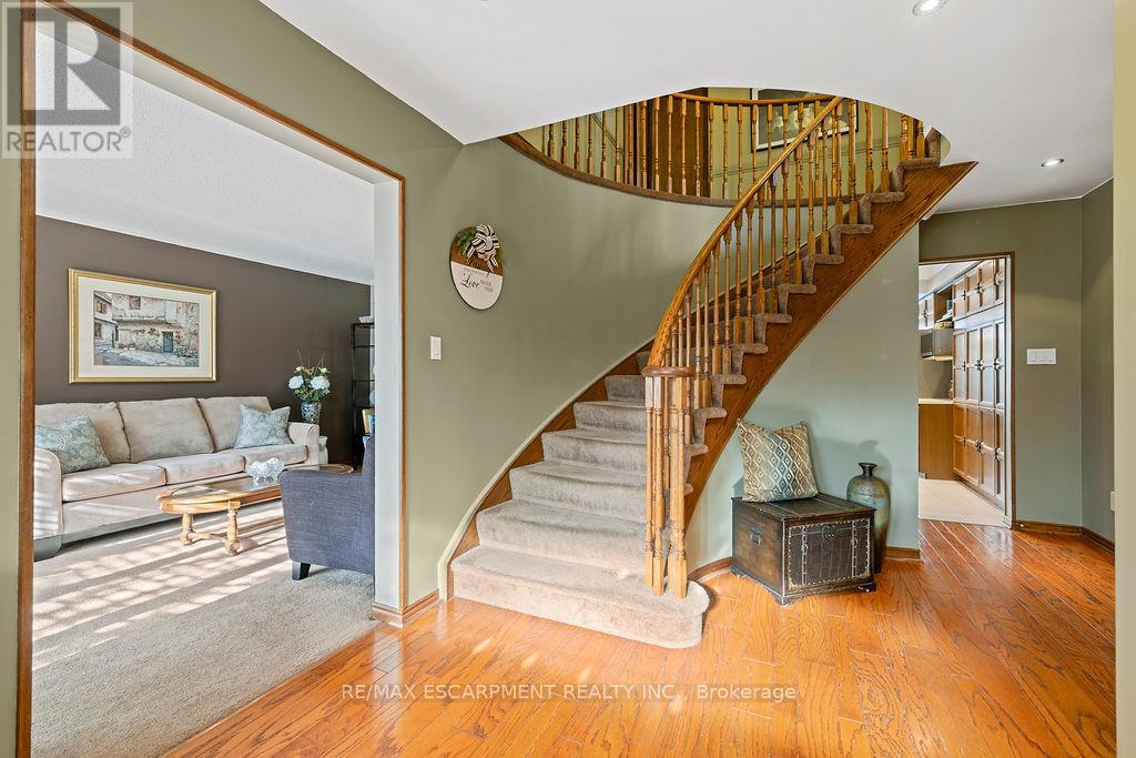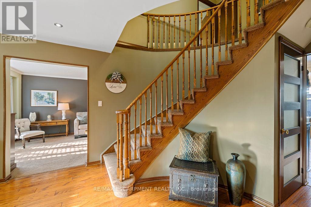 Welcome to 2139 Deerwood Drive, with over 3,200 Sq Ft of total living space this rare Cape Cod-style, one-owner home on a street where properties rarely come to market. Built with a custom three-foot extension across the entire back, this home offers noticeably larger living areas than the standard floor plan. Featuring a classic centre-hall layout, the main floor includes a spacious foyer, formal living and dining rooms, a warm family room with hardwood floors and wood fireplace, full laundry room, and a large eat-in kitchen with walkout to the backyard. Upstairs offers four oversized bedrooms and an unfinished space above the garage, perfect for future expansion. The finished basement adds a large rec room with gas fireplace, office, multipurpose room, plus ample storage, cantina, and workshop. Set on a beautifully landscaped premium pie-shaped lot with gazebo and hot tub, this property also features a welcoming front porch and double car garage. Located in desirable Headon Forest, close to top schools, parks, trails, shopping, and major highways. A spacious, well-built home offering rare size, comfort, and opportunity in a sought-after Burlington community. (id:24334)