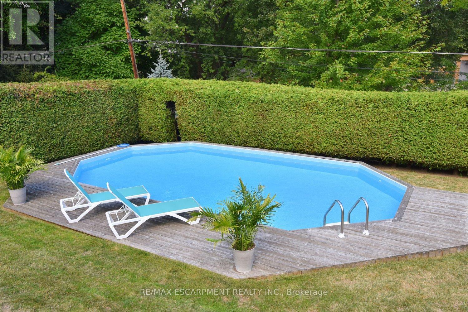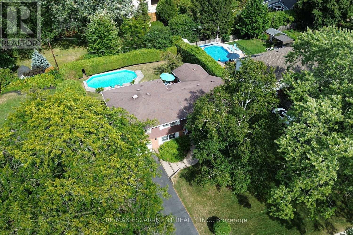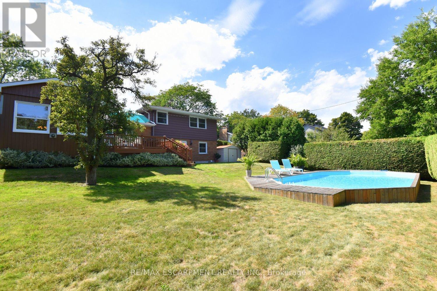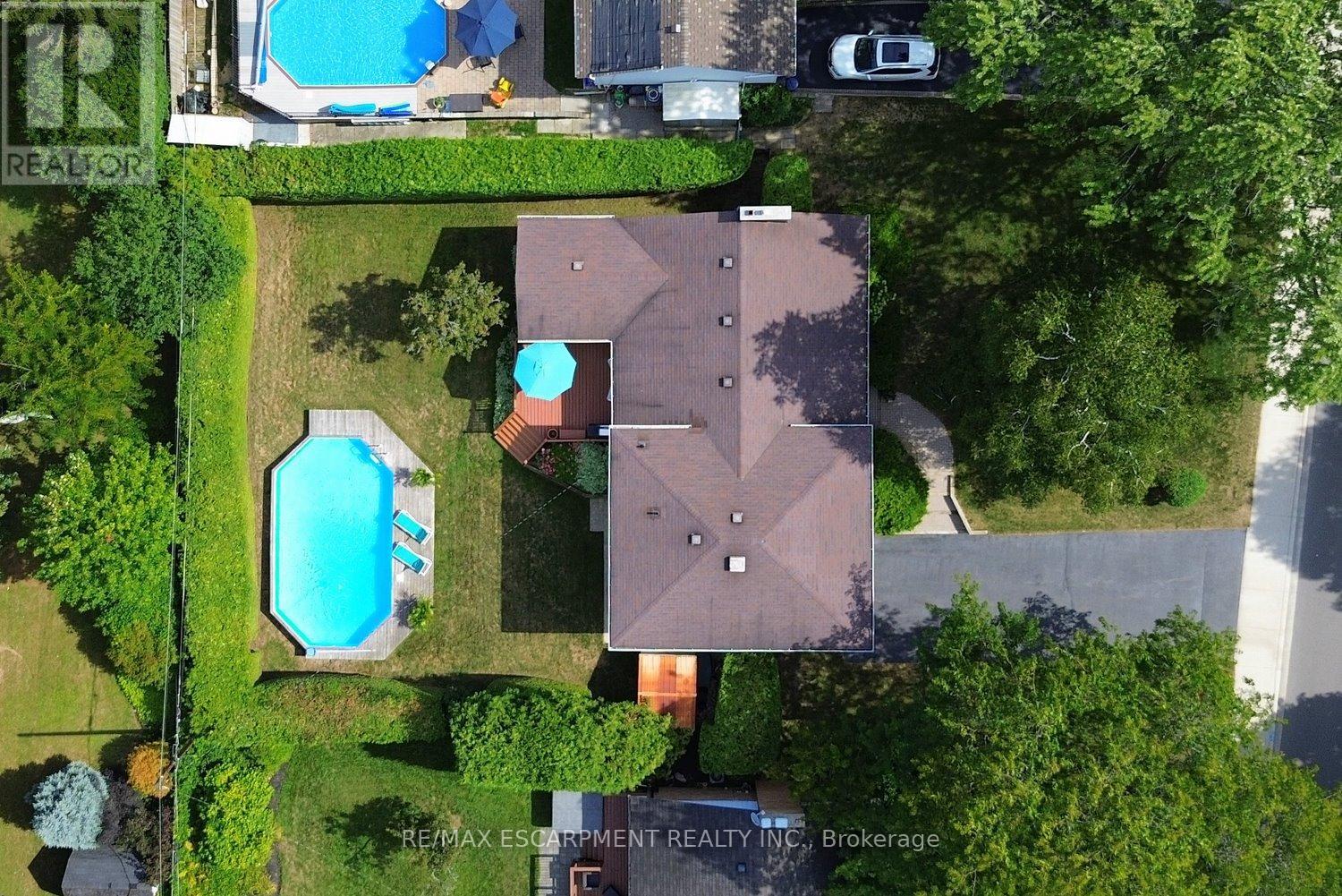 Welcome to desirable southeast Burlington! This detached 4-level side split sits on a beautifully landscaped 80 x 131 lot (just under acre), just steps from Lake Ontario, scenic Lakeshore paths, and local parks. Inside, you'll find 3+1 bedrooms (all above grade), 2 full bathrooms, and a spacious, family-friendly layout with multiple living areas ideal for relaxation or entertaining. The oversized kitchen offers a large window with a park-like view, while a bright sunroom extends the entertaining space of the living and dining rooms and provides a peaceful place to unwind or look out at the gorgeous backyard. The king-sized primary bedroom and generous room sizes throughout add to the homes comfort and functionality. The lower level is on ground-level at the rear of the home, and features a family room, a 4th bedroom/home office as well as convenient laundry combined with the 3 piece bathroom. This level makes this home perfect for multi-generational families, those with accessible needs or those working from home. Enjoy summer days on the spacious cedar deck or in the built-in on-ground pool (liner, heater and pump all recently updated), tucked into a private yard surrounded by plentiful cedars. Additional highlights include engineered hardwood throughout the main & upper levels, two gas fireplaces, newer furnace and air conditioner (2021), a 6-car driveway and an attached single car garage. Situated in a mature, tree-lined area within the coveted Tuck and Nelson school district, this well cared-for home offers the best of Burlington living, just minutes to downtowns shops, dining, and waterfront parks. (id:24334)