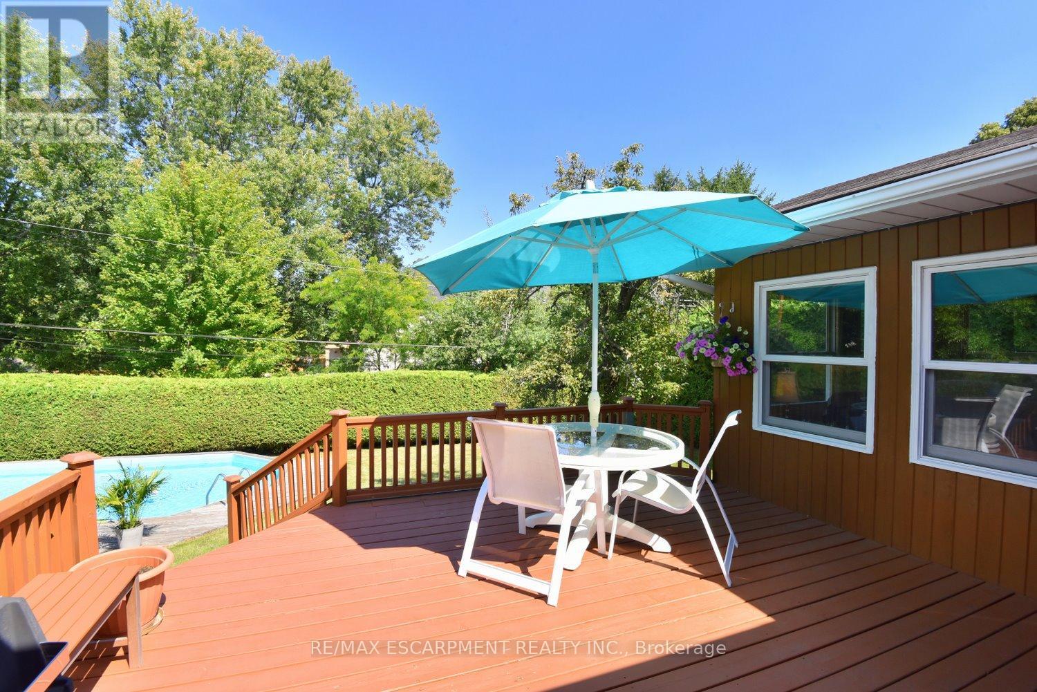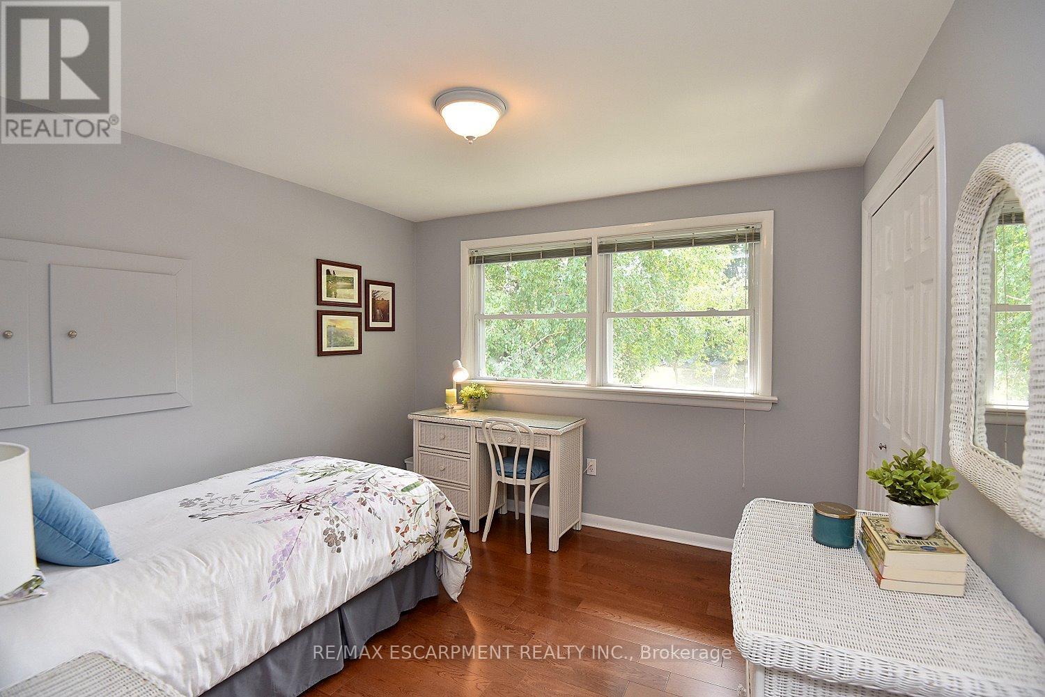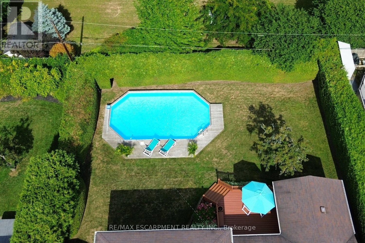 Welcome to desirable southeast Burlington! This detached 4-level side split sits on a beautifully landscaped 80 x 131 lot (just under acre), just steps from Lake Ontario, scenic Lakeshore paths, and local parks. Inside, you'll find 3+1 bedrooms (all above grade), 2 full bathrooms, and a spacious, family-friendly layout with multiple living areas ideal for relaxation or entertaining. The oversized kitchen offers a large window with a park-like view, while a bright sunroom extends the entertaining space of the living and dining rooms and provides a peaceful place to unwind or look out at the gorgeous backyard. The king-sized primary bedroom and generous room sizes throughout add to the homes comfort and functionality. The lower level is on ground-level at the rear of the home, and features a family room, a 4th bedroom/home office as well as convenient laundry combined with the 3 piece bathroom. This level makes this home perfect for multi-generational families, those with accessible needs or those working from home. Enjoy summer days on the spacious cedar deck or in the built-in on-ground pool (liner, heater and pump all recently updated), tucked into a private yard surrounded by plentiful cedars. Additional highlights include engineered hardwood throughout the main & upper levels, two gas fireplaces, newer furnace and air conditioner (2021), a 6-car driveway and an attached single car garage. Situated in a mature, tree-lined area within the coveted Tuck and Nelson school district, this well cared-for home offers the best of Burlington living, just minutes to downtowns shops, dining, and waterfront parks. (id:24334)