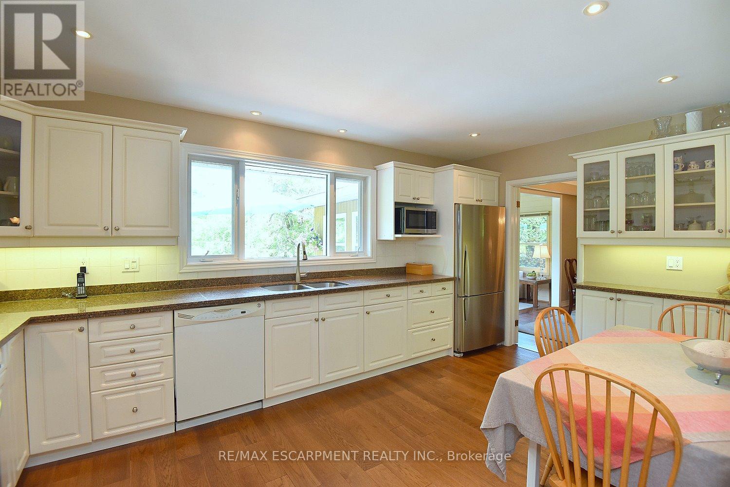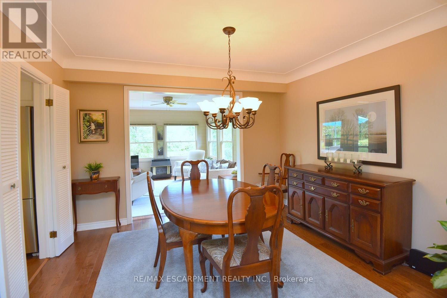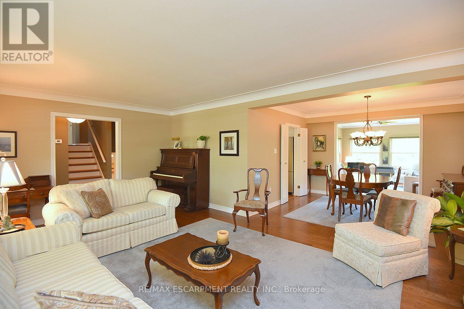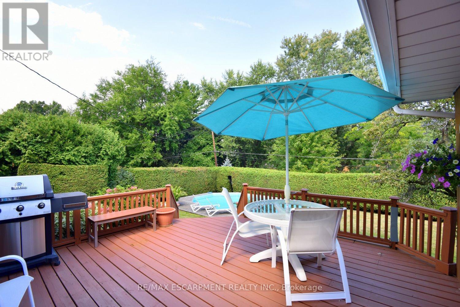Welcome to desirable southeast Burlington! This detached 4-level side split sits on a beautifully landscaped 80 x 131 lot (just under acre), just steps from Lake Ontario, scenic Lakeshore paths, and local parks. Inside, you'll find 3+1 bedrooms (all above grade), 2 full bathrooms, and a spacious, family-friendly layout with multiple living areas ideal for relaxation or entertaining. The oversized kitchen offers a large window with a park-like view, while a bright sunroom extends the entertaining space of the living and dining rooms and provides a peaceful place to unwind or look out at the gorgeous backyard. The king-sized primary bedroom and generous room sizes throughout add to the homes comfort and functionality. The lower level is on ground-level at the rear of the home, and features a family room, a 4th bedroom/home office as well as convenient laundry combined with the 3 piece bathroom. This level makes this home perfect for multi-generational families, those with accessible needs or those working from home. Enjoy summer days on the spacious cedar deck or in the built-in on-ground pool (liner, heater and pump all recently updated), tucked into a private yard surrounded by plentiful cedars. Additional highlights include engineered hardwood throughout the main & upper levels, two gas fireplaces, newer furnace and air conditioner (2021), a 6-car driveway and an attached single car garage. Situated in a mature, tree-lined area within the coveted Tuck and Nelson school district, this well cared-for home offers the best of Burlington living, just minutes to downtowns shops, dining, and waterfront parks. (id:24334)