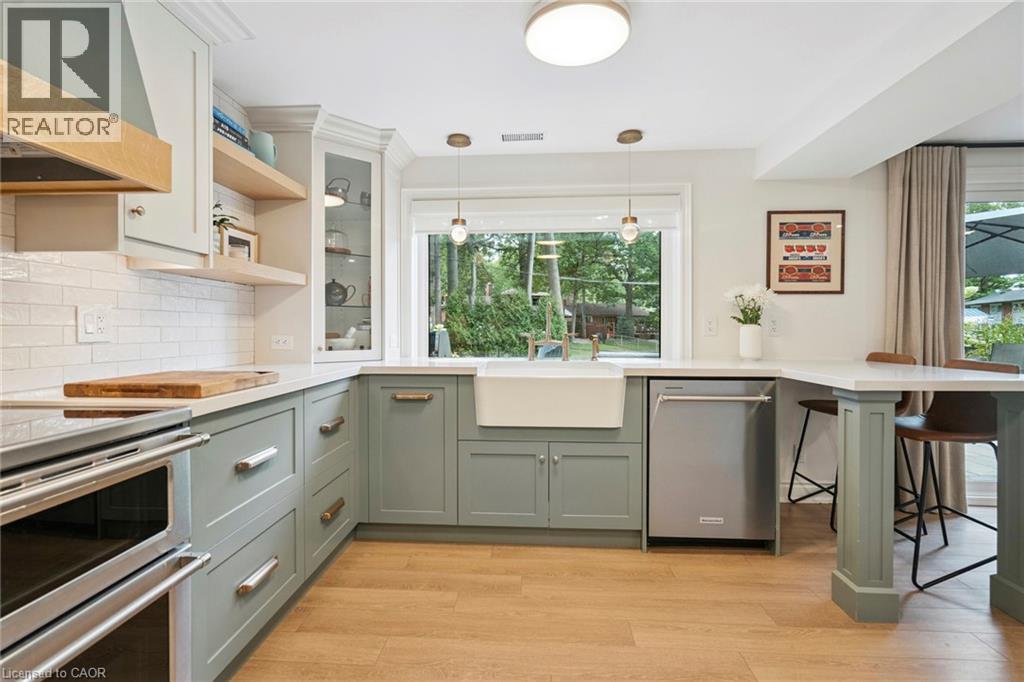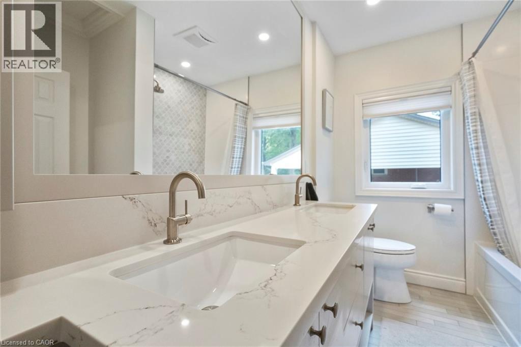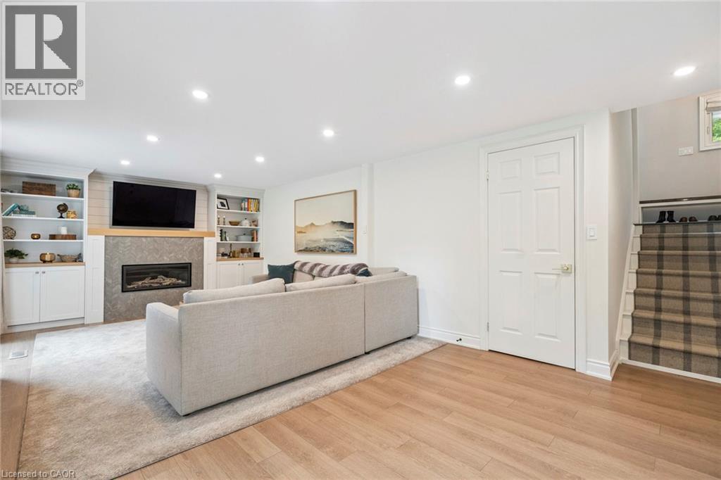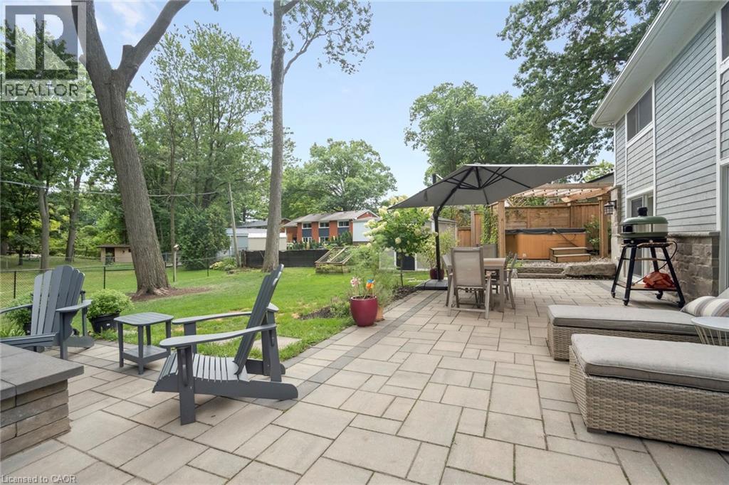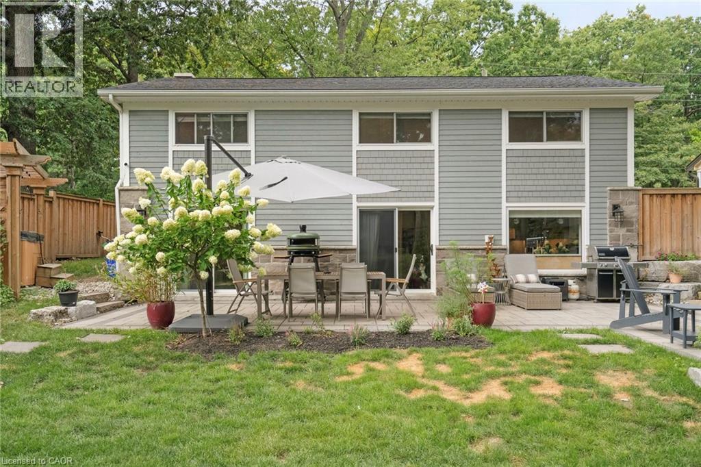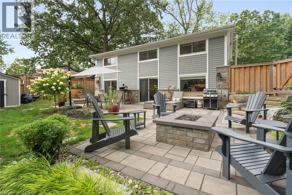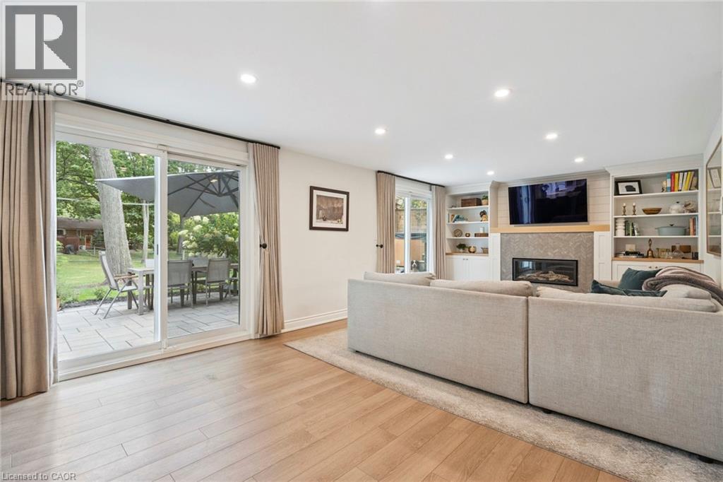 Welcome to this updated family friendly home featuring 3-bedroom, 2 full bathroom home in Burlington’s Mountainside neighbourhood. Set on a generous landscaped lot with mature trees, it’s steps from parks, schools, trails, and the Mountainside recreation centre. The home shows a high pride of ownership throughout with carefully considered details in every corner. The kitchen features a breakfast bar, caesar stone quartz counters, a farmhouse sink, and stainless steel appliances. The main living area offers vaulted ceilings, skylights, and a gas fireplace framed by custom built-ins, while oversized windows fill the space with natural light and garden views. A second fireplace in the lower family room adds another cozy spot to relax or entertain. Throughout the home you’ll find features such as hardwood flooring, renovated bathrooms, and custom touches, including a built-in shower steamer system and heated floors. Outside, the private yard extends your living space with towering trees, a fire pit, hot tub area, and shaded pergola for year-round enjoyment. A home that blends modern updates with warmth and character. Truly shows as well as the photos look. Book your tour today. (id:24334)