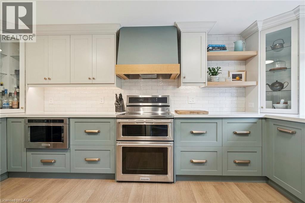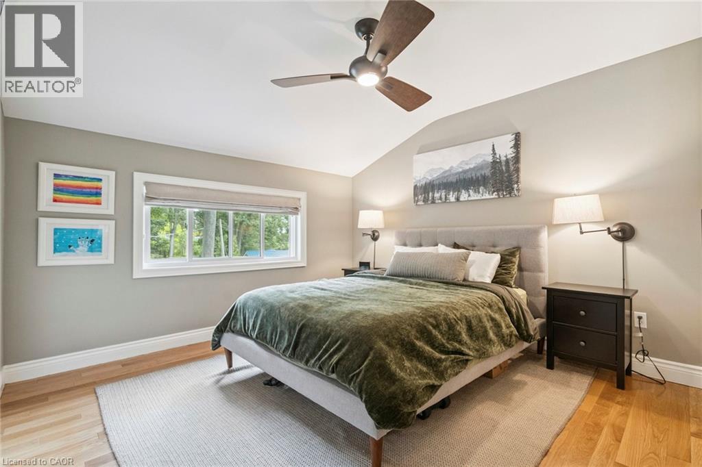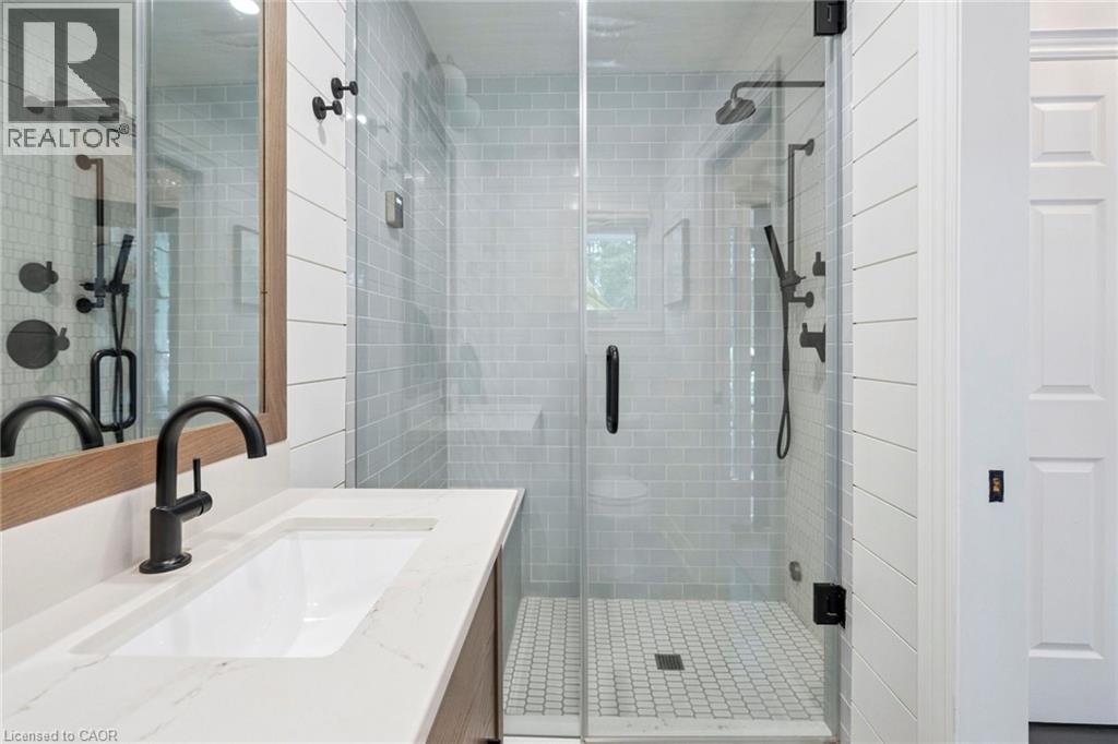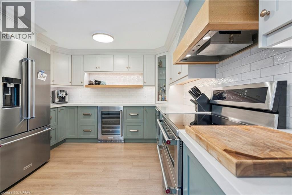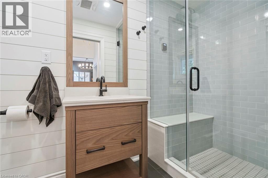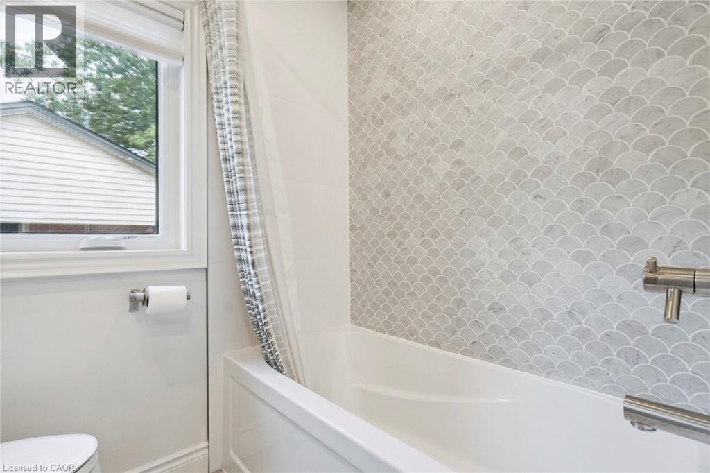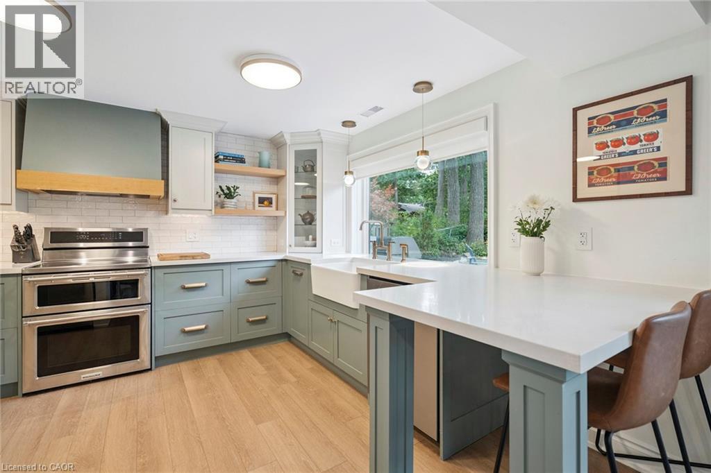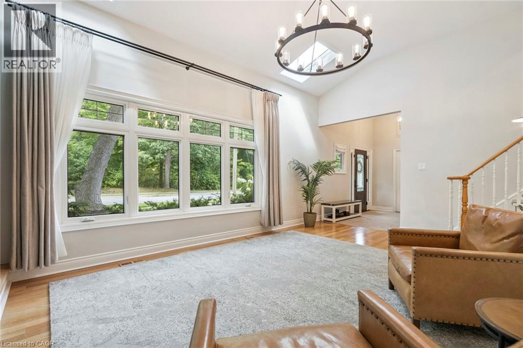 Welcome to this updated family friendly home featuring 3-bedroom, 2 full bathroom home in Burlington’s Mountainside neighbourhood. Set on a generous landscaped lot with mature trees, it’s steps from parks, schools, trails, and the Mountainside recreation centre. The home shows a high pride of ownership throughout with carefully considered details in every corner. The kitchen features a breakfast bar, caesar stone quartz counters, a farmhouse sink, and stainless steel appliances. The main living area offers vaulted ceilings, skylights, and a gas fireplace framed by custom built-ins, while oversized windows fill the space with natural light and garden views. A second fireplace in the lower family room adds another cozy spot to relax or entertain. Throughout the home you’ll find features such as hardwood flooring, renovated bathrooms, and custom touches, including a built-in shower steamer system and heated floors. Outside, the private yard extends your living space with towering trees, a fire pit, hot tub area, and shaded pergola for year-round enjoyment. A home that blends modern updates with warmth and character. Truly shows as well as the photos look. Book your tour today. (id:24334)