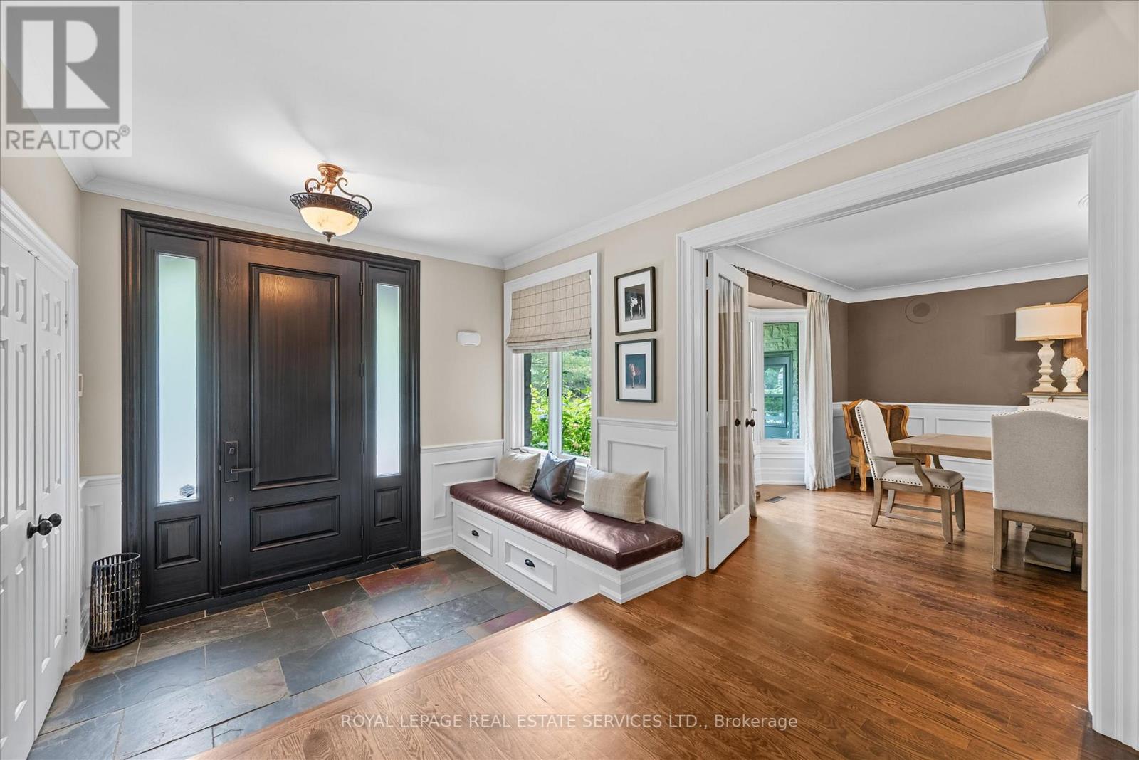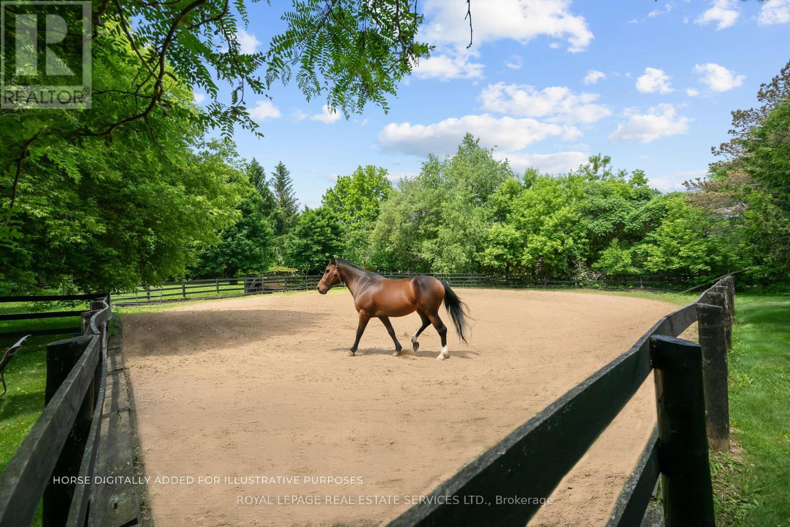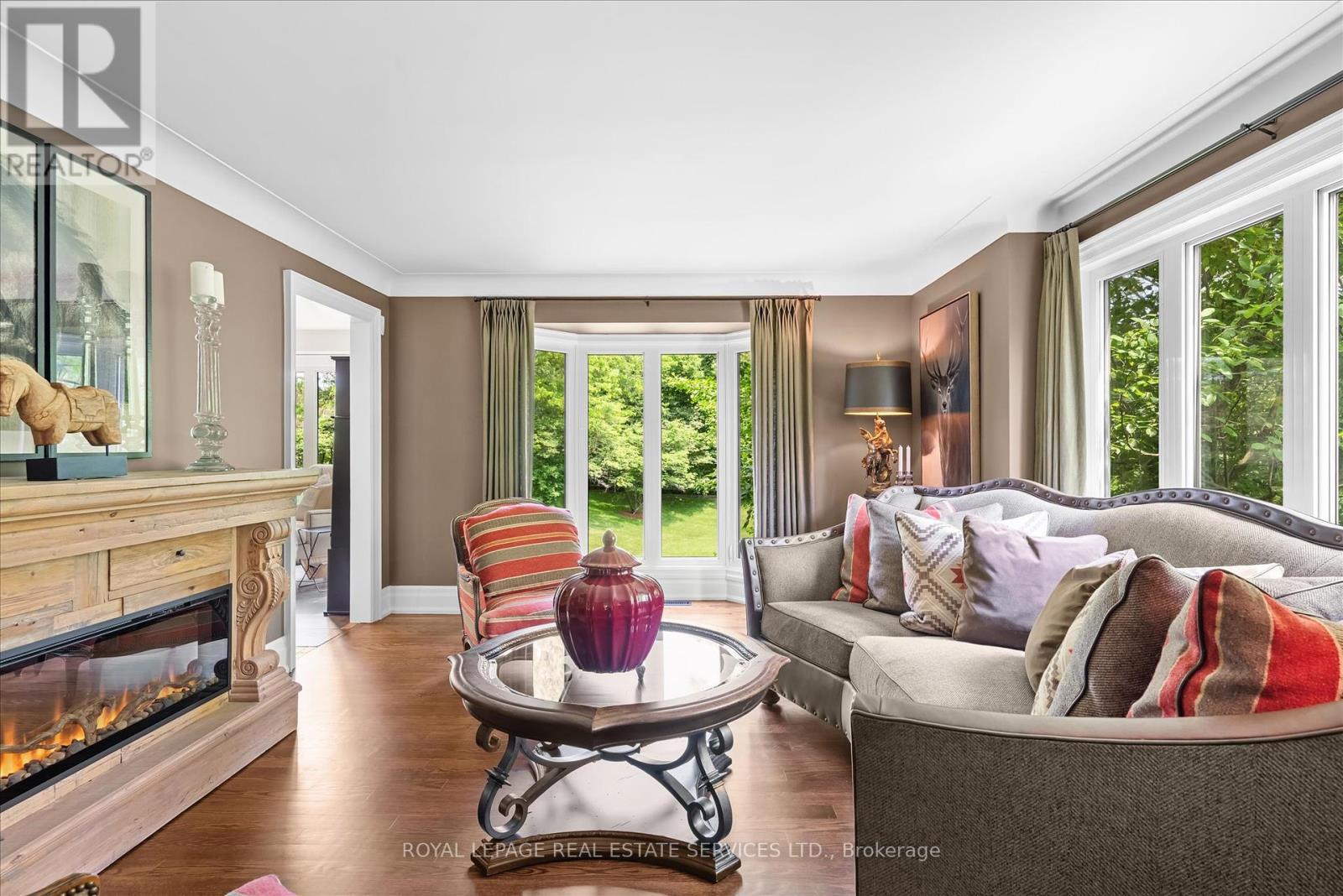 WELCOME TO GREYSTONE! Nestled on 3.5 acres behind a gated winding drive, this timeless Branthaven built estate is one of Kilbride's most distinguished properties. Blending rural sophistication with understated luxury, Greystone offers unparalleled privacy, grandeur, and the refined elegance of a country manor - just minutes from the city. The grounds are truly exceptional, featuring a saltwater Gunite pool, multi-tiered entertaining decks, putting green, and a horse paddock with training circle - delivering an unmatched outdoor lifestyle. Whether enjoying a quiet morning by the pool or hosting summer soirees, this is living on a grand scale. Inside, expansive principal rooms are thoughtfully designed with warmth and quality. A double-sided wood-burning fireplace connects the family room to a chef's dream kitchen, equipped with quartz countertops, Sub-Zero and KitchenAid appliances, and custom cabinetry. The formal dining room, with a bow window, wainscoting, and French doors, is ideal for elegant entertaining. The sunlit primary suite is a true retreat, featuring a wood-burning fireplace, private sitting room, and a spa-inspired six-piece ensuite with double sinks, freestanding tub, curbless shower, and heated floor. Additional bedrooms offer flexibility, including one transformed into a lavish dressing room that can easily be converted back to a bedroom if desired. The finished lower level expands your living space with a wet bar, recreation room, gym, guest bedroom, full bath, and a temperature-controlled wine cellar that is perfect for the connoisseur. Modern systems meet country comfort with municipal gas, drilled well, septic, and numerous updates including windows, roof, fencing, garage heating, and more. An invisible fence, backup generator, and 10-zone irrigation system complete this extraordinary offering. Greystone is more than a home - it's a private estate where luxury and nature exist in perfect harmony. (id:24334)