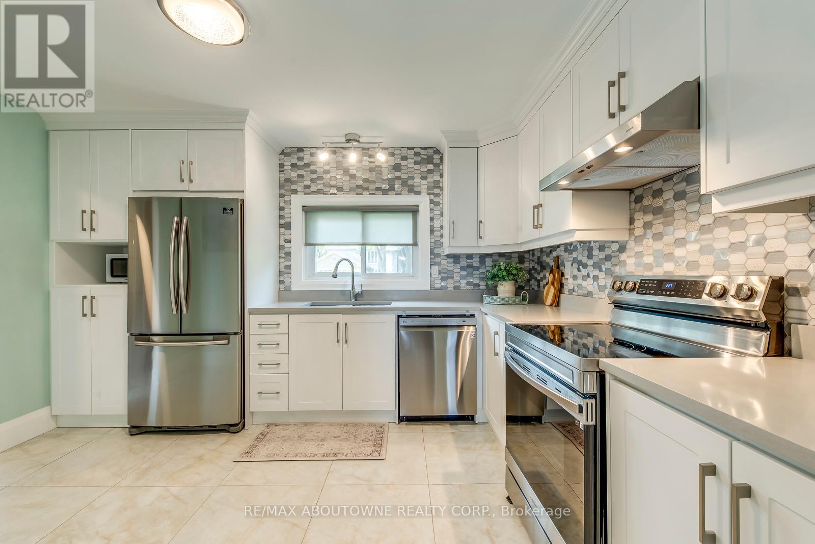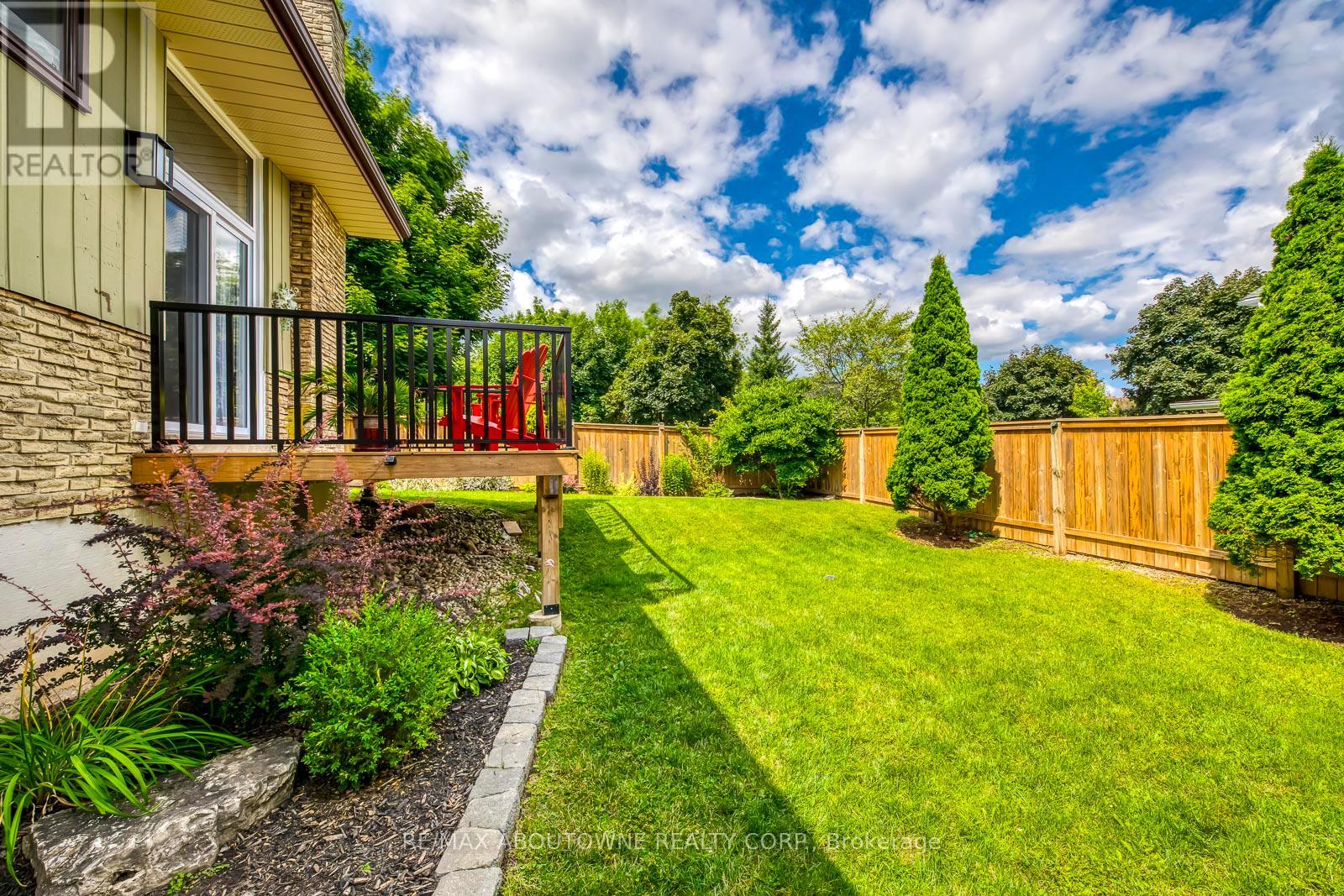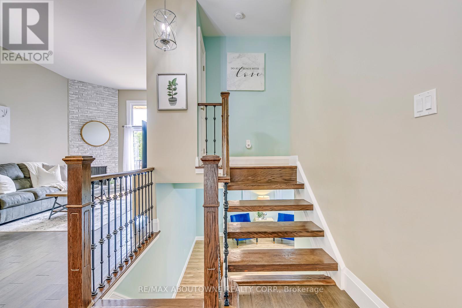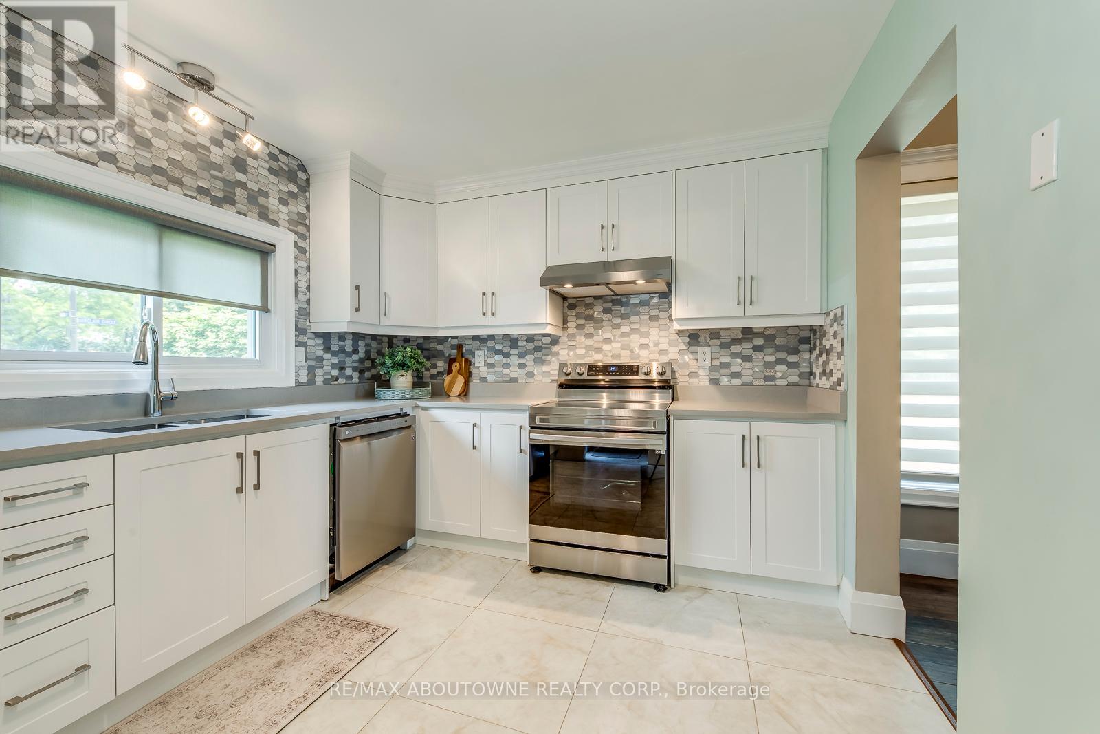 Renovated Family Home on Oversized Lot in Brant Hills. Beautifully updated and set on an oversized corner lot, one of the largest on Sinclair Circle, this fully renovated 3+1 bedroom back split offers the perfect combination of space, style, and location in one of Burlingtons most mature and sought-after neighbourhoods. Located directly across from the park, this sun-filled 4-level home features soaring 11-foot ceilings on the main floor, creating a bright and airy living space. The open-concept living and dining area connects seamlessly to a large, modern eat-in kitchen, ideal for everyday living and entertaining alike. Upstairs, the spacious primary bedroom features a sleek ensuite bathroom, while two additional bedrooms and a stylish main bath complete the level. The walk-out lower level adds excellent versatility with a generous family/media room, fourth bedroom, two-piece bath, and an oversized storage room with potential for a home gym or workshop. A double-car garage and mature landscaping add curb appeal and function. Set in a welcoming, community-focused neighbourhood with top-rated schools, parks, trails, and convenient access to shopping, transit, and major highways. This is a fantastic opportunity to own a move-in-ready home on a standout lot in the heart of Brant Hills. (id:24334)