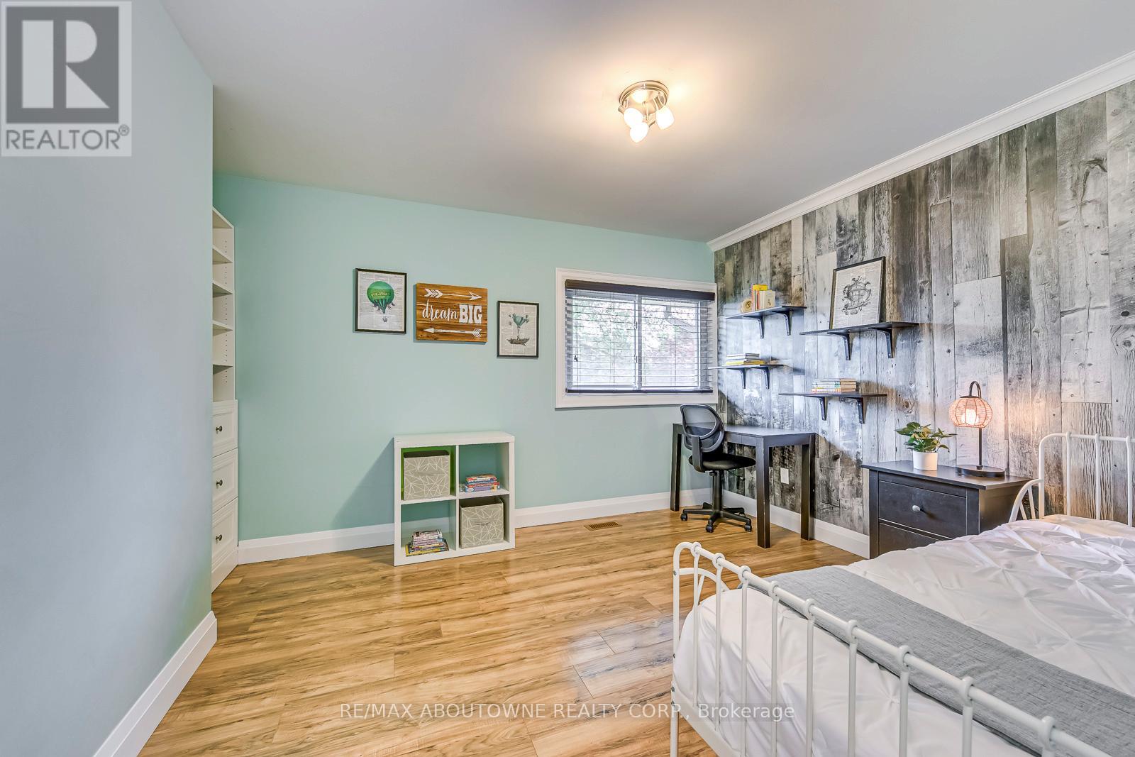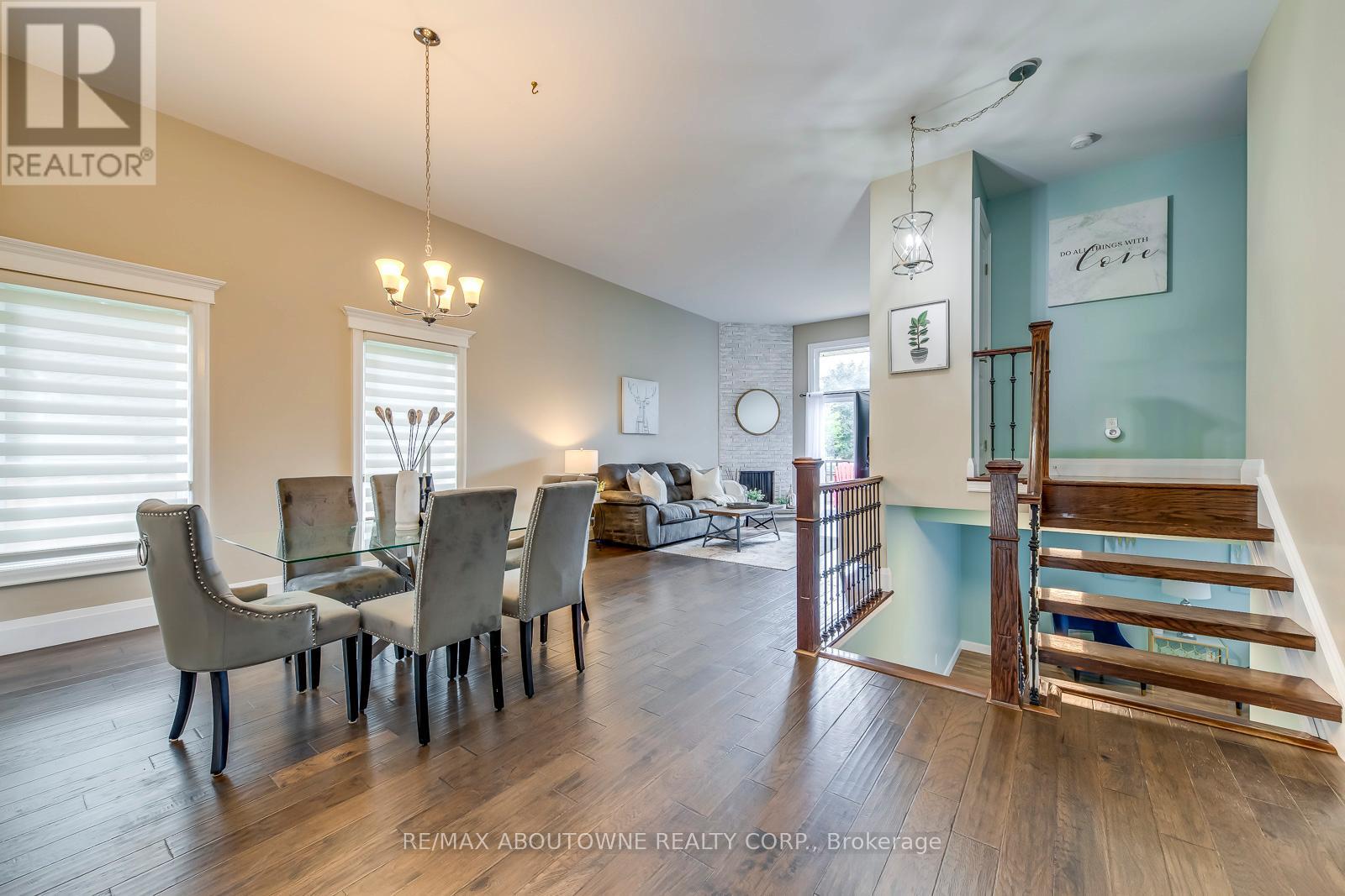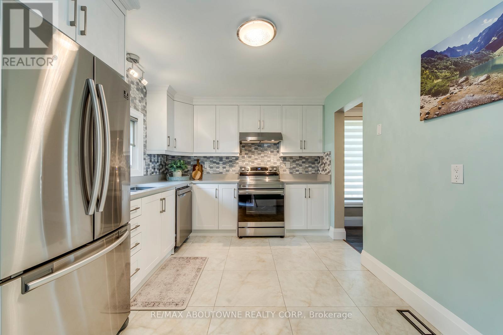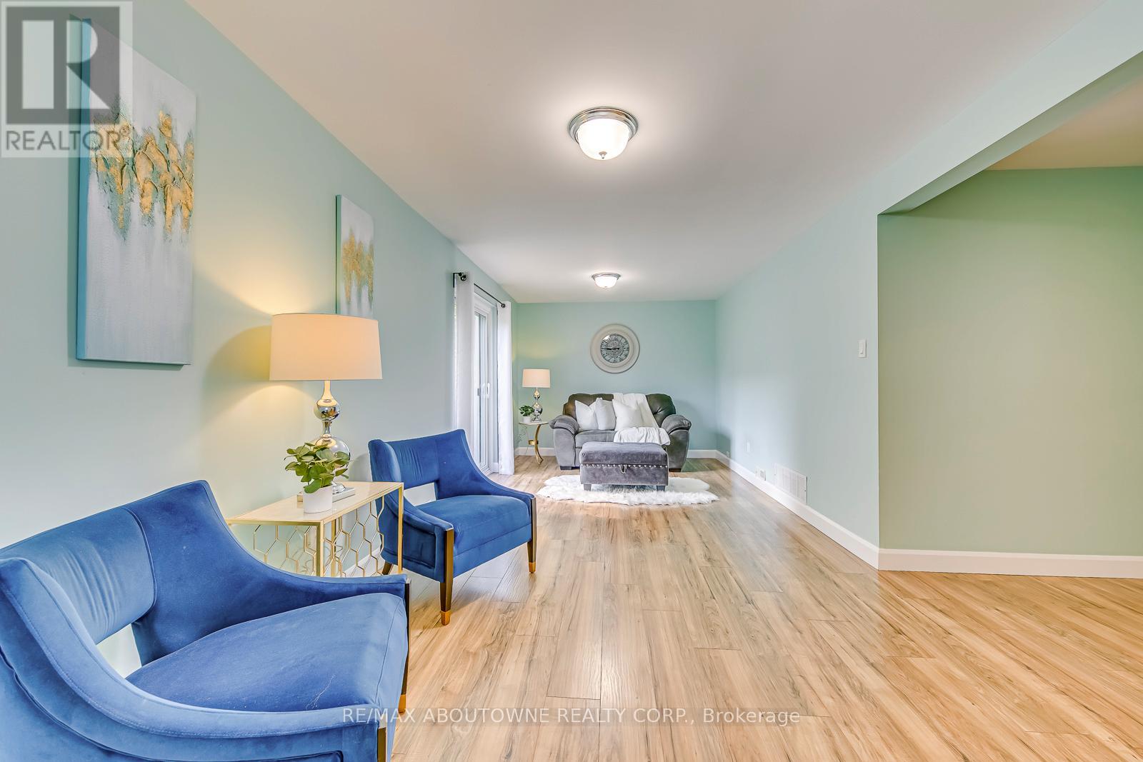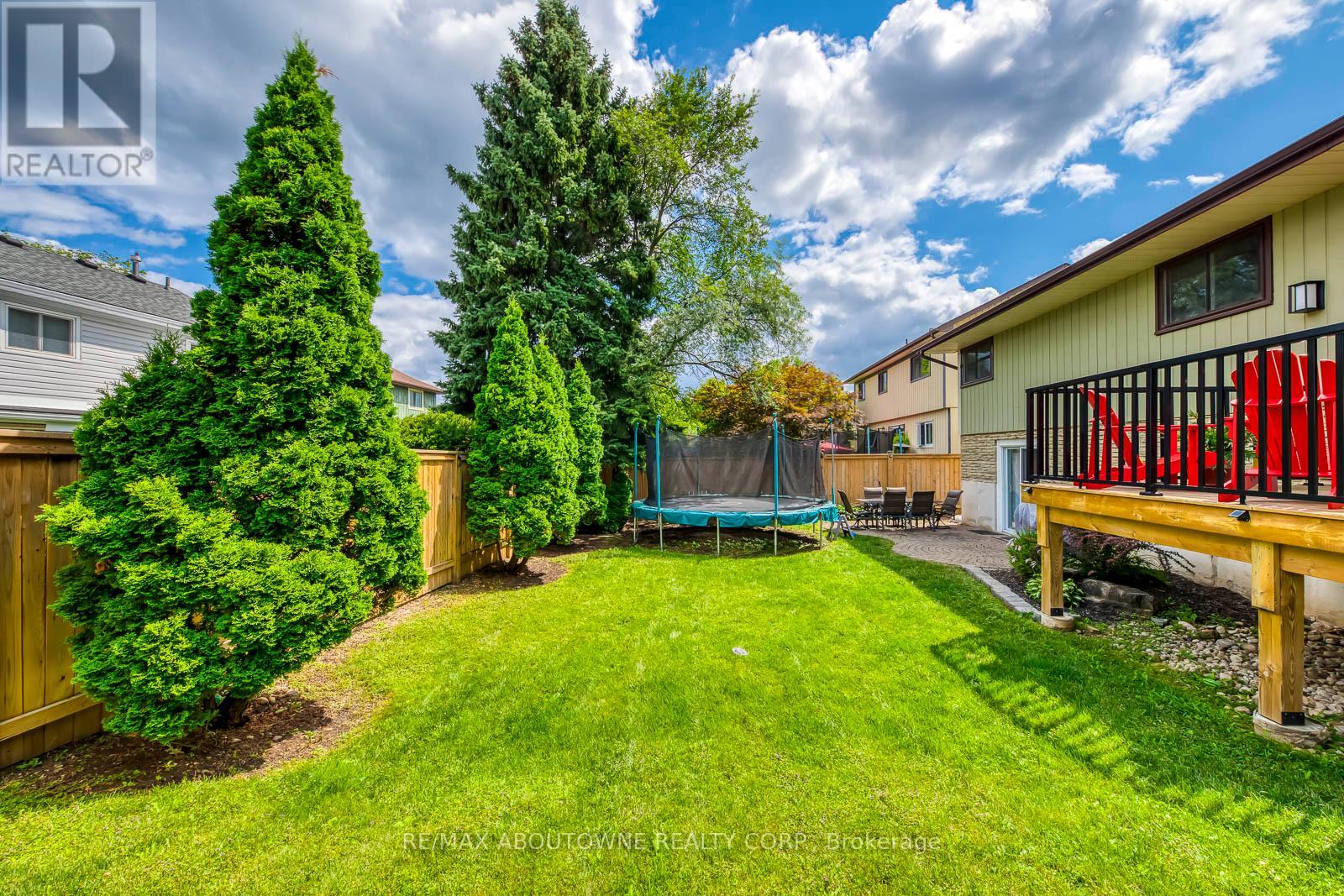Renovated Family Home on Oversized Lot in Brant Hills. Beautifully updated and set on an oversized corner lot, one of the largest on Sinclair Circle, this fully renovated 3+1 bedroom back split offers the perfect combination of space, style, and location in one of Burlingtons most mature and sought-after neighbourhoods. Located directly across from the park, this sun-filled 4-level home features soaring 11-foot ceilings on the main floor, creating a bright and airy living space. The open-concept living and dining area connects seamlessly to a large, modern eat-in kitchen, ideal for everyday living and entertaining alike. Upstairs, the spacious primary bedroom features a sleek ensuite bathroom, while two additional bedrooms and a stylish main bath complete the level. The walk-out lower level adds excellent versatility with a generous family/media room, fourth bedroom, two-piece bath, and an oversized storage room with potential for a home gym or workshop. A double-car garage and mature landscaping add curb appeal and function. Set in a welcoming, community-focused neighbourhood with top-rated schools, parks, trails, and convenient access to shopping, transit, and major highways. This is a fantastic opportunity to own a move-in-ready home on a standout lot in the heart of Brant Hills. (id:24334)
