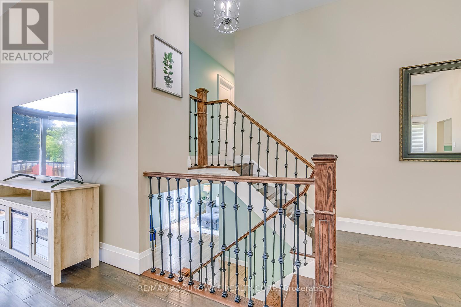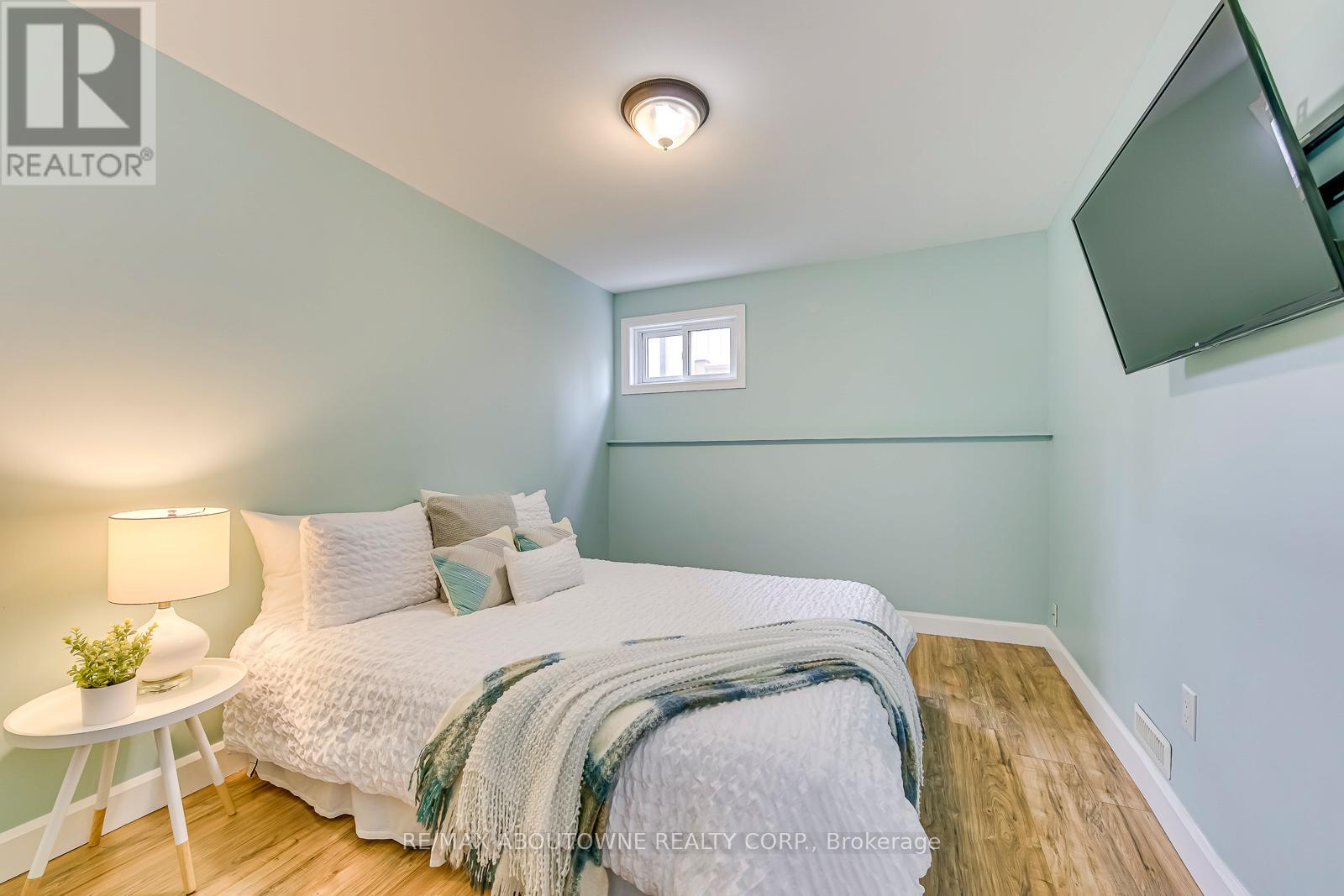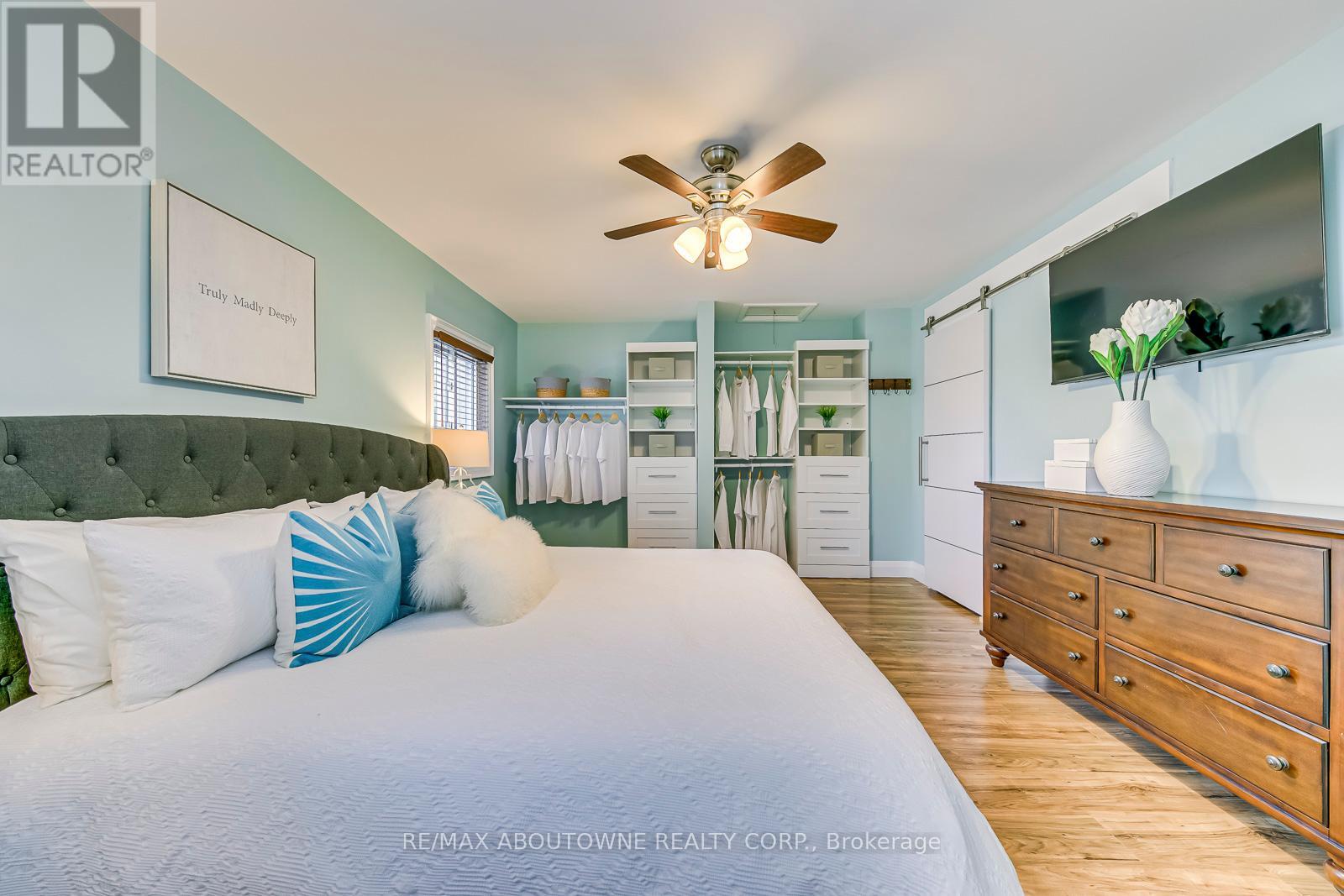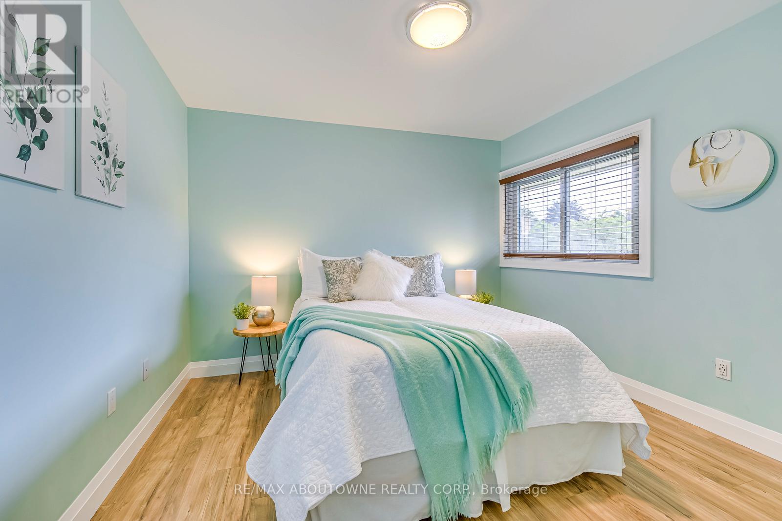 Renovated Family Home on Oversized Lot in Brant Hills. Beautifully updated and set on an oversized corner lot, one of the largest on Sinclair Circle, this fully renovated 3+1 bedroom back split offers the perfect combination of space, style, and location in one of Burlingtons most mature and sought-after neighbourhoods. Located directly across from the park, this sun-filled 4-level home features soaring 11-foot ceilings on the main floor, creating a bright and airy living space. The open-concept living and dining area connects seamlessly to a large, modern eat-in kitchen, ideal for everyday living and entertaining alike. Upstairs, the spacious primary bedroom features a sleek ensuite bathroom, while two additional bedrooms and a stylish main bath complete the level. The walk-out lower level adds excellent versatility with a generous family/media room, fourth bedroom, two-piece bath, and an oversized storage room with potential for a home gym or workshop. A double-car garage and mature landscaping add curb appeal and function. Set in a welcoming, community-focused neighbourhood with top-rated schools, parks, trails, and convenient access to shopping, transit, and major highways. This is a fantastic opportunity to own a move-in-ready home on a standout lot in the heart of Brant Hills. (id:24334)