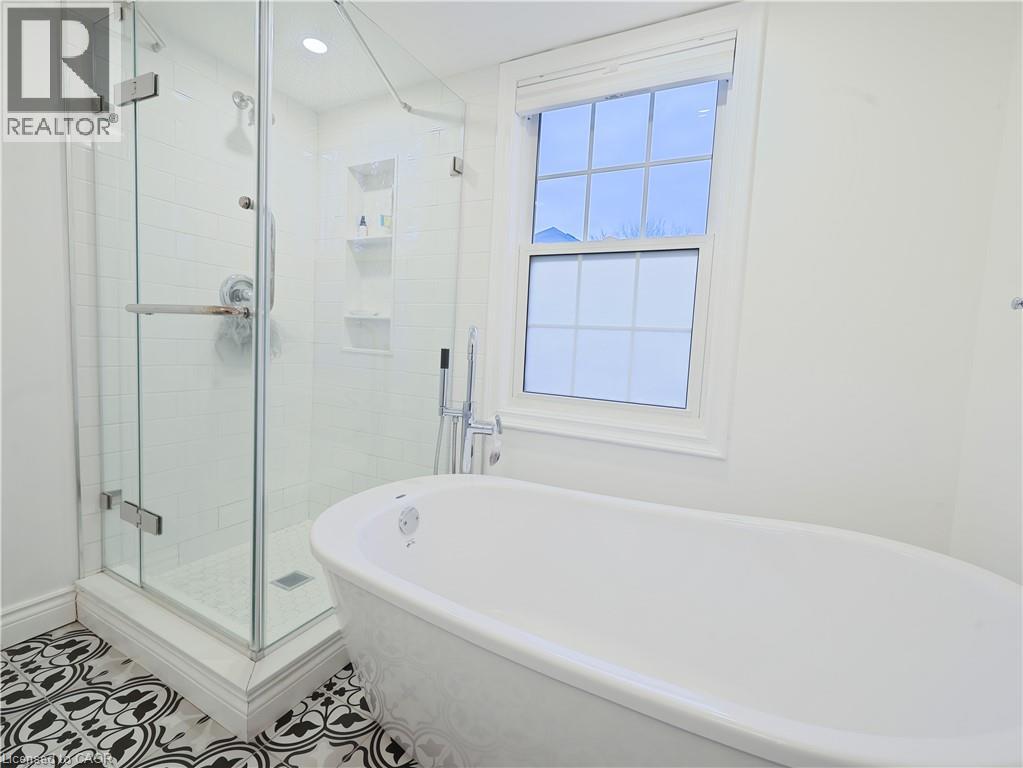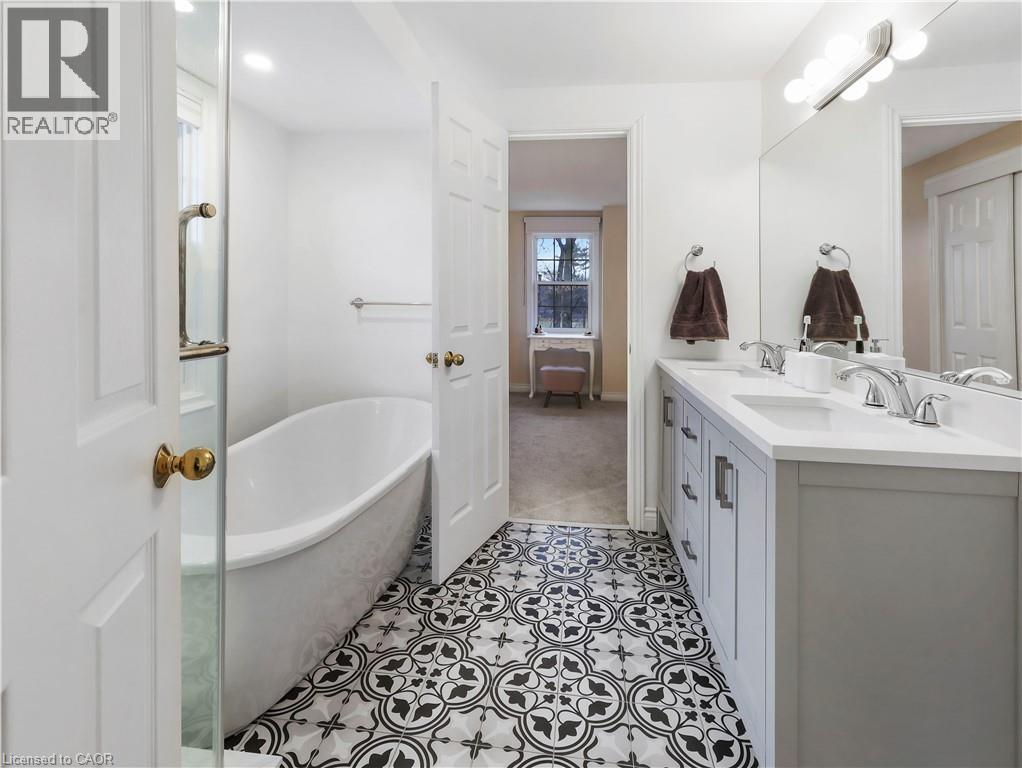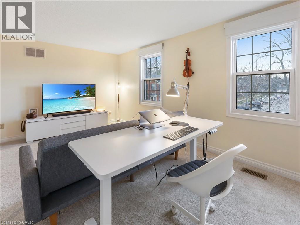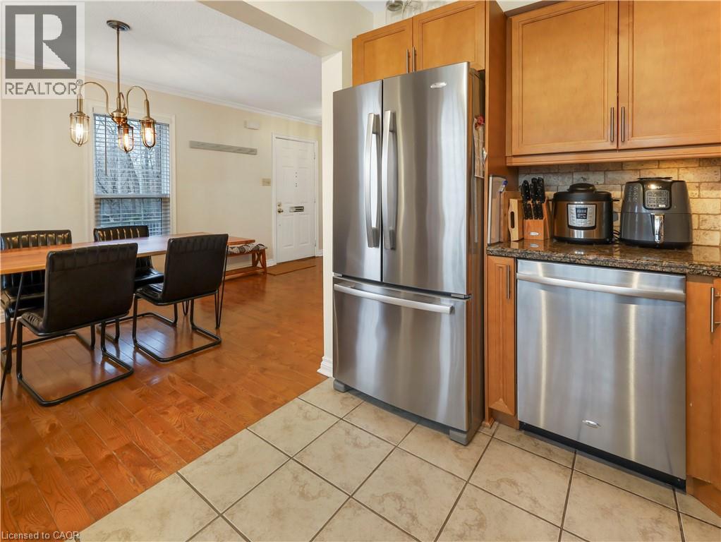 Welcome to this charming corner-unit townhome in one of Burlington's most convenient locations, just minutes to shopping, parks, malls, public transit, and more. Backing onto a beautiful park and walking trail, this home offers a peaceful setting that's perfect for relaxing, morning walks, and enjoying nature right outside your door. Step into your own private, fully fenced patio, with the living and dining area flowing seamlessly outdoors - ideal for entertaining or unwinding after a long day. The home features a spacious primary bedroom overlooking the park, plus a second bedroom in the basement. Enjoy the convenience of a bathroom on each level, including two beautifully updated bathrooms, with the primary ensuite fully renovated featuring a modern tub and double vanity. Cozy up in the inviting living room with a gas fireplace, and enjoy a functional, comfortable kitchen that makes everyday living easy. . Includes parking for two vehicles. This house comes completely furnished! (id:24334)