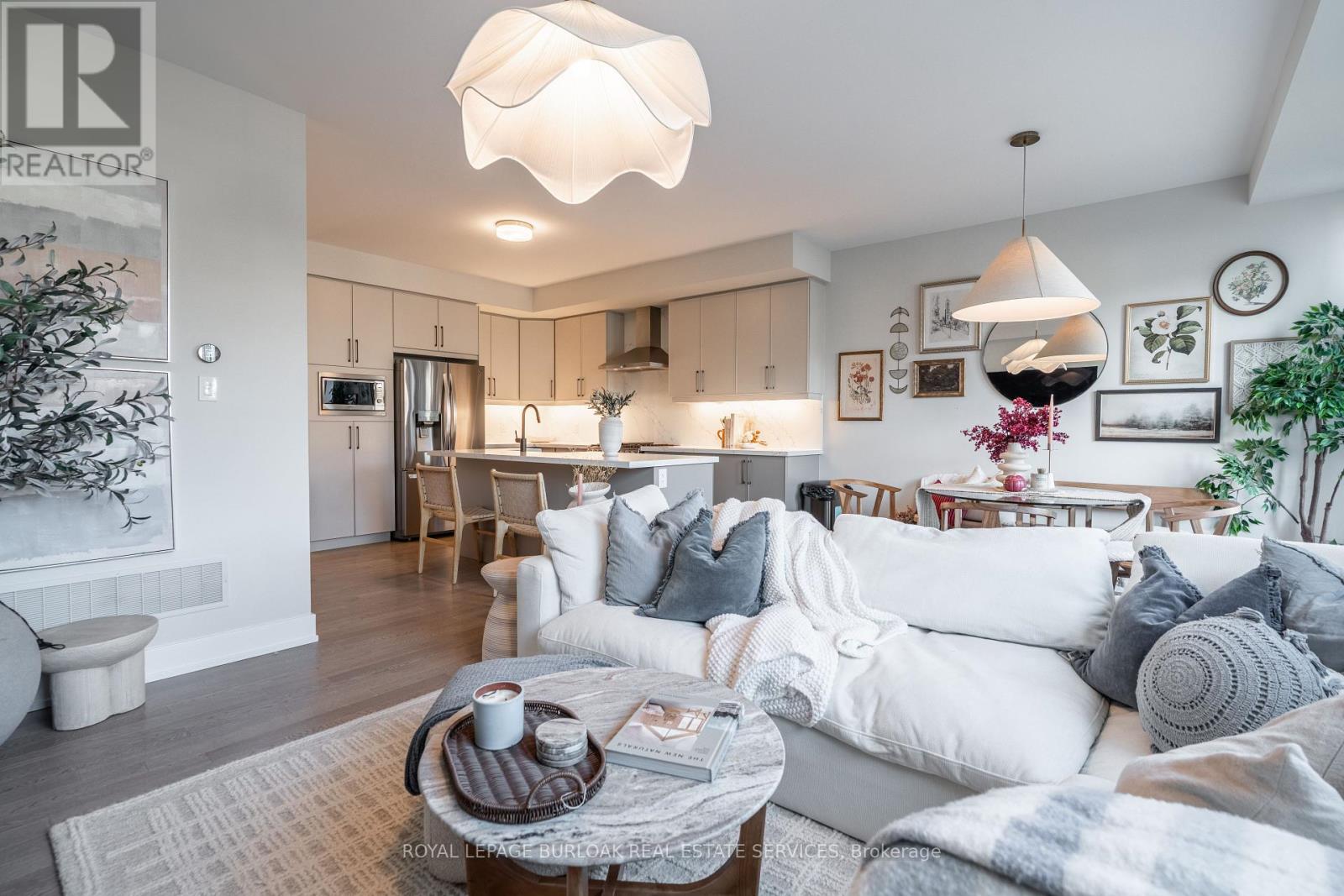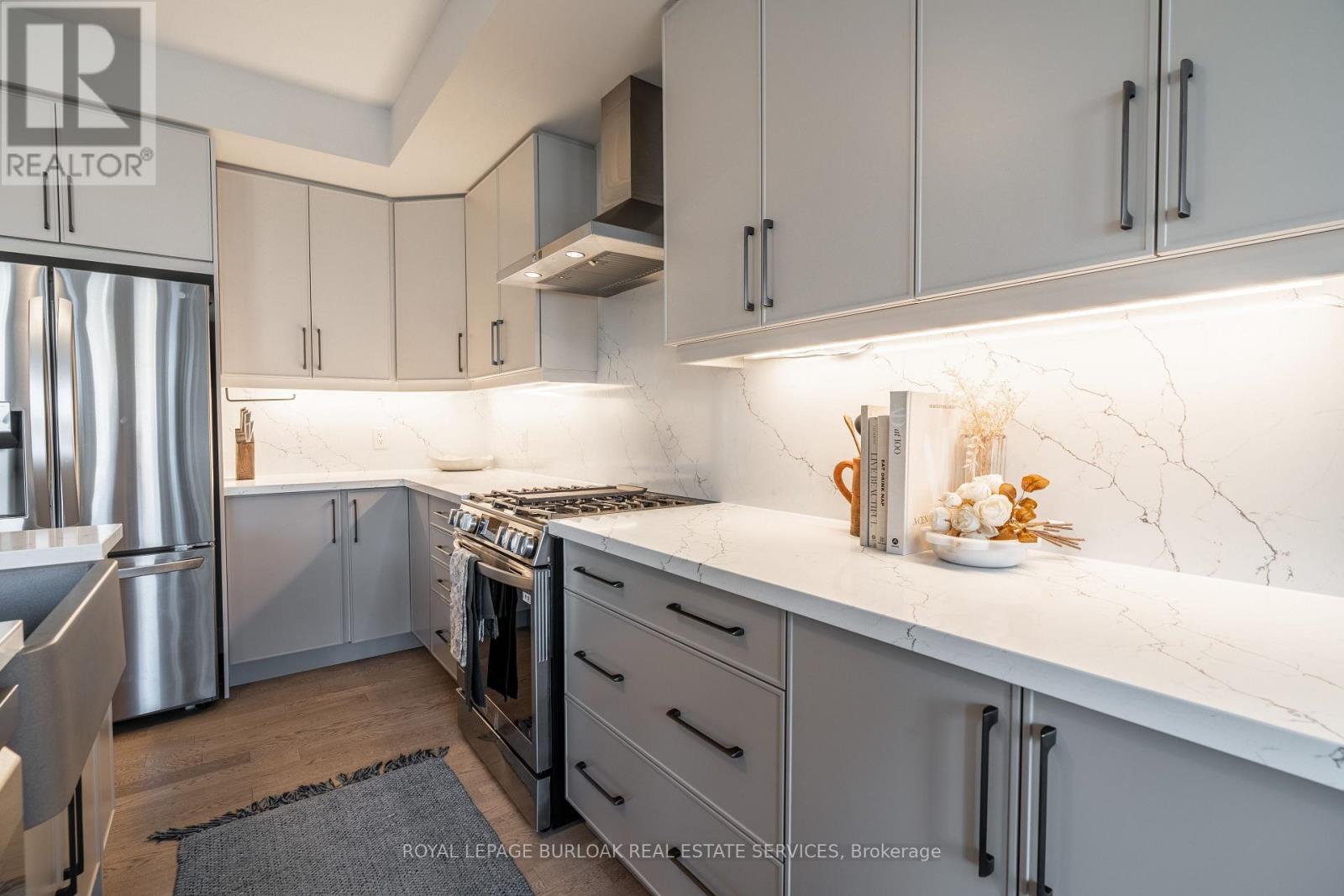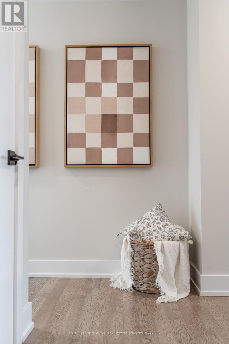 Discover refined living in this beautifully updated 3+1 bedroom townhome, nestled on a quiet street in Burlingtons prestigious Millcroft golf community. Offering a blend of style, comfort, and convenience, this turnkey home is ideal for families and professionals alike. The sun-drenched, open-concept main floor features wide-plank engineered hardwood that flows seamlessly throughout. The designer kitchen is a showstopper, boasting quartz countertops, an impressive 8-ft island with seating, a sleek subway tile backsplash, and premium stainless steel appliances. A dedicated dining area provides the perfect setting for family meals or entertaining guests. Step out to the private backyard, ideal for summer BBQs and quiet relaxation. Upstairs, the spacious primary retreat is a true haven with a large picture window, walk-in closet, and a luxurious 4-piece ensuite complete with quartz vanity, a soaker tub, and a glass shower. Two additional bedrooms share a stylish 4-piece bath, while the second-floor laundry area accommodates full-size side-by-side machines for added convenience. The fully finished lower level adds versatility with a cozy rec room, 3-piece bath, and a true guest bedroom- perfect for visitors, a teen retreat, or home office. Additional highlights include inside garage entry, smart thermostat, rough-in for an EV charger, and low condo road fees covering snow removal and landscaping. Enjoy a premium location just minutes from Millcroft Golf Club, top-rated schools, beautiful parks, shopping, and quick access to HWY 407 & 403. Move-in ready and thoughtfully upgraded, this home is the perfect blend of elegance and function. Welcome to Millcroft living. Some photos have been virtually staged. (id:24334)