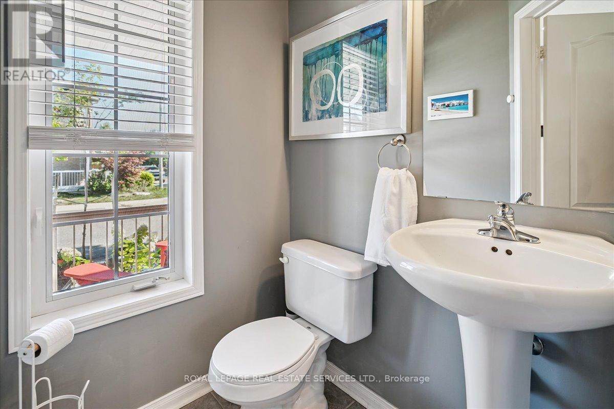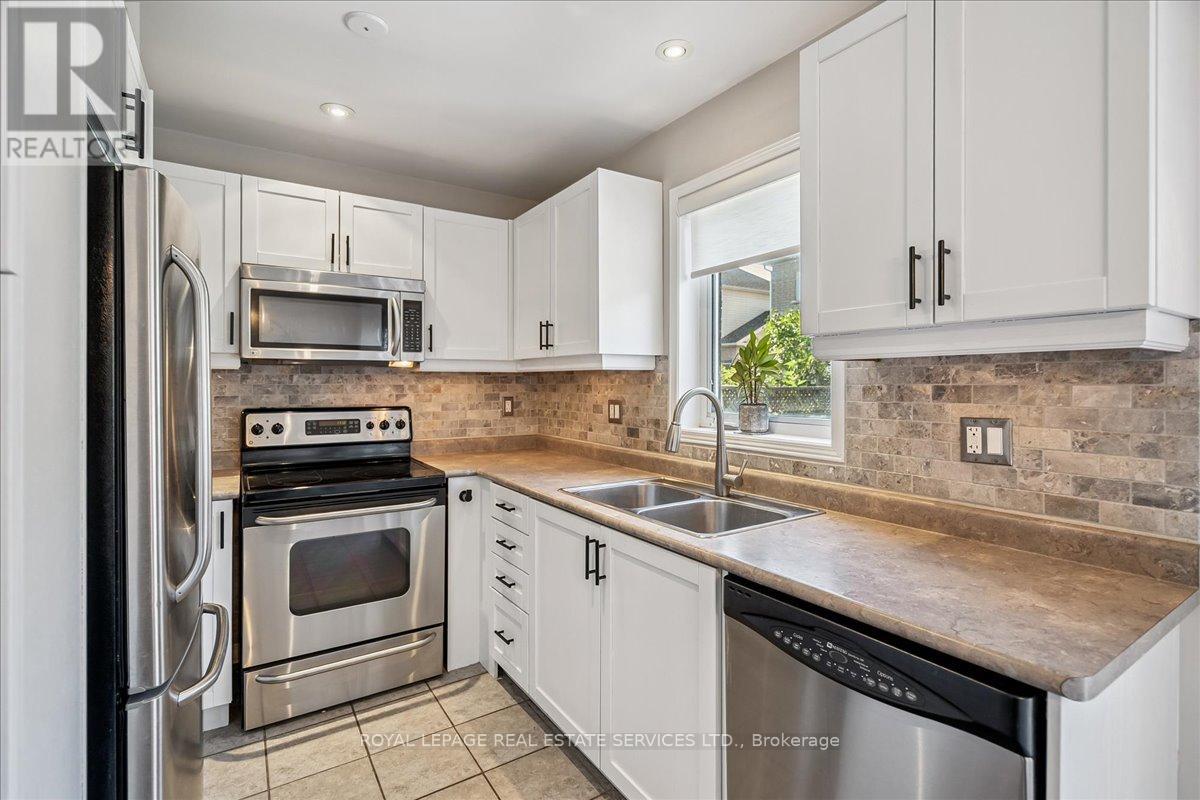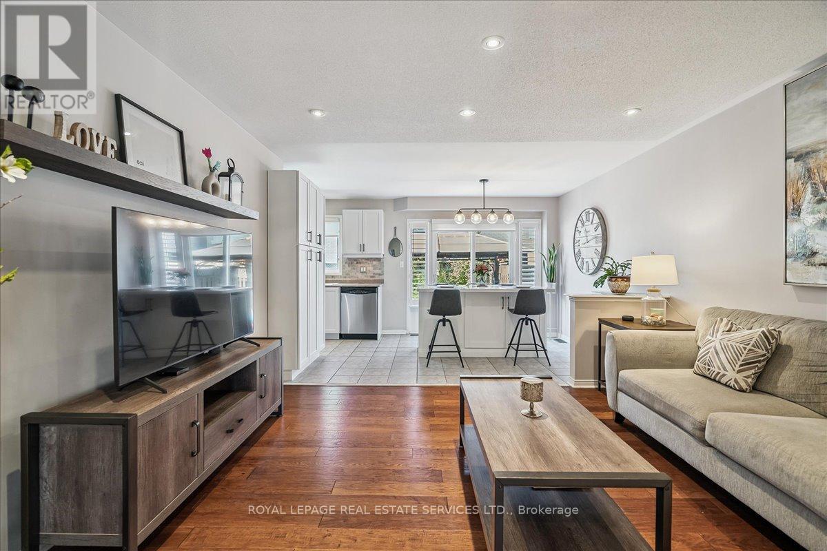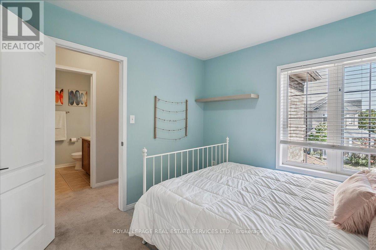 Linked-Detached Living in Burlingtons Orchard! This 3-bed, 3-bath home offers 1,871sqft of beautifully finished living space and feels fully detached - attached only at the garage - delivering style, function, and value on a small, quiet street with minimal traffic. The main floor features engineered hardwood, California shutters (2022), and an updated kitchen with stainless steel appliances, refinished cabinets (2023), and a sleek island (2022) with added storage & workspace. Upstairs, the primary suite offers a walk-in closet and ensuite, with two more spacious bedrooms and a full bath designed for family living. A finished basement adds flexible space for a rec room, office, or gym. The backyard oasis boasts a gazebo and hot tub (2022, warranty until 2027). Major updates include: new A/C (2023, warranty until 2033), owned furnace & hot water tank. Close to parks, trails, schools, Appleby GO & highways...in an Orchard full of apples, this one's a peach! ** This is a linked property.** (id:24334)