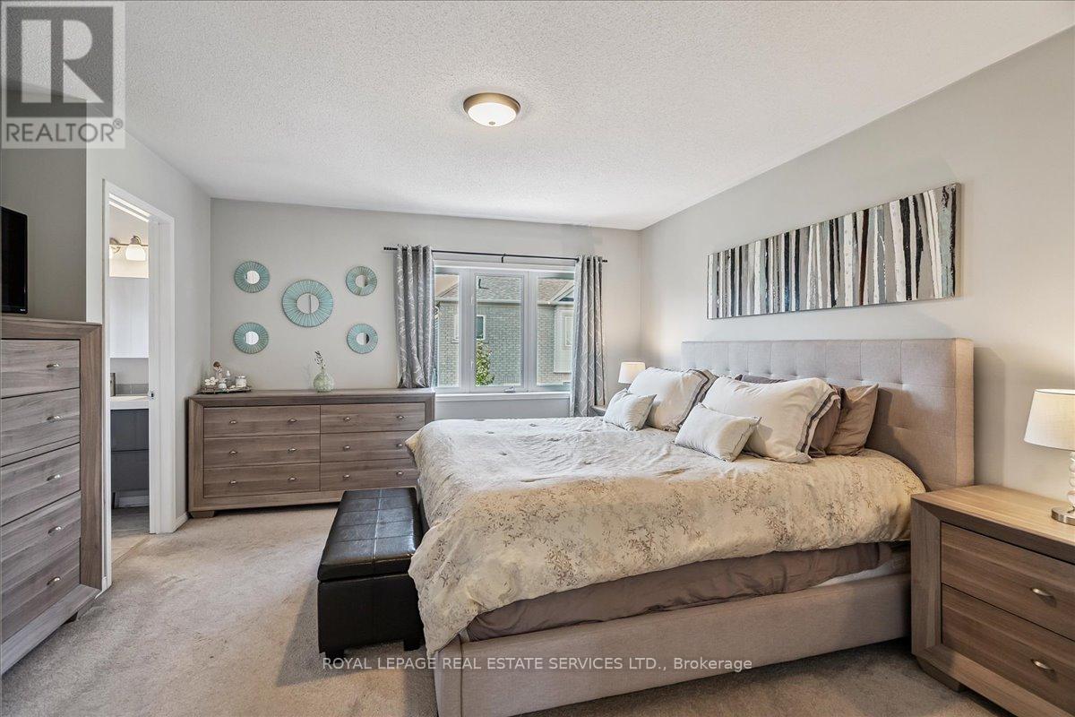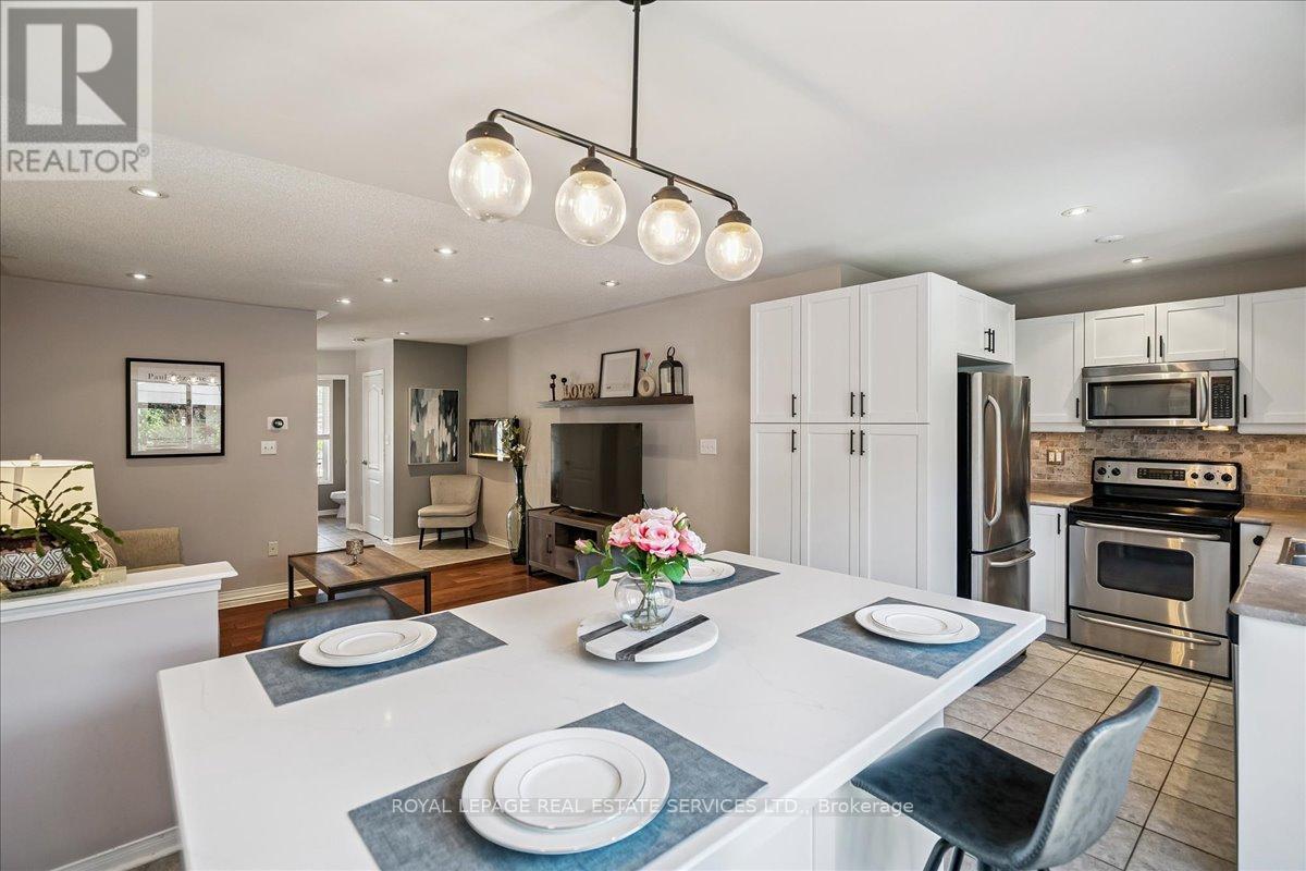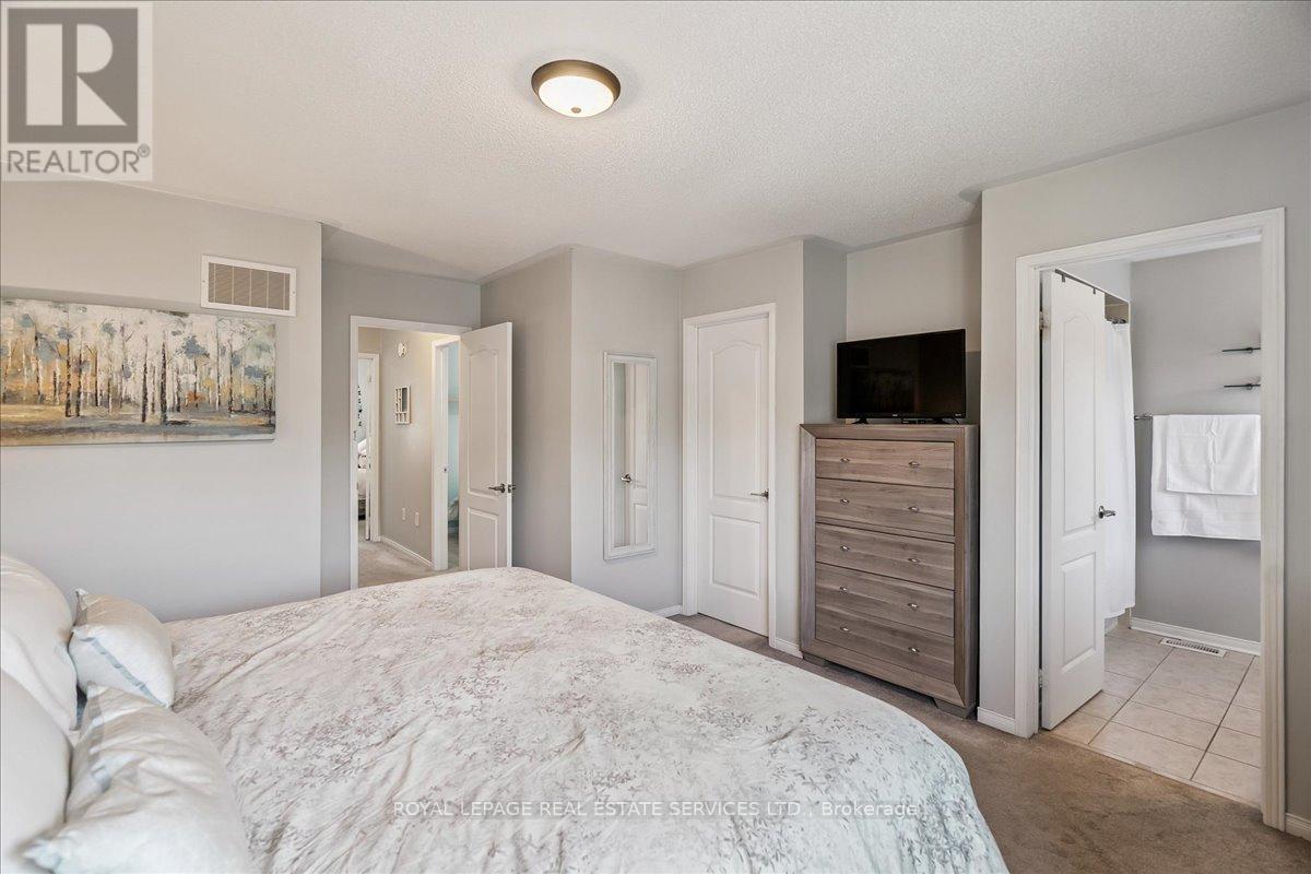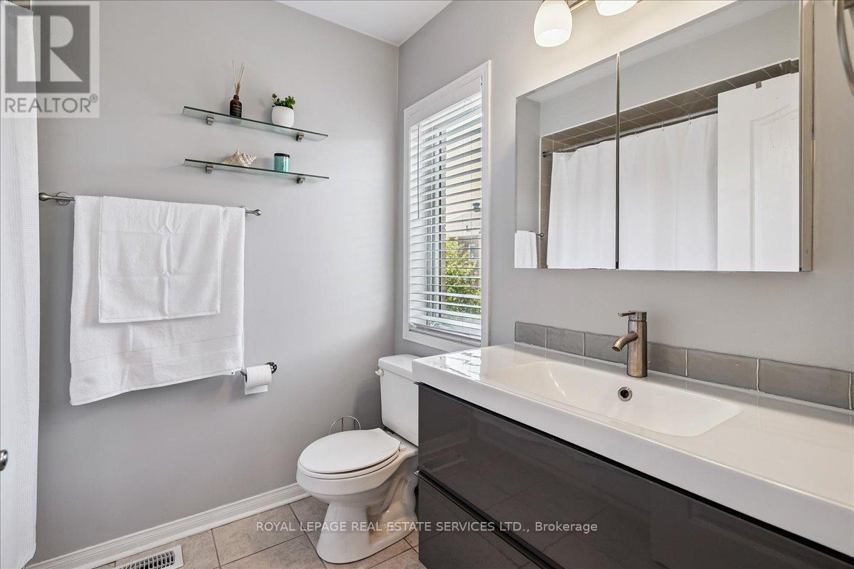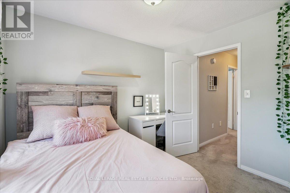 Linked-Detached Living in Burlingtons Orchard! This 3-bed, 3-bath home offers 1,871sqft of beautifully finished living space and feels fully detached - attached only at the garage - delivering style, function, and value on a small, quiet street with minimal traffic. The main floor features engineered hardwood, California shutters (2022), and an updated kitchen with stainless steel appliances, refinished cabinets (2023), and a sleek island (2022) with added storage & workspace. Upstairs, the primary suite offers a walk-in closet and ensuite, with two more spacious bedrooms and a full bath designed for family living. A finished basement adds flexible space for a rec room, office, or gym. The backyard oasis boasts a gazebo and hot tub (2022, warranty until 2027). Major updates include: new A/C (2023, warranty until 2033), owned furnace & hot water tank. Close to parks, trails, schools, Appleby GO & highways...in an Orchard full of apples, this one's a peach! ** This is a linked property.** (id:24334)