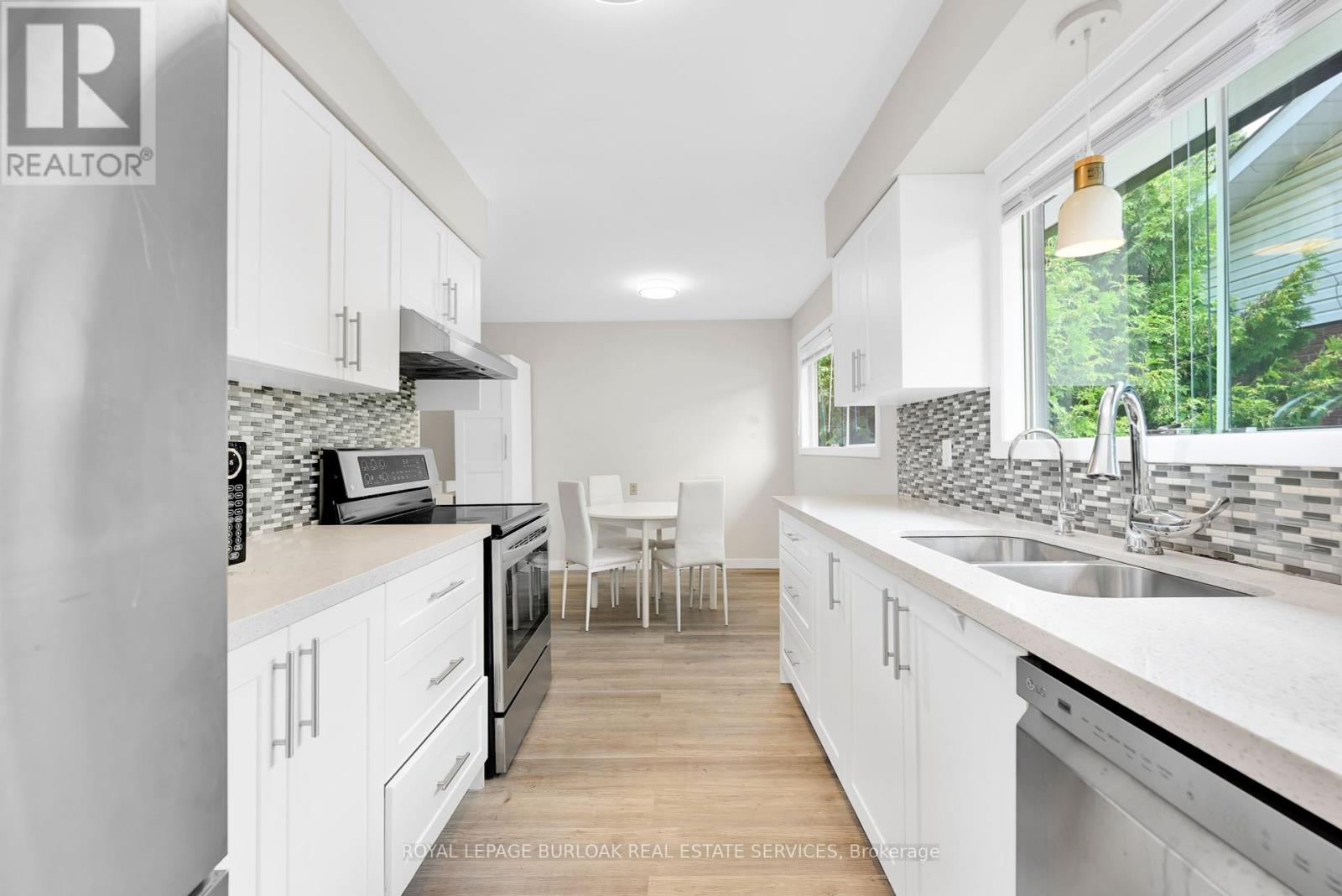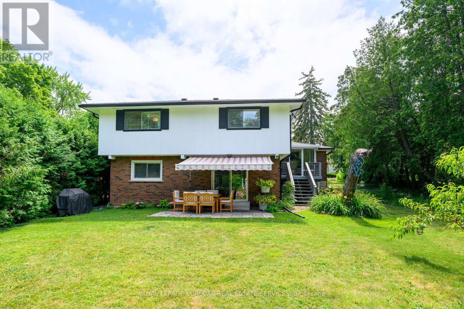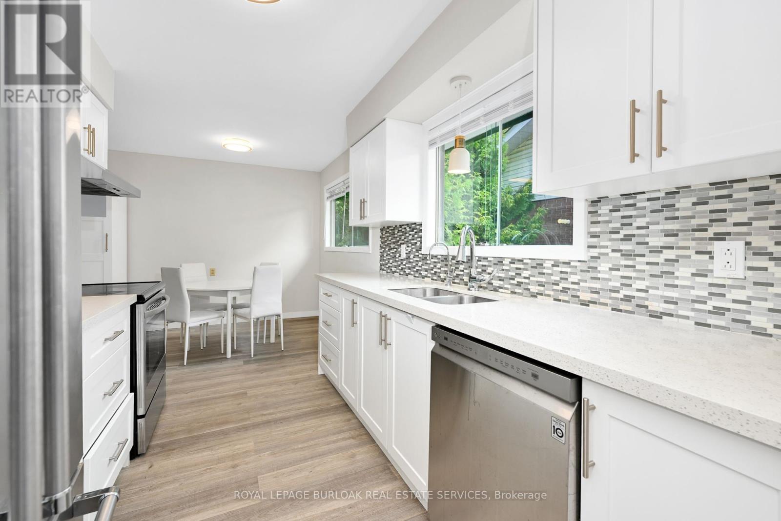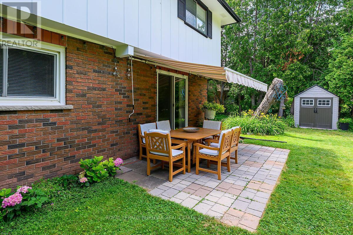 Welcome to this bright & spacious, well-maintained & updated, 4 bedroom, 2 full bathroom detached home with a double driveway and double garage, on a premium ravine lot, 1/3 acre, with rare 78ft wide x 213ft deep lot, in the very desirable and sought-after, family-friendly neighbourhood of Elizabeth Gardens in southeast Burlington. Featuring 1728sqft of finished living space, plus the sunroom and unfinished basement, an updated eat-in kitchen with quartz countertops, stainless steel appliances, backsplash, double sink, and white cabinetry including a double pantry, living room with bay window and barn door, separate dining room, a sunroom with skylight and sliding doors to the deck and backyard, 3 bedrooms on the upper level including the spacious primary with ensuite privilege, a renovated 5pce main bath with quartz countertop, double sinks, and beautiful wall tile in the tub/shower, a spacious family room with gas fireplace and sliding doors to the patio and backyard, a 4th bedroom on the lower level, plus a renovated 3pce bathroom and separate side entrance on the lower level which makes an ideal teen retreat or in-law potential, basement with laundry area and plenty of storage space, a beautiful, extra deep private backyard with park-like feel backing on to Appleby Creek, plus a patio with awning, deck with gazebo, raised garden planters, fire pit, and fruit trees, all make this is an ideal yard for relaxing or enjoying with family and friends, and the front yard with a large covered porch, and a driveway for 4 cars, plus 2 in the garage. Updates include renovated kitchen and both bathrooms, luxury vinyl floors, lighting, Furnace, and AC, all in 2020, double garage door and opener in 2021, and roof about 5-7 years old. A prime south Burlington location, steps to quality schools, the lake, parks, community Center, shops, dining, and more, and literally just minutes to highways, the GO, and endless other great amenities. Don't hesitate and miss out! Welcome Home! (id:24334)