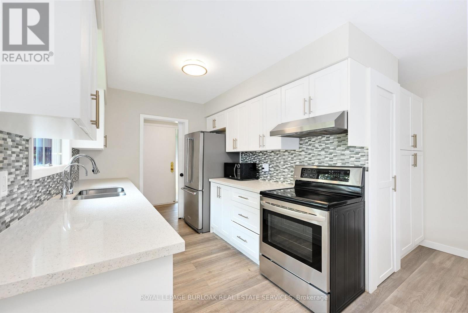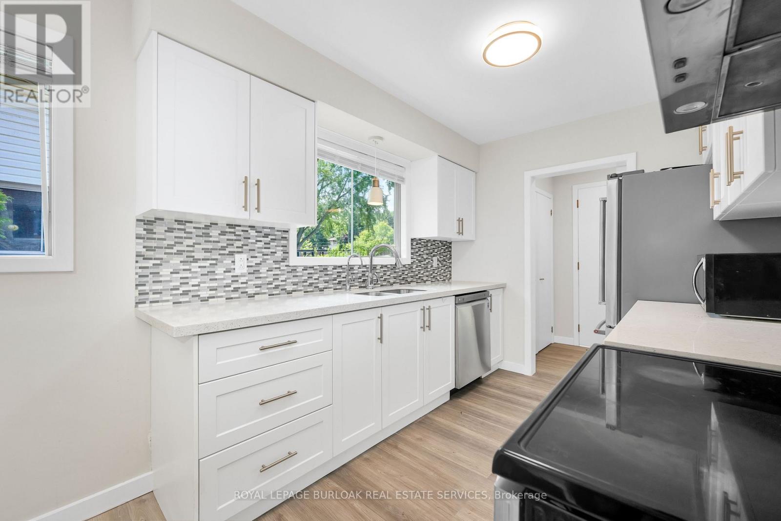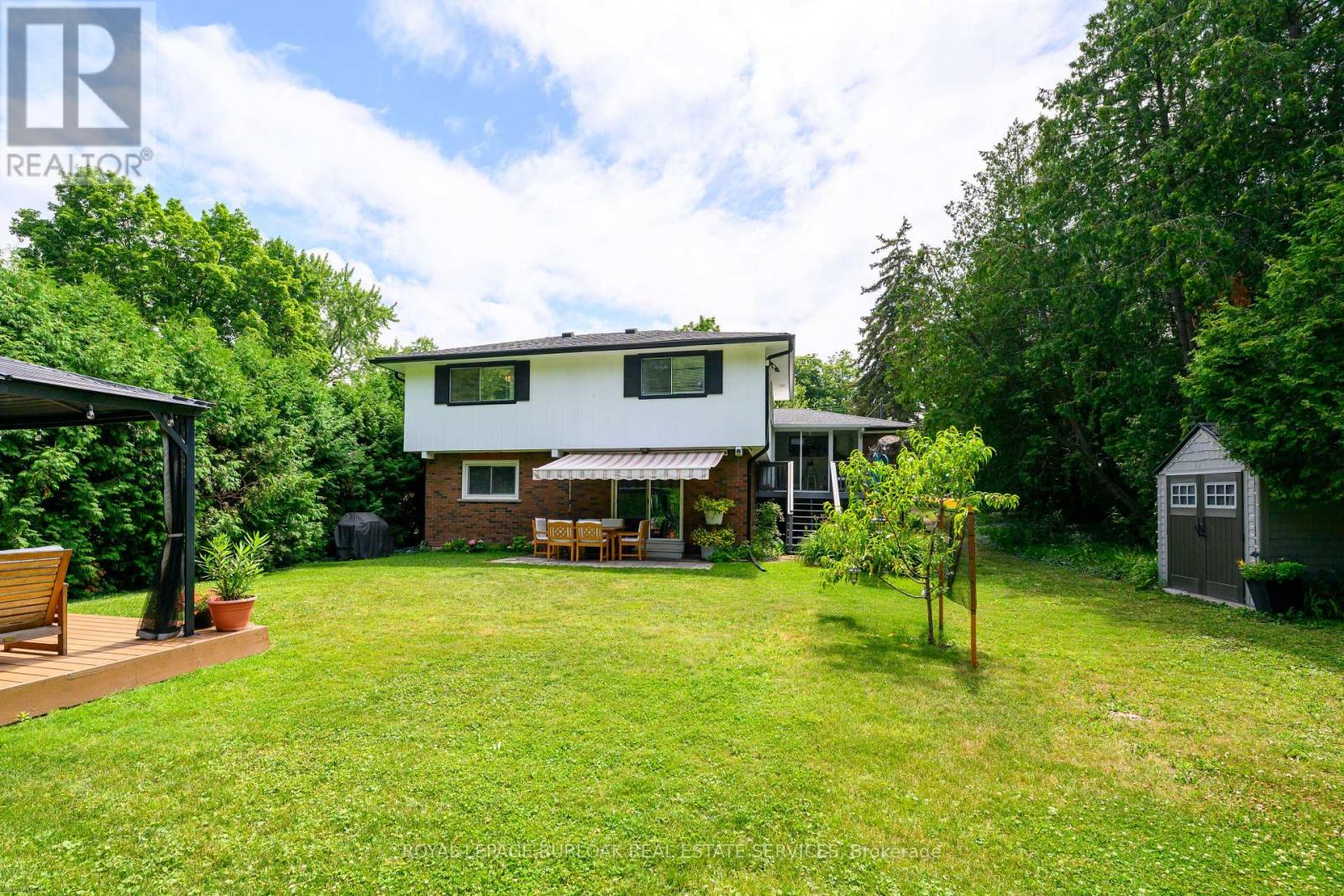 Welcome to this bright & spacious, well-maintained & updated, 4 bedroom, 2 full bathroom detached home with a double driveway and double garage, on a premium ravine lot, 1/3 acre, with rare 78ft wide x 213ft deep lot, in the very desirable and sought-after, family-friendly neighbourhood of Elizabeth Gardens in southeast Burlington. Featuring 1728sqft of finished living space, plus the sunroom and unfinished basement, an updated eat-in kitchen with quartz countertops, stainless steel appliances, backsplash, double sink, and white cabinetry including a double pantry, living room with bay window and barn door, separate dining room, a sunroom with skylight and sliding doors to the deck and backyard, 3 bedrooms on the upper level including the spacious primary with ensuite privilege, a renovated 5pce main bath with quartz countertop, double sinks, and beautiful wall tile in the tub/shower, a spacious family room with gas fireplace and sliding doors to the patio and backyard, a 4th bedroom on the lower level, plus a renovated 3pce bathroom and separate side entrance on the lower level which makes an ideal teen retreat or in-law potential, basement with laundry area and plenty of storage space, a beautiful, extra deep private backyard with park-like feel backing on to Appleby Creek, plus a patio with awning, deck with gazebo, raised garden planters, fire pit, and fruit trees, all make this is an ideal yard for relaxing or enjoying with family and friends, and the front yard with a large covered porch, and a driveway for 4 cars, plus 2 in the garage. Updates include renovated kitchen and both bathrooms, luxury vinyl floors, lighting, Furnace, and AC, all in 2020, double garage door and opener in 2021, and roof about 5-7 years old. A prime south Burlington location, steps to quality schools, the lake, parks, community Center, shops, dining, and more, and literally just minutes to highways, the GO, and endless other great amenities. Don't hesitate and miss out! Welcome Home! (id:24334)