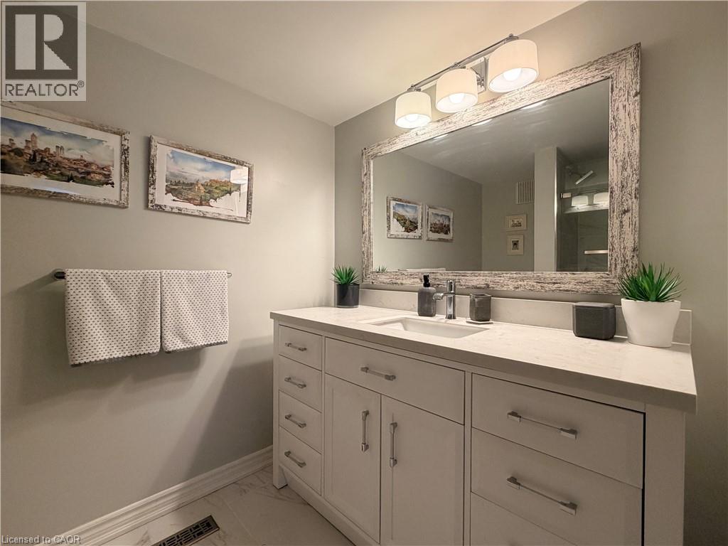 Bright Bungalow style, 2 bed, 2 bath ground floor end unit in sought-after Paddington Gardens, no behind neighbours. This renovated open-concept home features a welcoming living and dining area with bay window and cozy fireplace, plus patio doors leading to a private deck that offers a background-like feel. Hardwood flooring flows throughout. The generous primary bedroom includes a walk-in closet and four-piece ensuite, complemented by a second four-piece bath, in-suite laundry, and plenty of storage. All appliances, light fixtures, and window coverings are included for tenants use. Ideally located within walking distance to parks, Longos plaza, and amenities, and just minutes to GO bus service, Highway 407, and the QEW-perfect for commuters. 1 year lease. (id:24334)